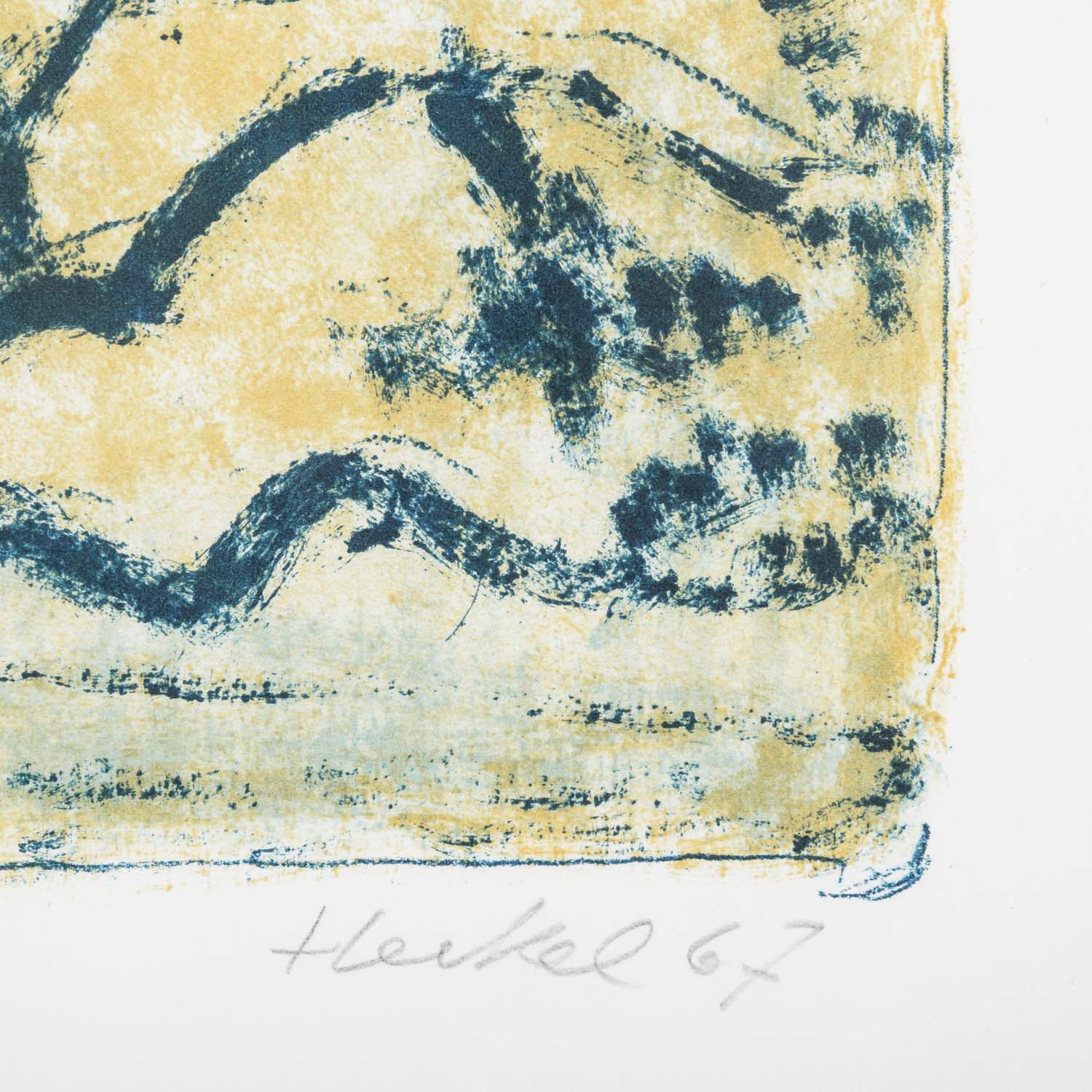 Farblithographie/Arches (?, undeutliches Wasserzeichen), u.re mit Bleistift von Hand signiert und datiert 'Heckel 67', u.li. mit Bleistift num. 29/60, HxB: Platte ca. 55x41 cm, Passepartoutausschnitt ca. 61x47 cm, Außenmaße Rahmen ca. 81x65 cm. Leichte Alters- und Knickspuren. Im Passepartout hinter Glas gerahmt. PROVENIENZ: 1994 bei Galerie Dorn, Stuttgart erworben (Rg.kopie über DM 7.000 liegt bei).