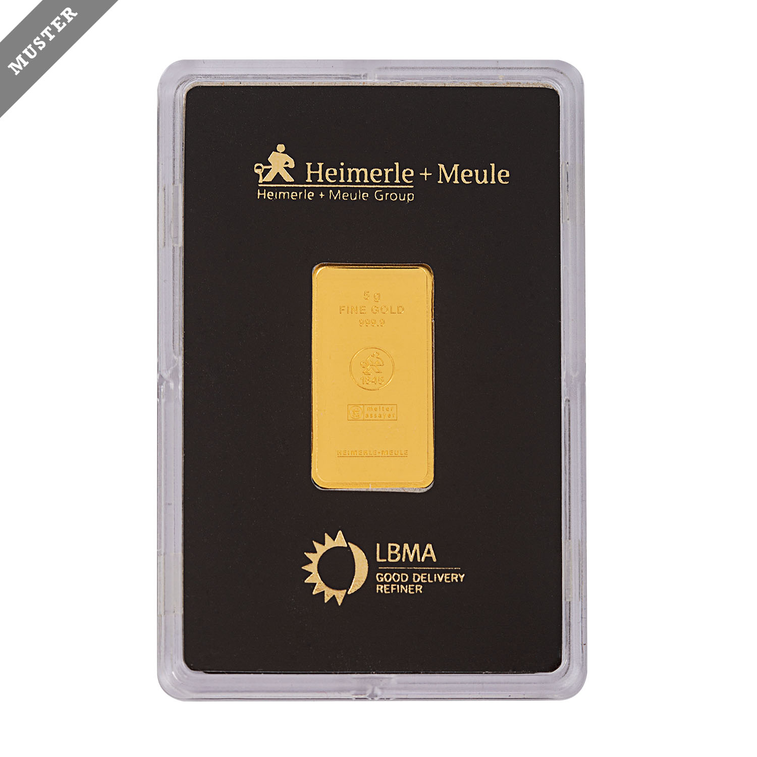 Goldbarren - 5g GOLD fein, geprägter Goldbarren, Heimerle+Meule,