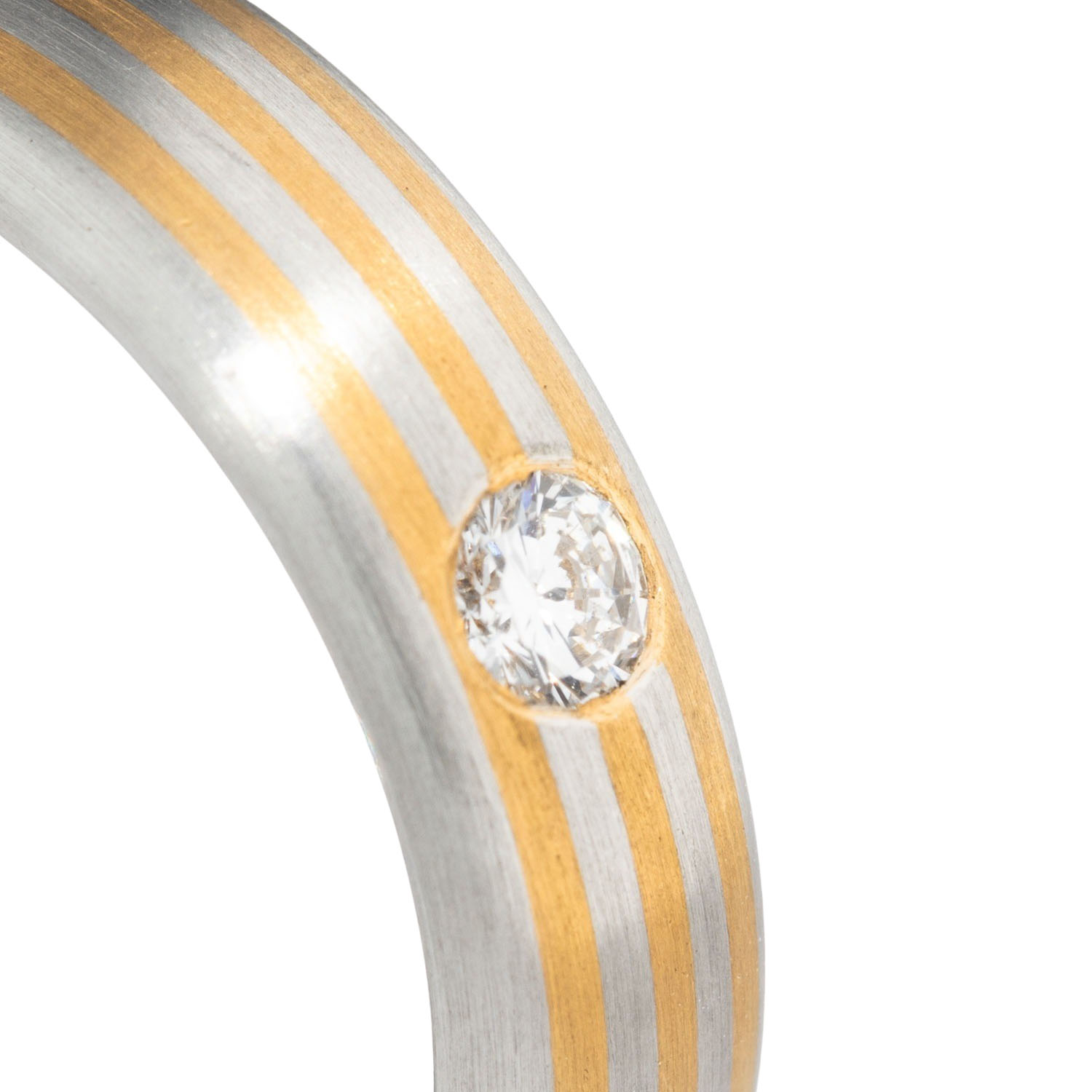 0,105 ct (gest.), WEISS (H)/VS (gest.), Pt950 mit Goldeinlage, gewölbte Ringschiene, B: 5 mm, RM ca. 52. 21. Jh., neuwertig.