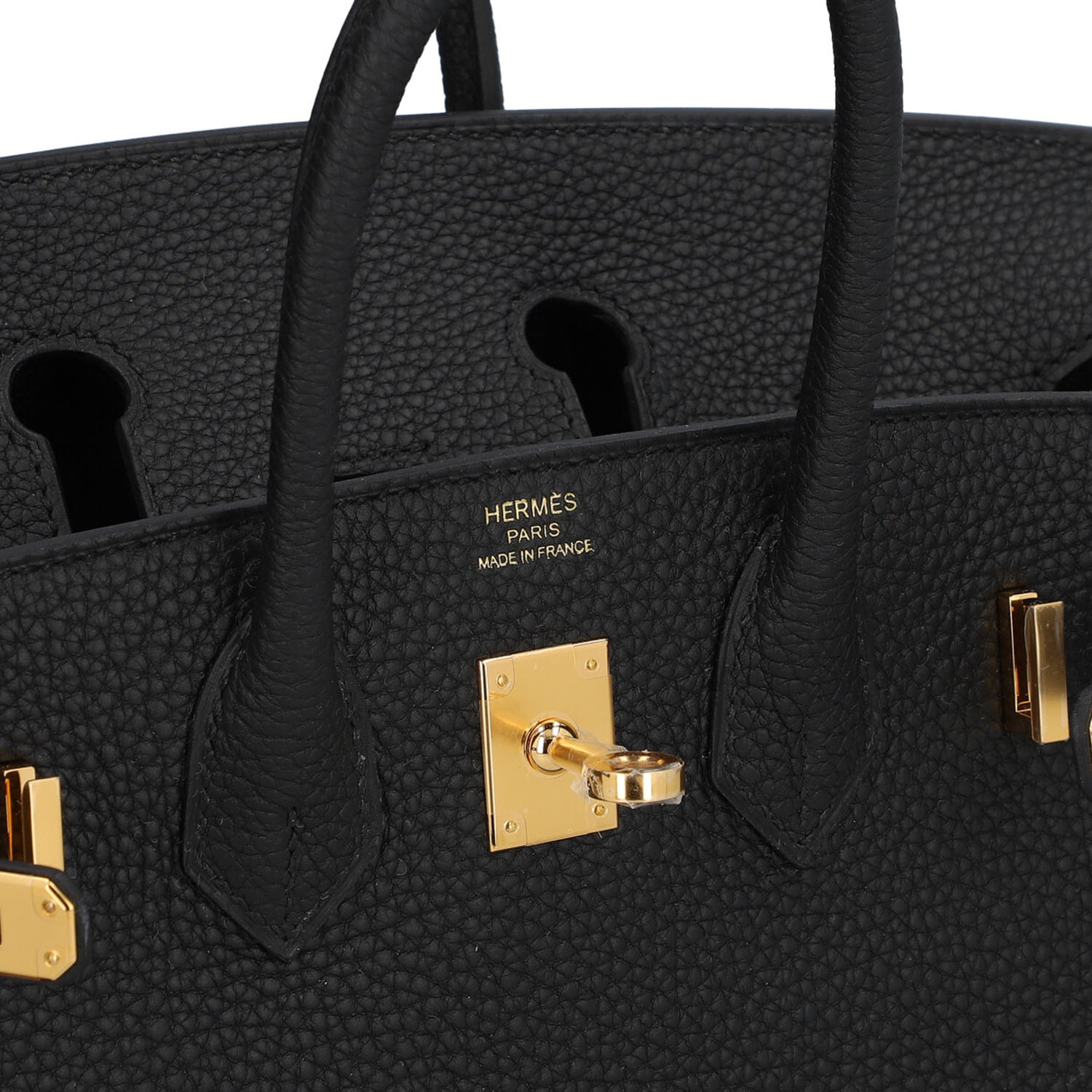 Kollektion 2025. Togo Leder in Noir (Schwarz) mit vergoldeter Hardware. Neuwertig und ungetragen im Full Set, Hardware noch foliert.