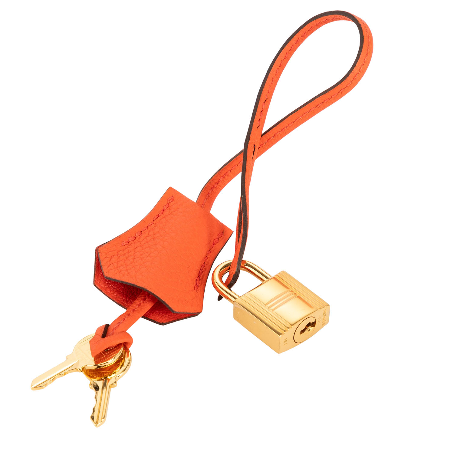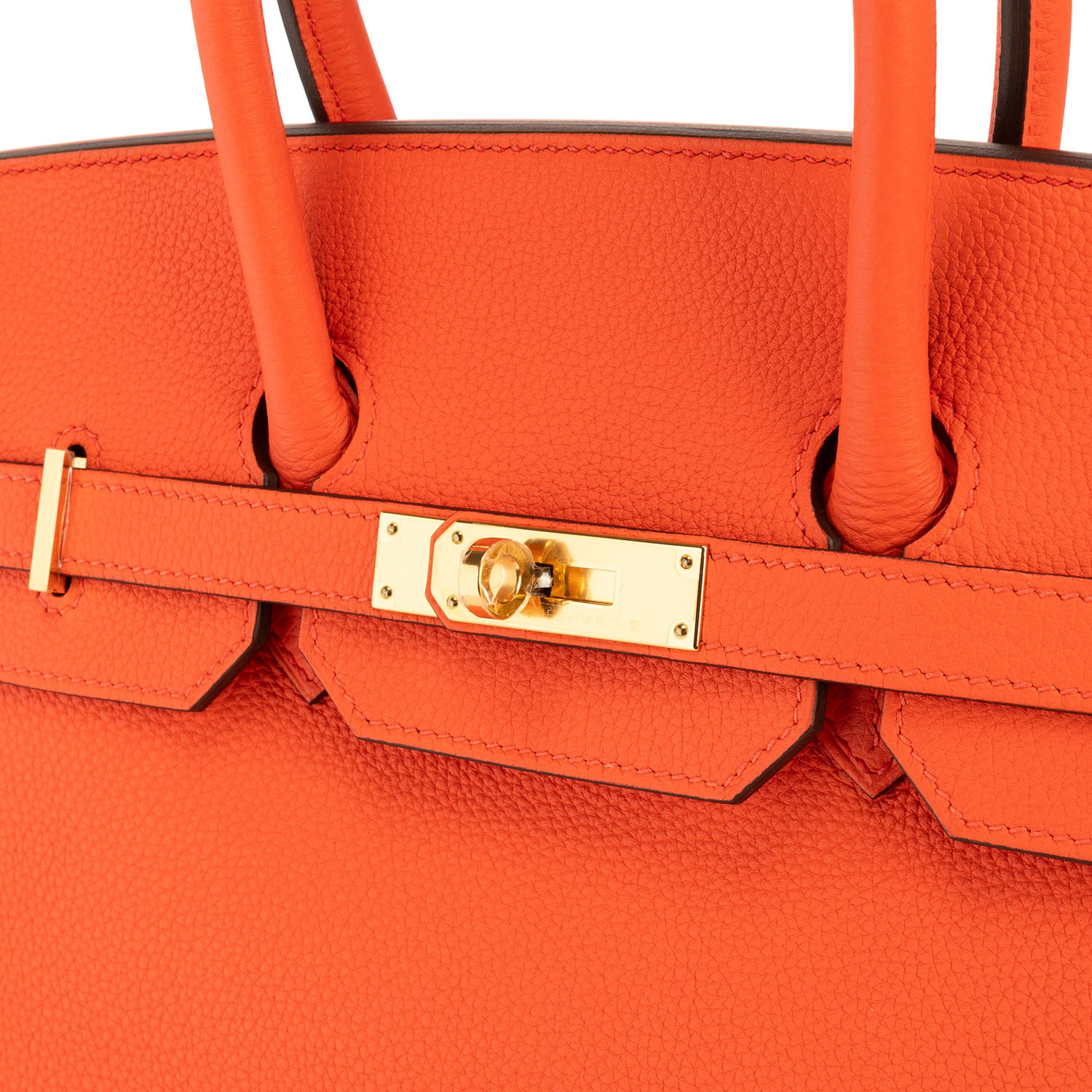 Koll. 2017. Togoleder im Farbton Orange Poppy mit vergoldeten Beschlägen, Doppelhenkeln und Riemenverschluss. Innenraum mit zwei Fächern, eines davon mit Reißverschluss. Staubbeutel, Box, Rechnung, Clochette mit Schlüssel und Schloss sind beigelegt. Sehr guter Zustand. Hardware ist noch foliert.