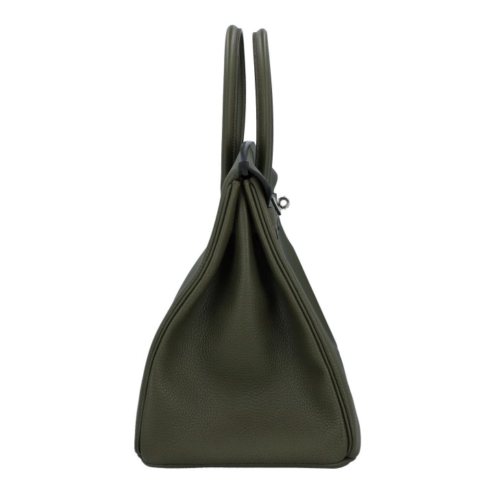 Koll. 2014 (Stamp 'R'). Togo Leder in Khaki mit silberfarbener Hardware. Klassisches Modell. Sehr guter Erhalt, Hardware noch foliert. Box, Staubbeutel, Raincase, Clochette, Schloss und Schlüssel anbei.