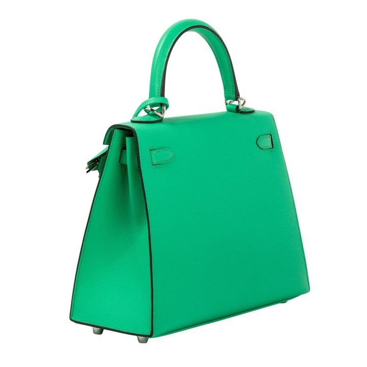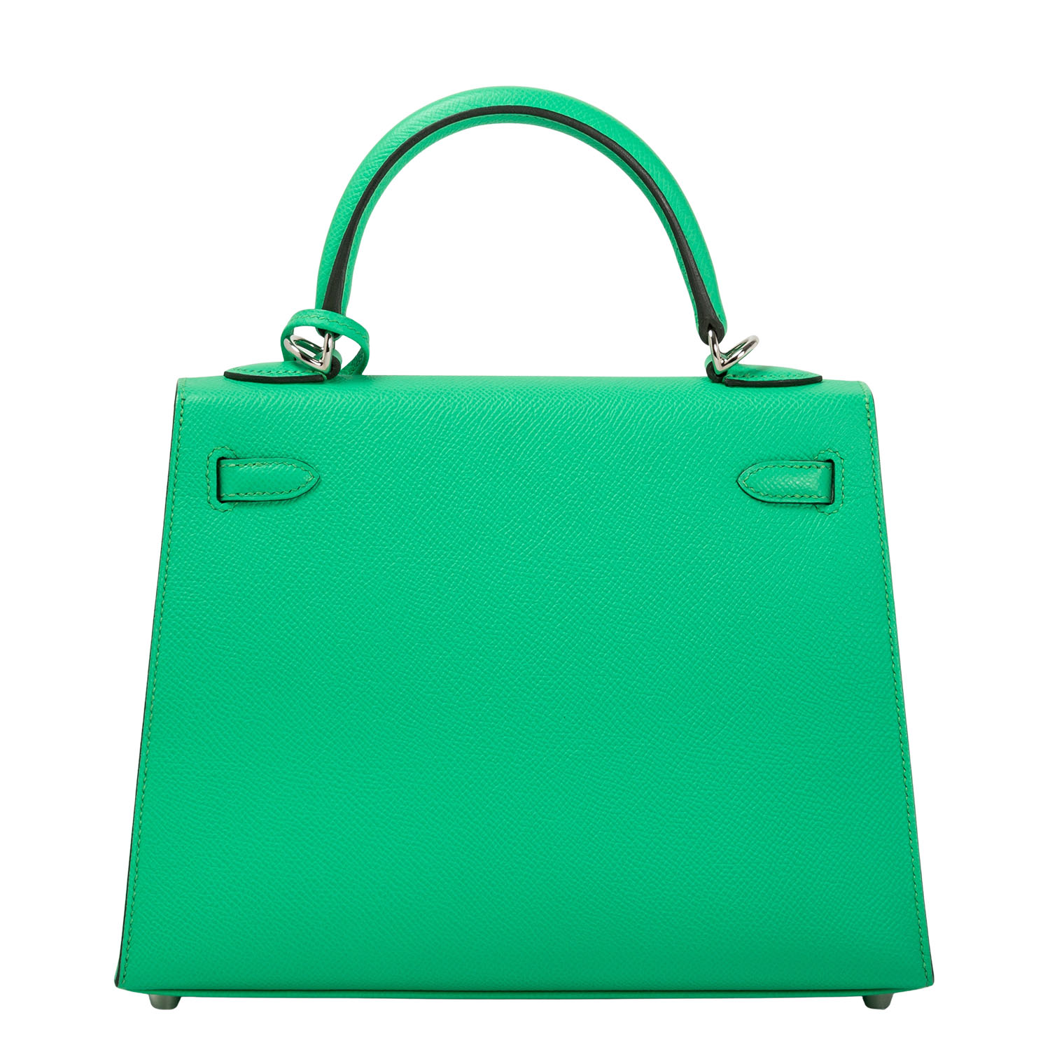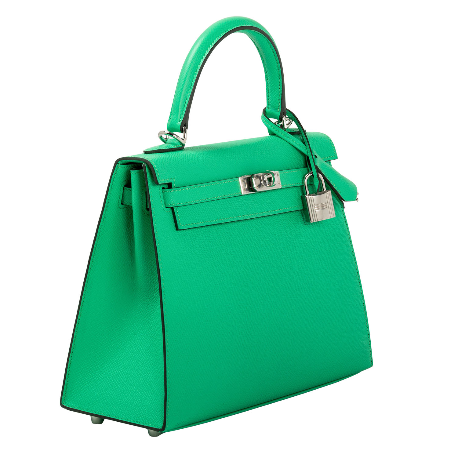 Kollektion 2023 (Stamp B). Epsom Leder in Vert Comics (Hellgrün). Hardware in Silberfarben mit Palladium Auflage. Klassisches Modell im Full Set (Box, Staubbeutel, Clochette, Schloss, Schlüssel, Schulterriemen, Rechnung anbei). Hardware noch foliert, dezente Gebrauchsspuren vorhanden.