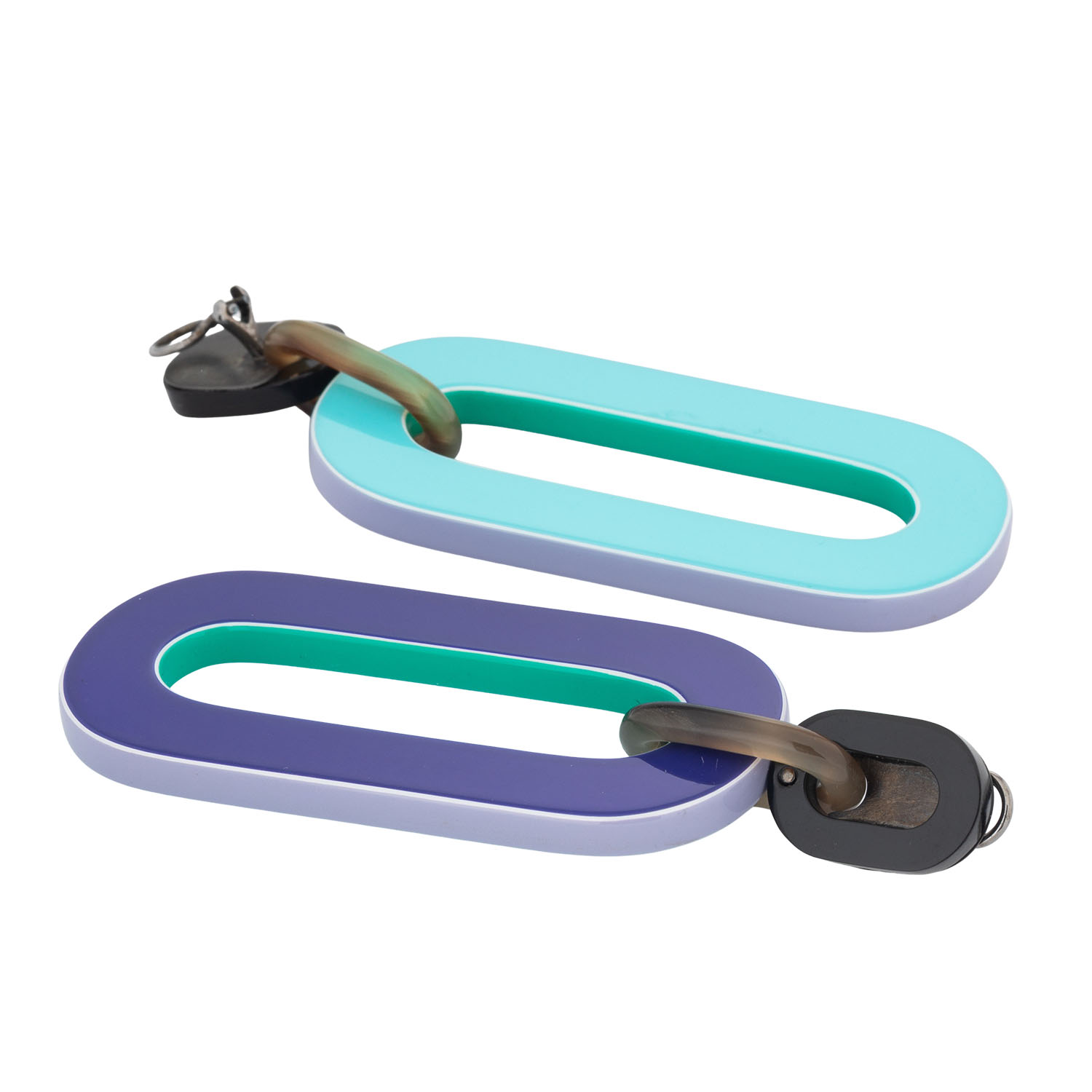 Mehrfarbiges Modell aus lackiertem Horn. Tragespuren vorhanden, umgearbeitet.