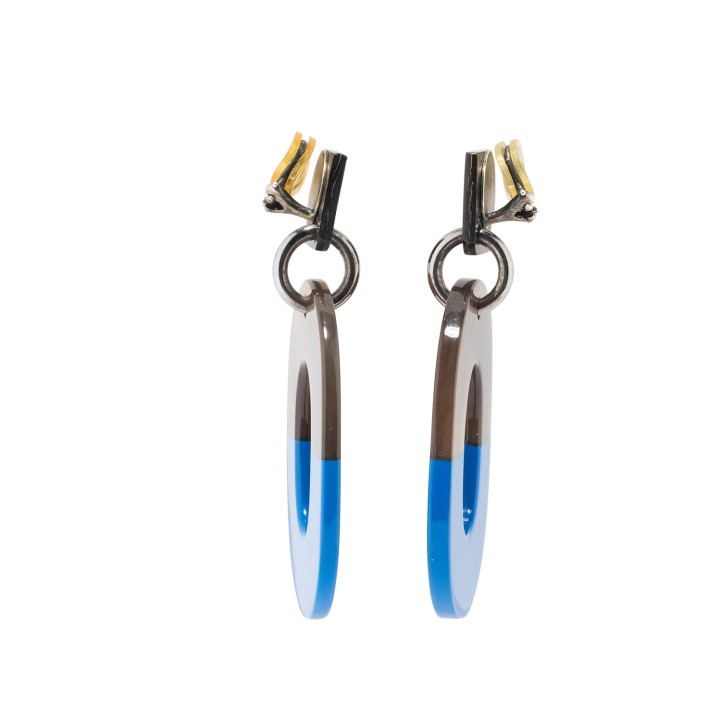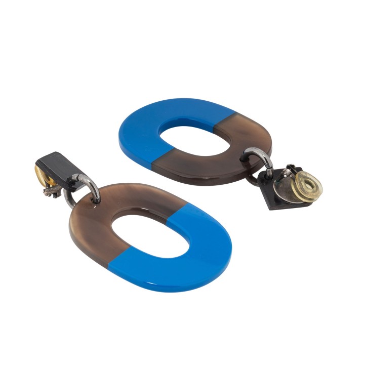 Mehrfarbiges Modell aus lackiertem Horn. Tragespuren vorhanden, umgearbeitet.