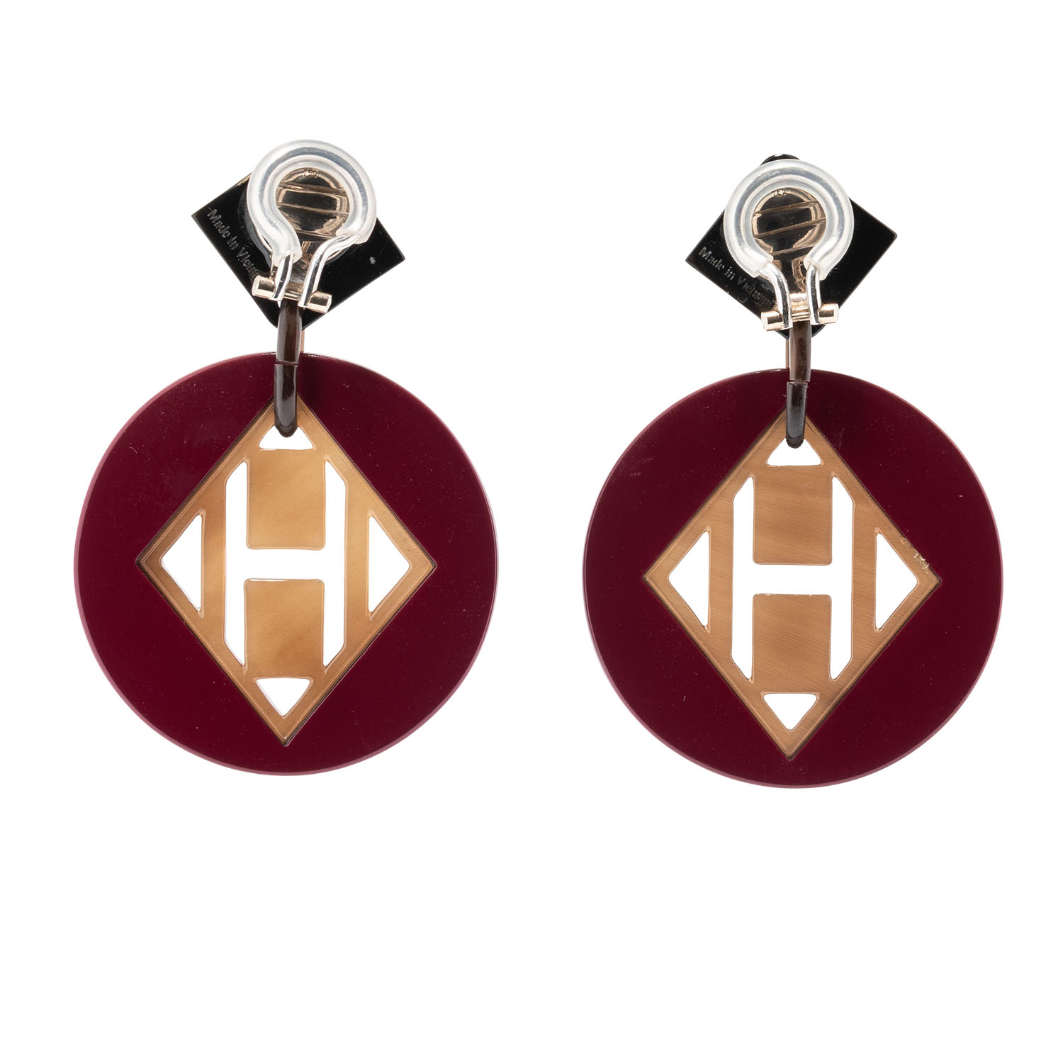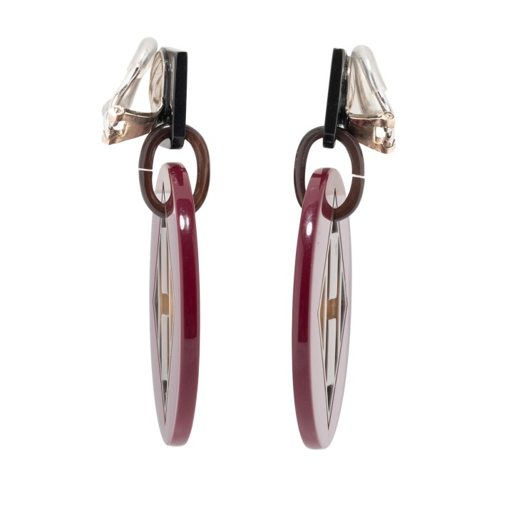Weinrotes Modell aus lackiertem Horn mit H-Design. Tragespuren vorhanden, umgearbeitet.