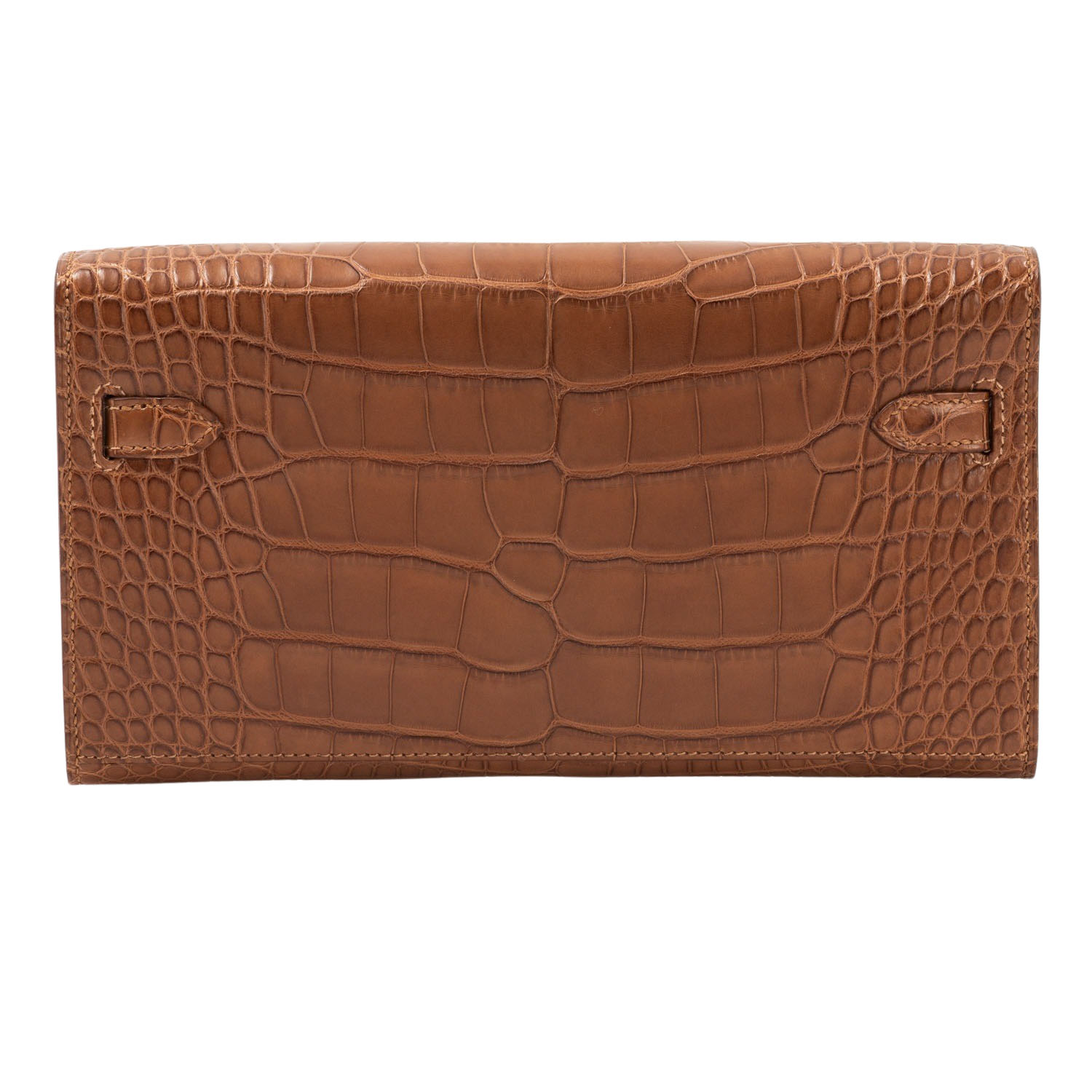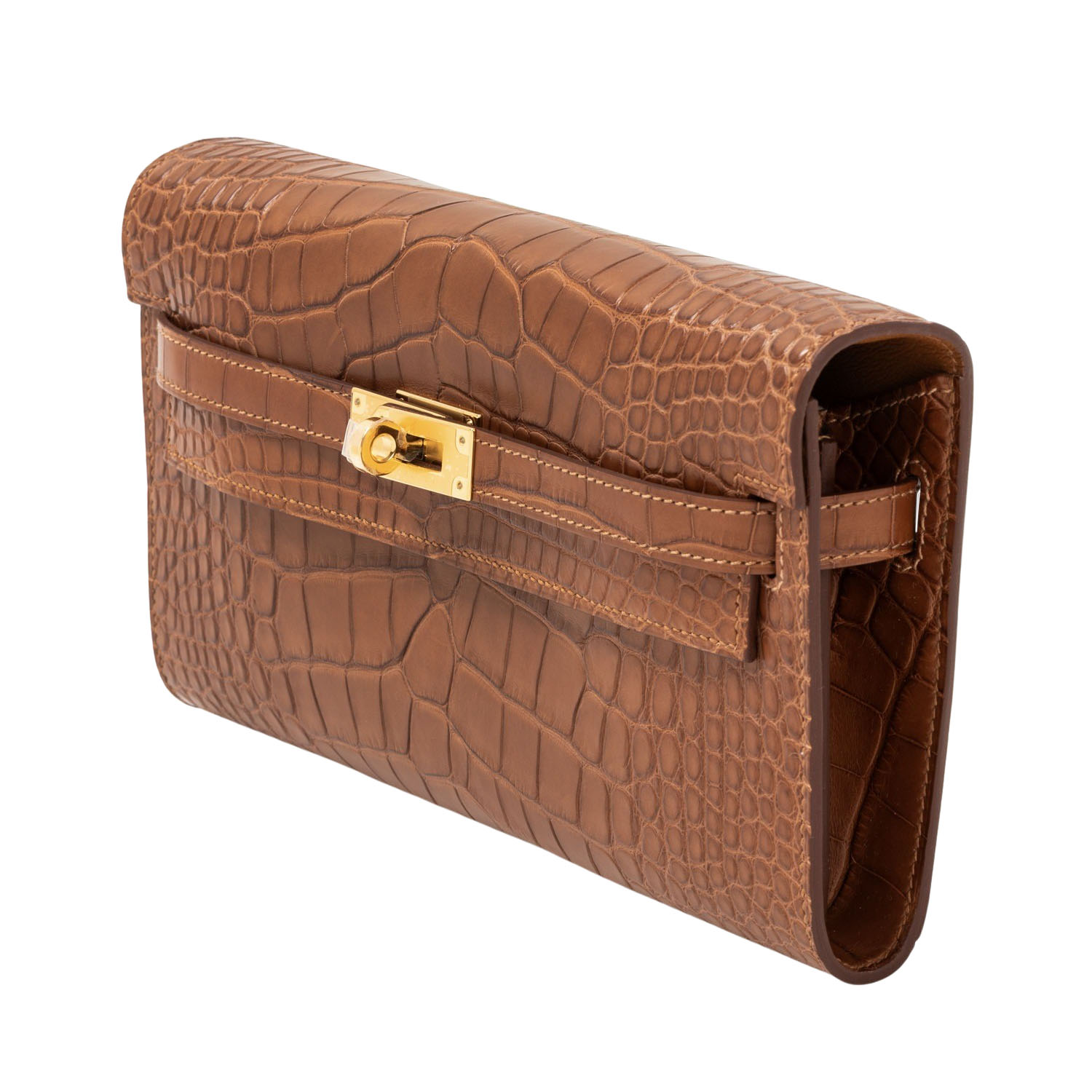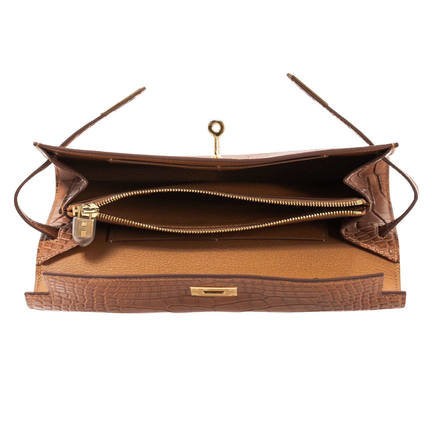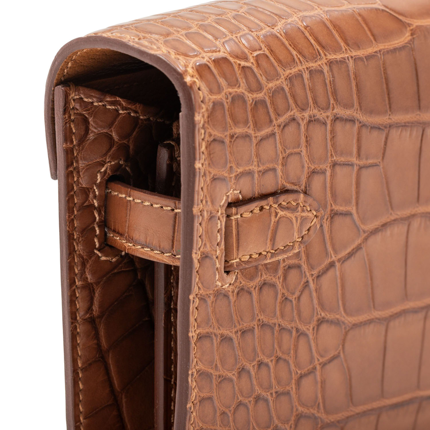 Koll. 2024. Aus mattem Alligatorleder (Missi.) in Gold (Hellbraun) mit vergoldeter Hardware. Klassisches Modell mit ikonischem Laschenverschluss und diversen Innenfächern. Schulterriemen, Box, Kopie der Rechnung und orig. Cities anbei. Neuwertiger Zustand, Hardwar foliert.