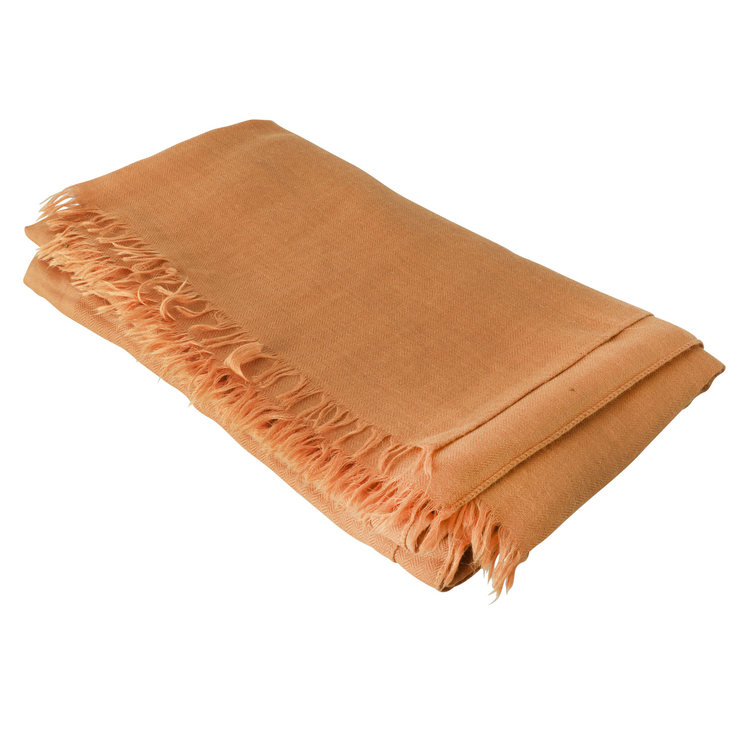 80% Kaschmir, 20% Wolle. Braunes Modell, teilweise mit Zick-Zack-Webung und Fransenabschluss. Tragespuren und Flecken vorhanden. 150 x 200 cm.
