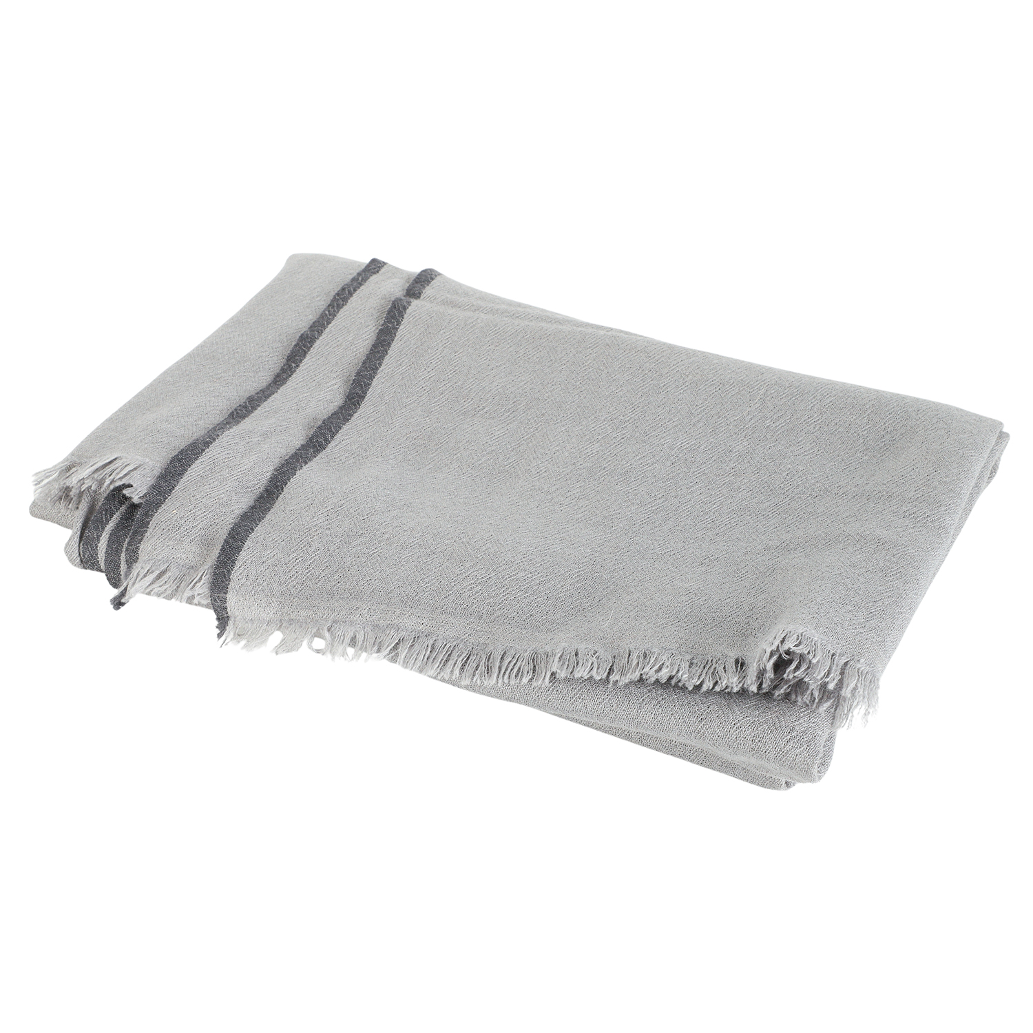 100% Kaschmir. Graues Modell mit Struktur und dunkelgrauen Kanten, Fransenabschluss. Guter Erhalt. 146 x 200 cm.