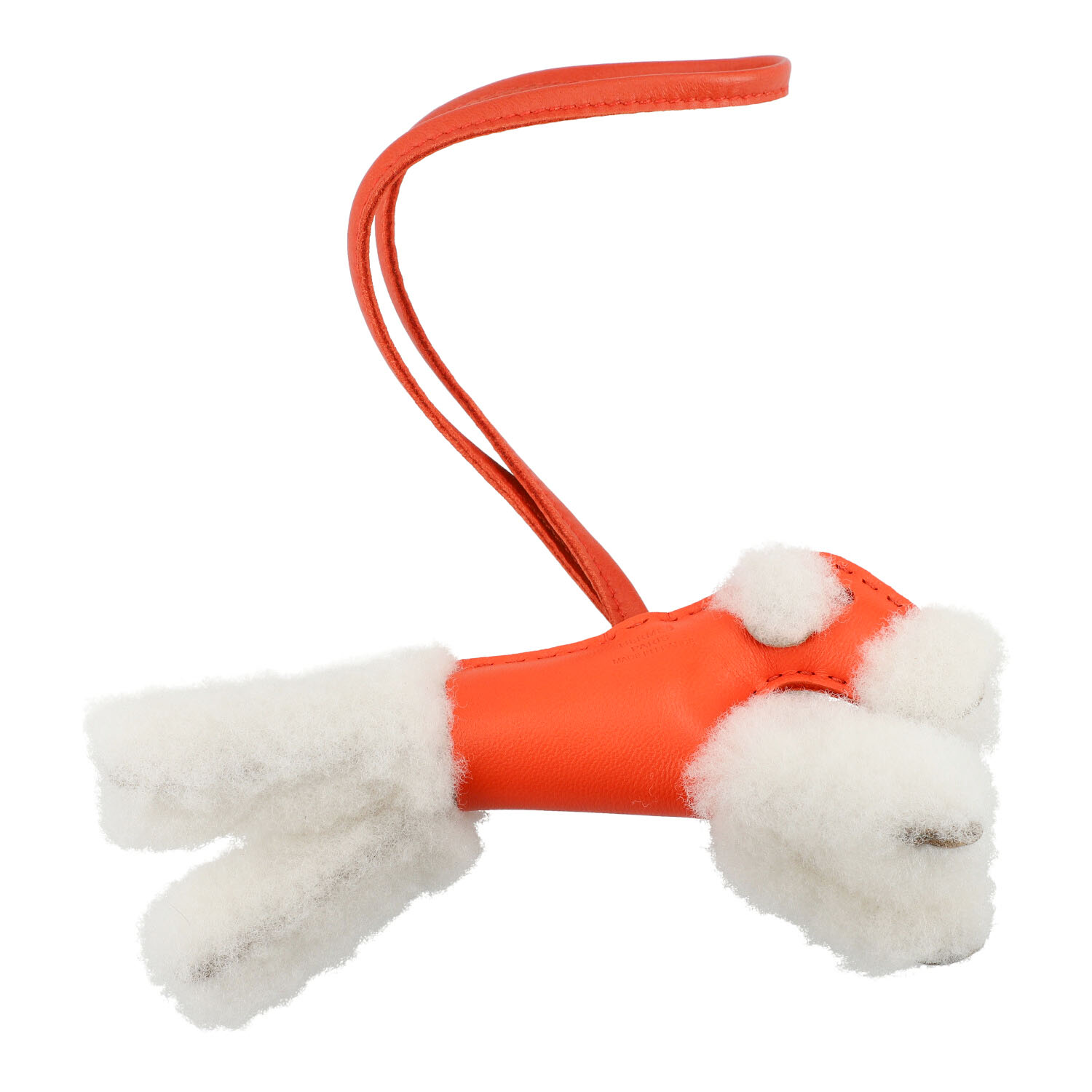 Handgenähter Talisman (Charm) 'Foxterrier' aus Merino-Schafwolle und Milo-Lammleder in Orange. Box anbei. Neuwertig.