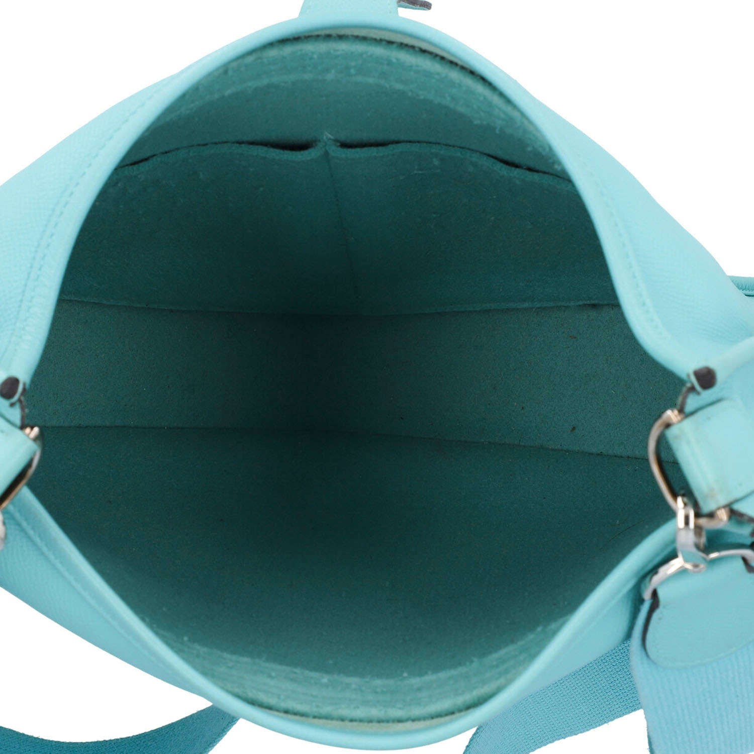 Koll. 2015. Epsom Leder in Bleu Atoll (Sonderfarbe) mit silberfarbener Hardware. Klassisches Modell mit textilem Schultergurt. Externer Einsatz anbei. Leichte Tragespuren vorhanden.