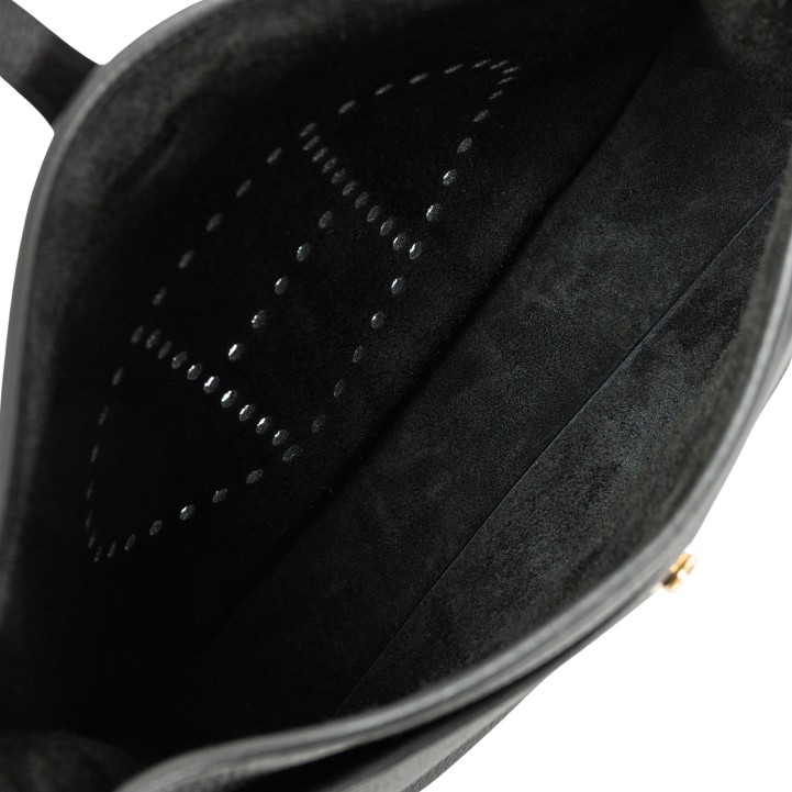 Taurillon Clemence Leder im Farbton Noir mit Schulterriemen aus Textil in Noir. Goldfarbene Hardware, perforiertes H auf der Front und Lasche mit Druckknopf als Verschluss. Box, Staubbeutel und Rechnung anbei. Neuwertig.