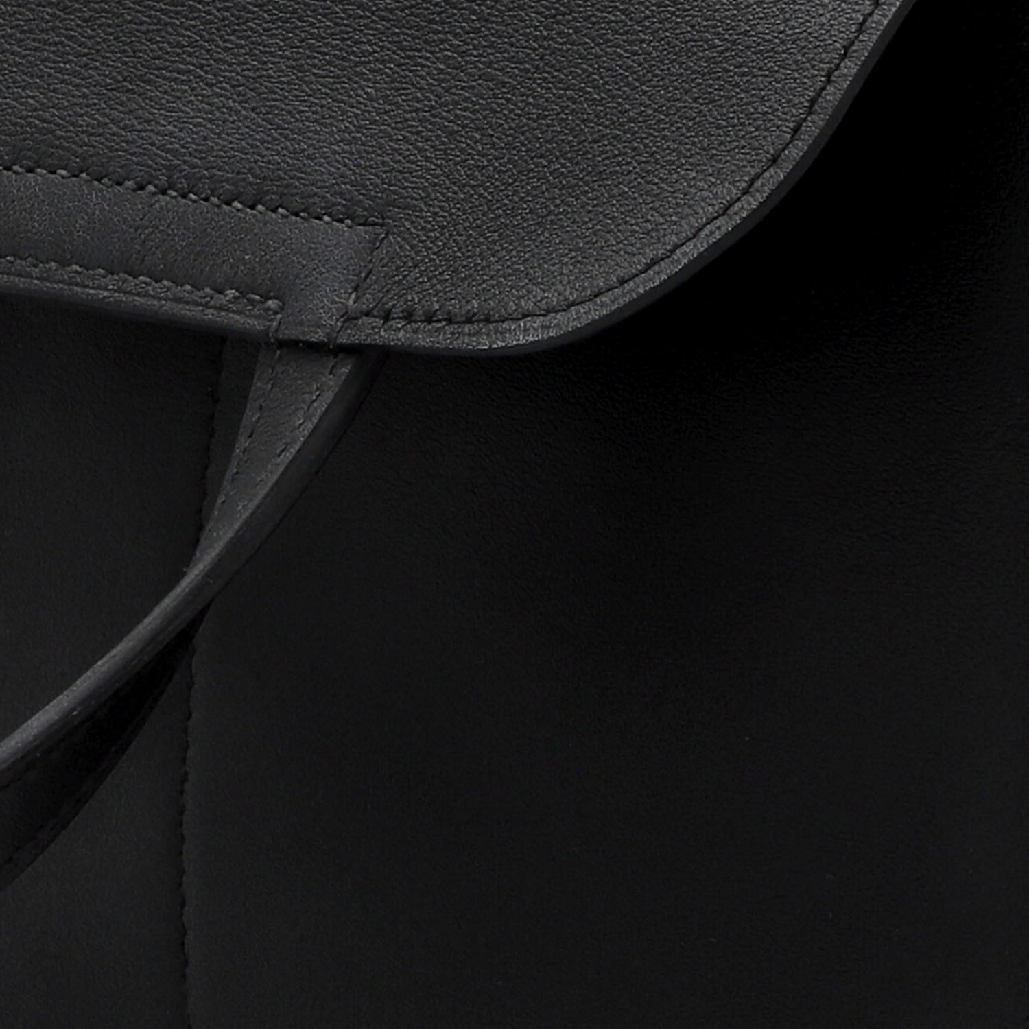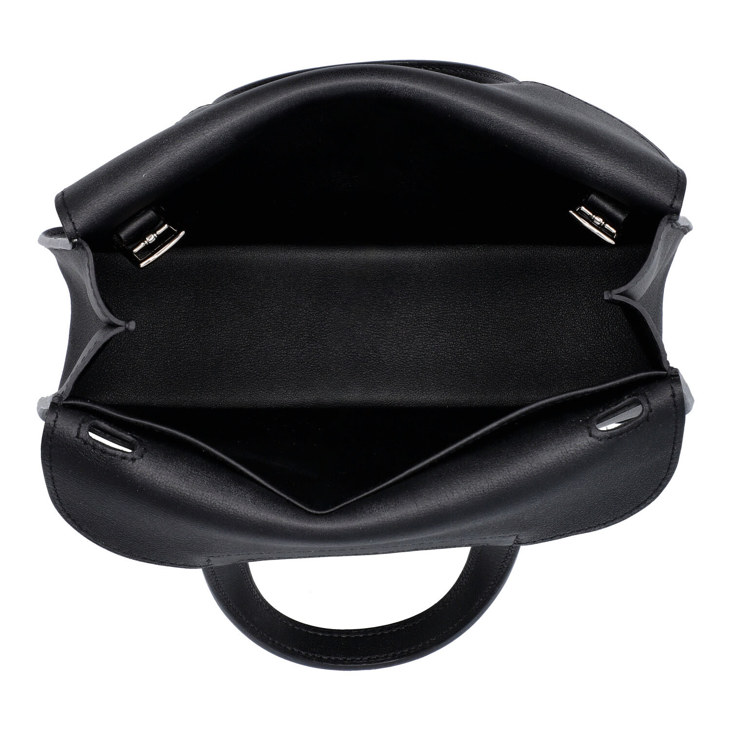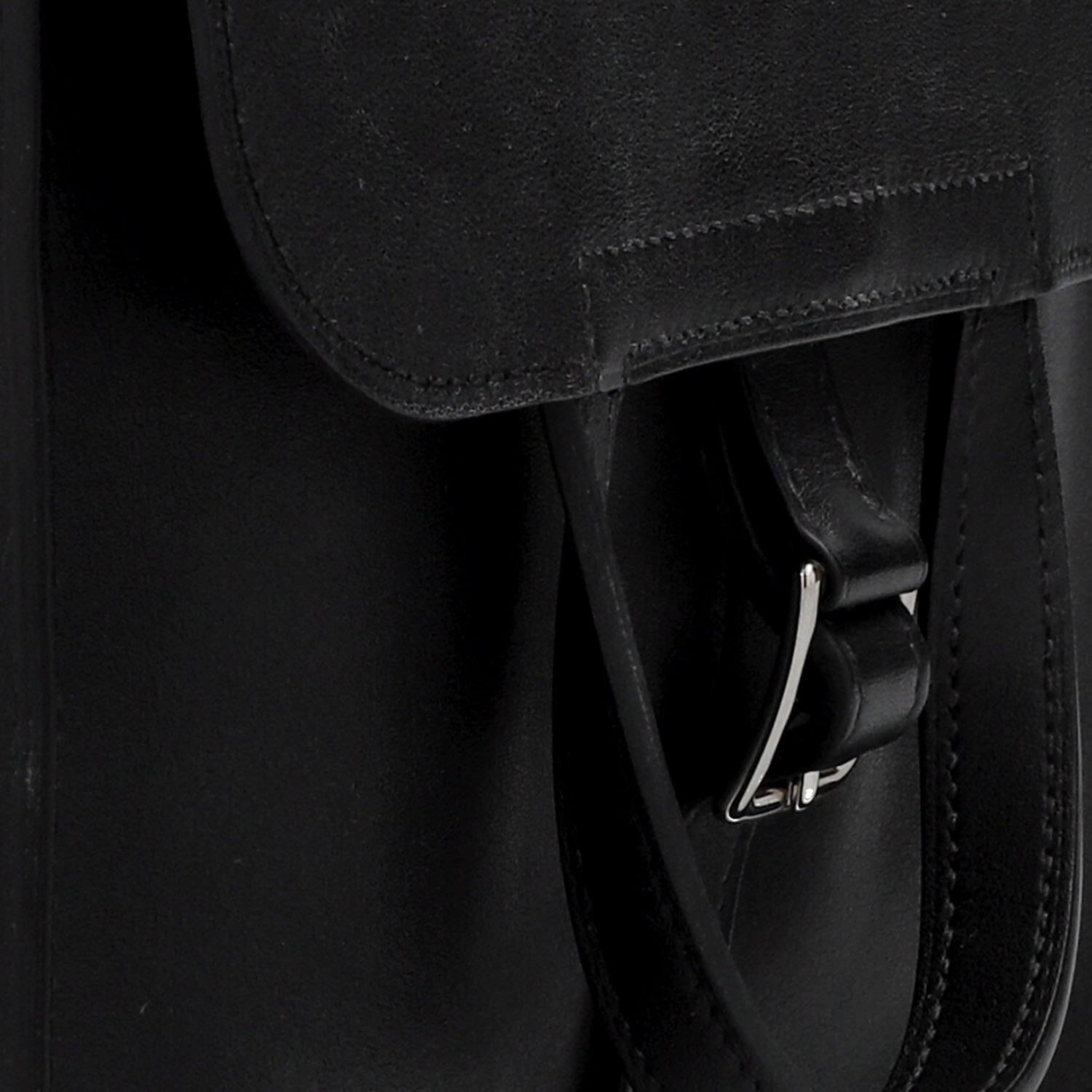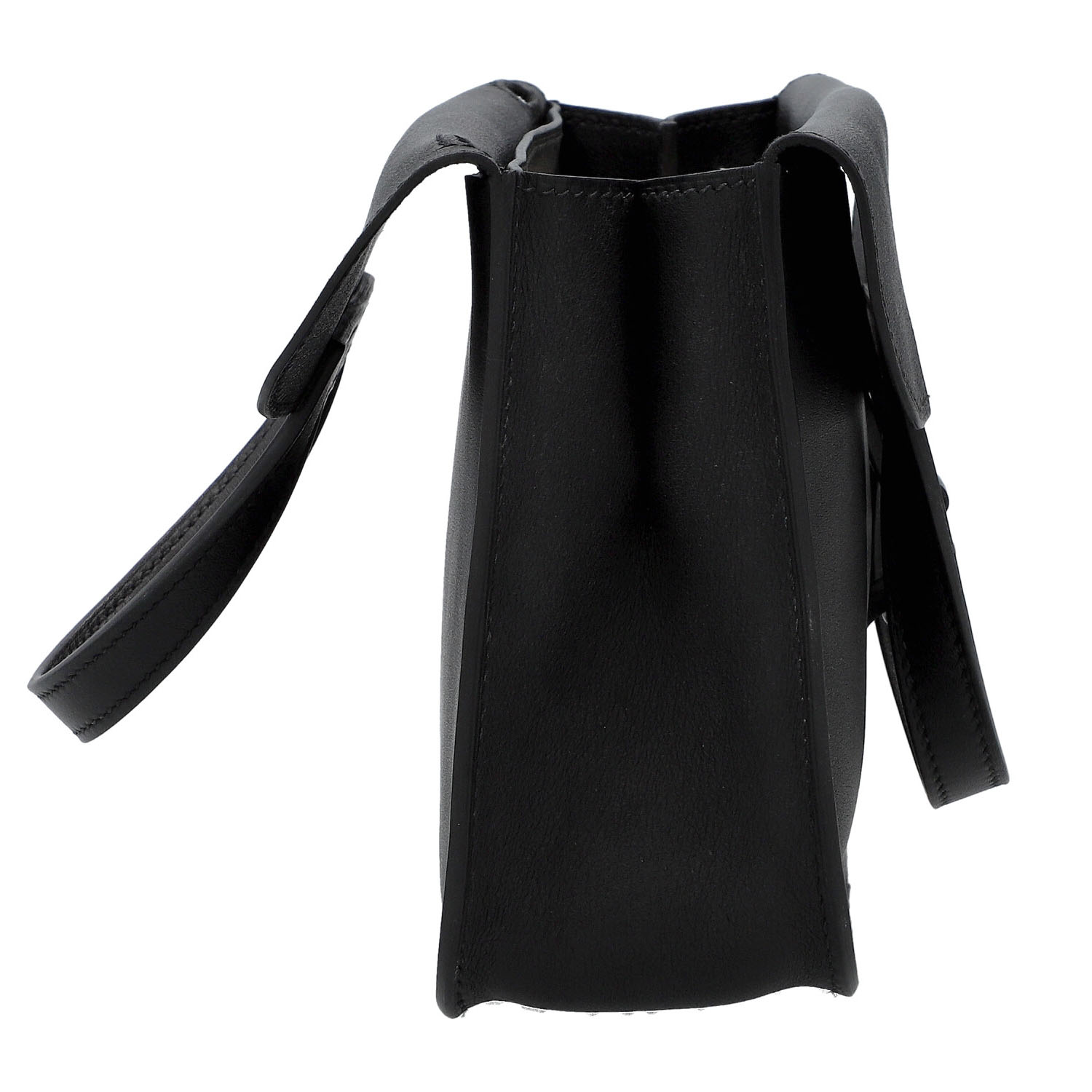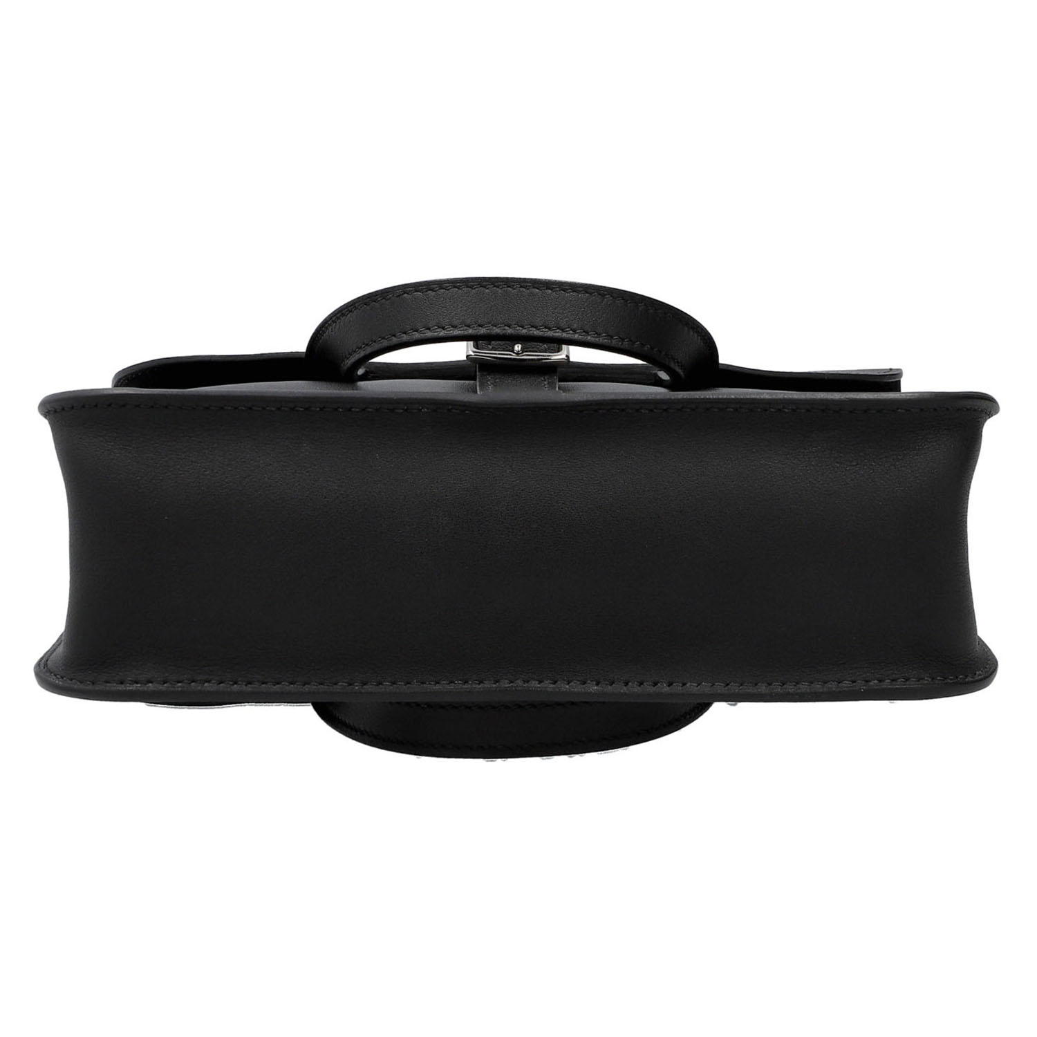 Swiftleder in Schwarz, Hardware mit Palladium-Auflage, Überschlag mit Doppelhenkeln und Riemen, zwei Außenfächer auf der Front. Innenraum mit zwei Abteilen. Box, Staubbeutel, Schulterriemen und Rechnung anbei. Gebrauchsspuren vorhanden. 21,5 x 15 x 7 cm.