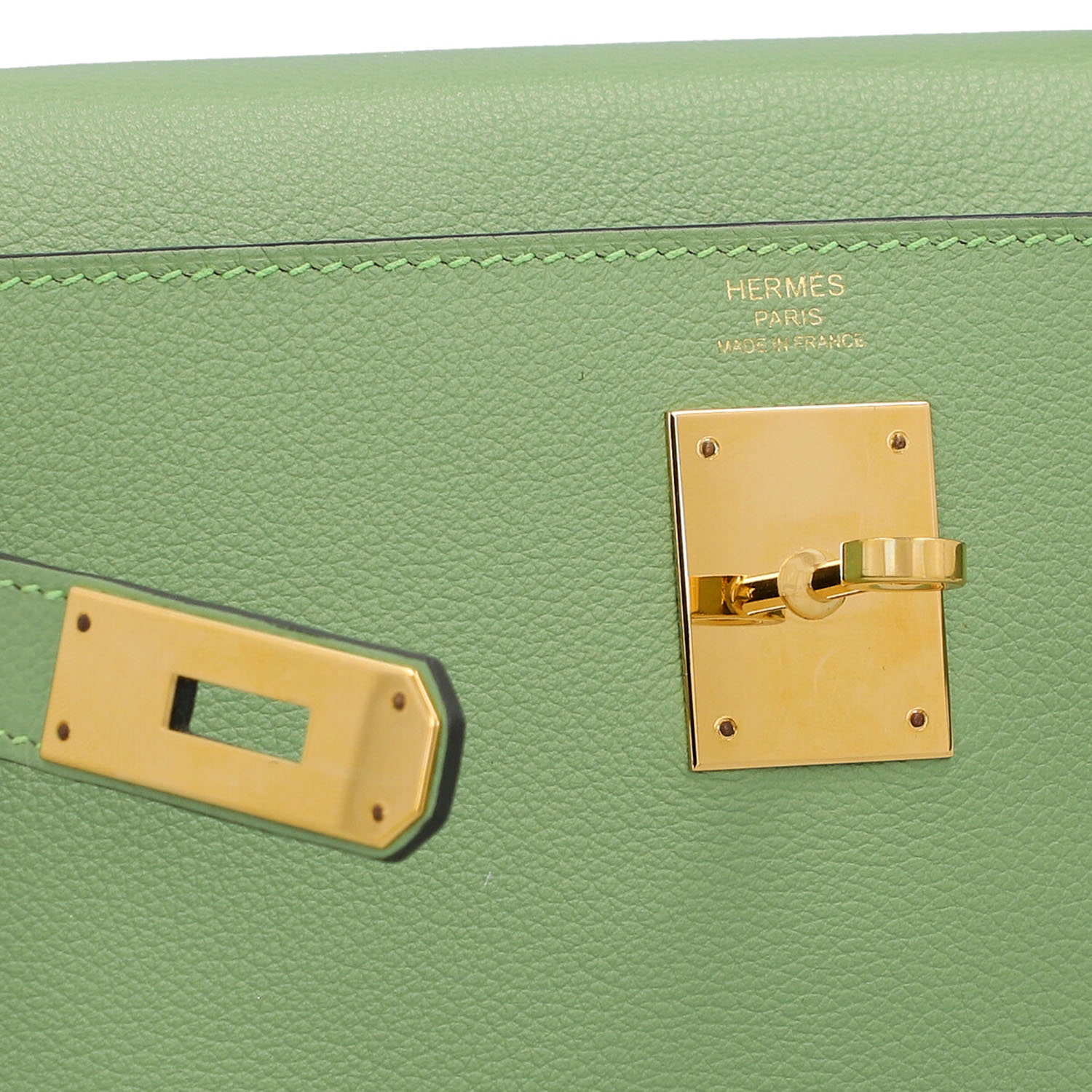 Kollektion 2021 (Stempel 'Z'). Evercolor Leder in Vert Criquet (Hellgrün) mit vergoldeter Hardware. Klassisches Modell im Full Set (Box, Staubbeutel, Schulterriemen, Clochette, Schloss, Schlüssel und Rechnung anbei). Guter Erhalt, bis auf leichte Gebrauchsspuren am Henkel, Kratzer auf der Hardware und Abrieb an den Kanten.
