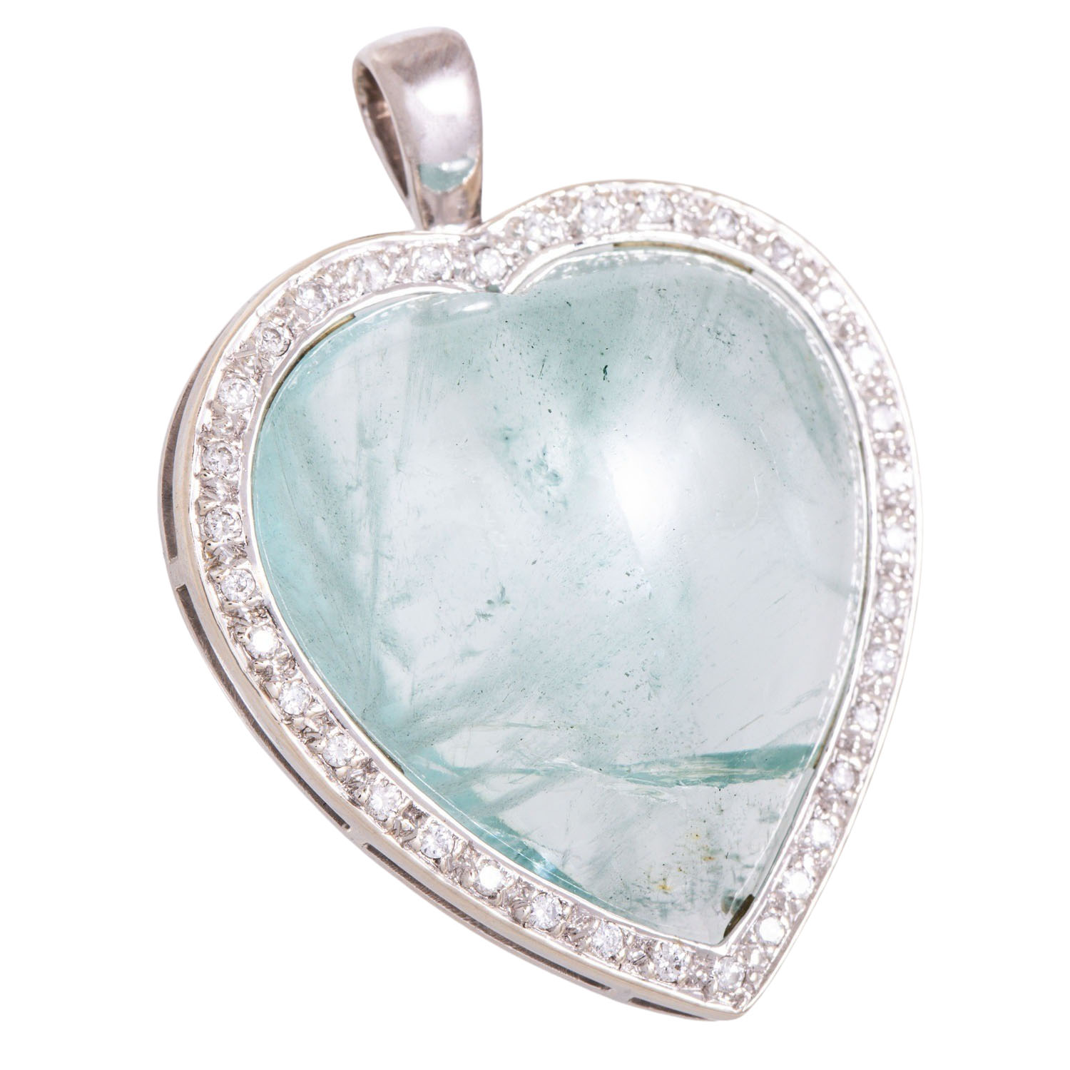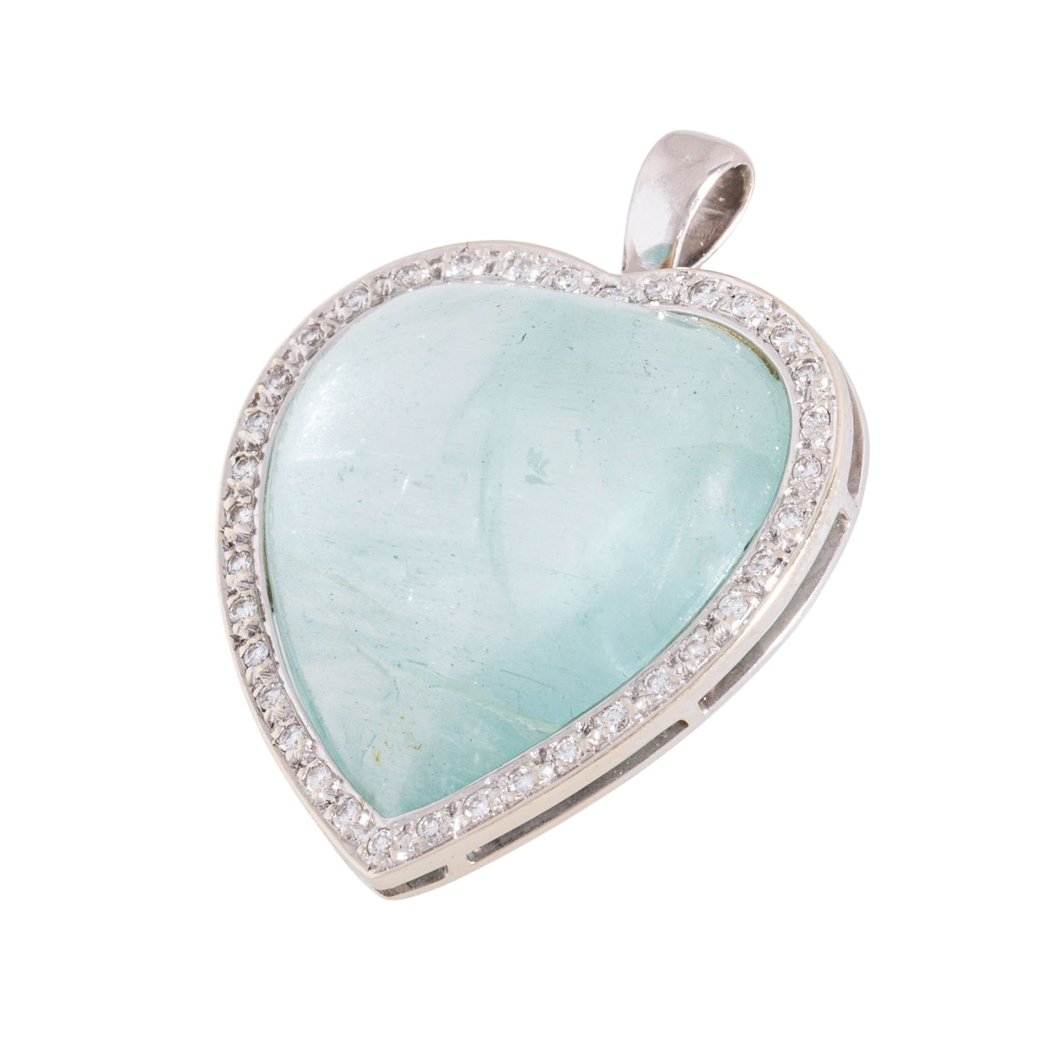 Herzanhänger mit Aquamarincabochon und Brillanten