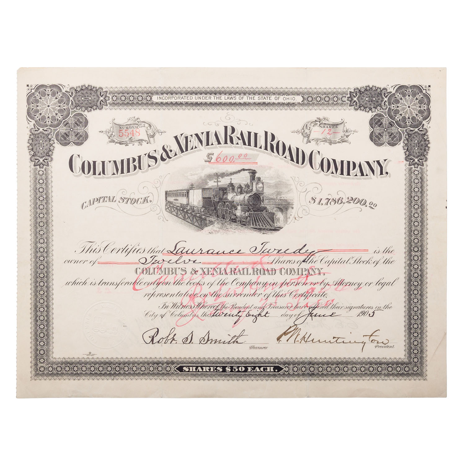 Historische Aktie der Columbus & Xenia Railroad Company, 1905,