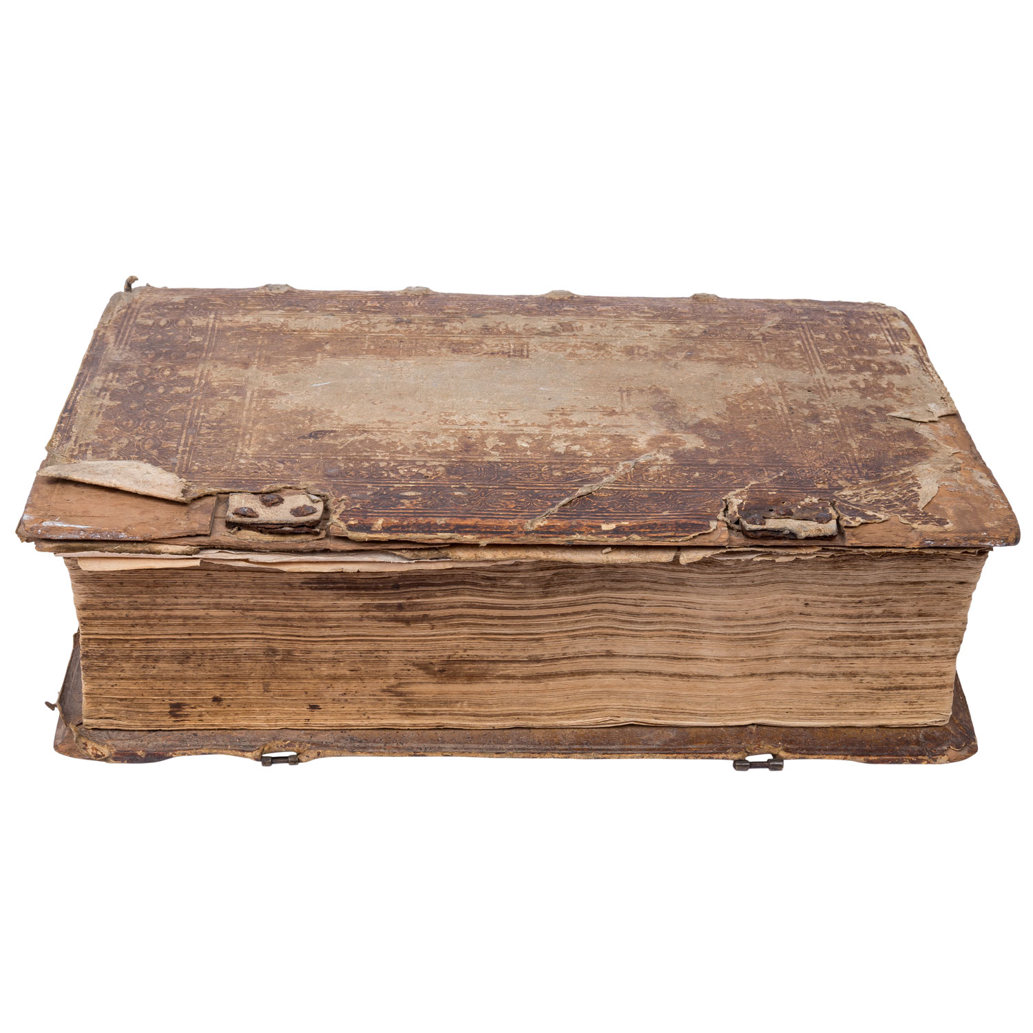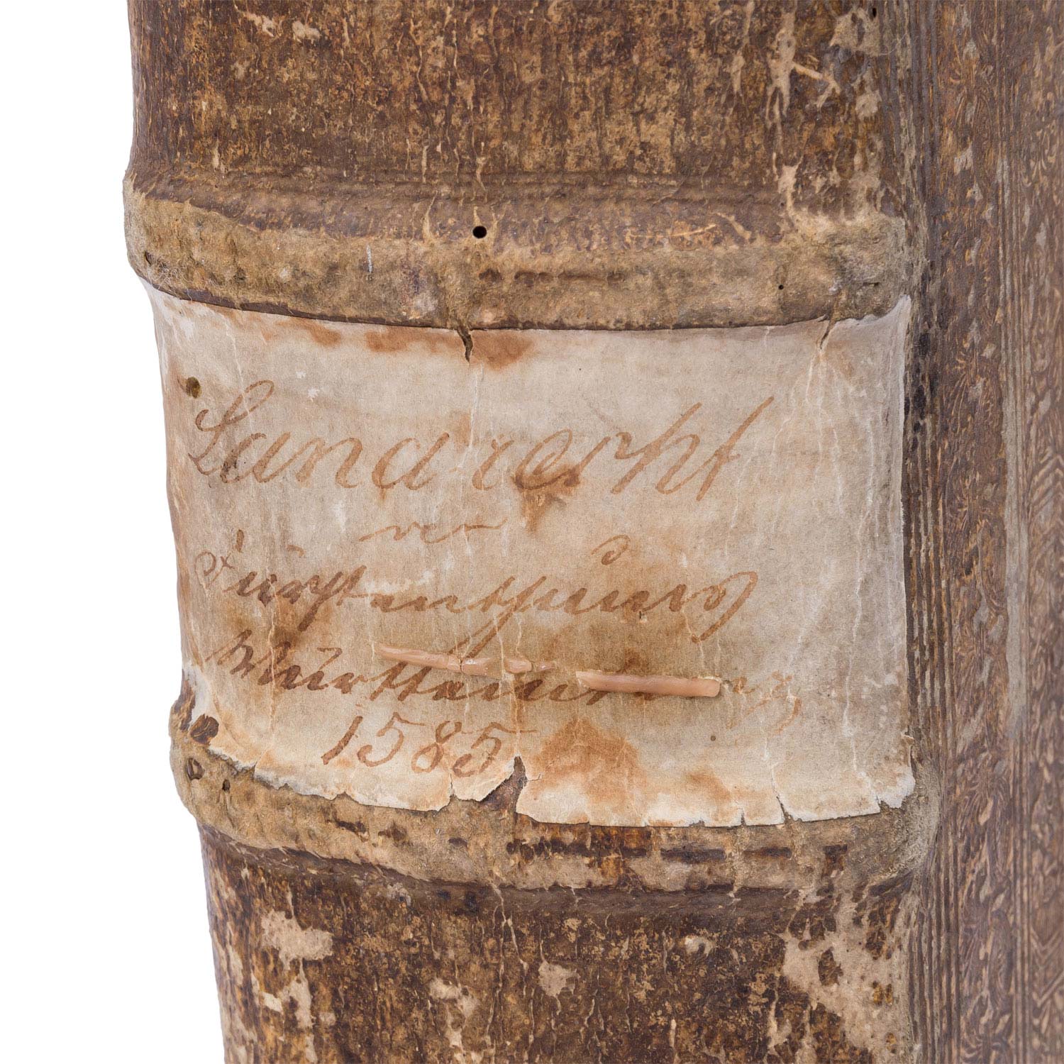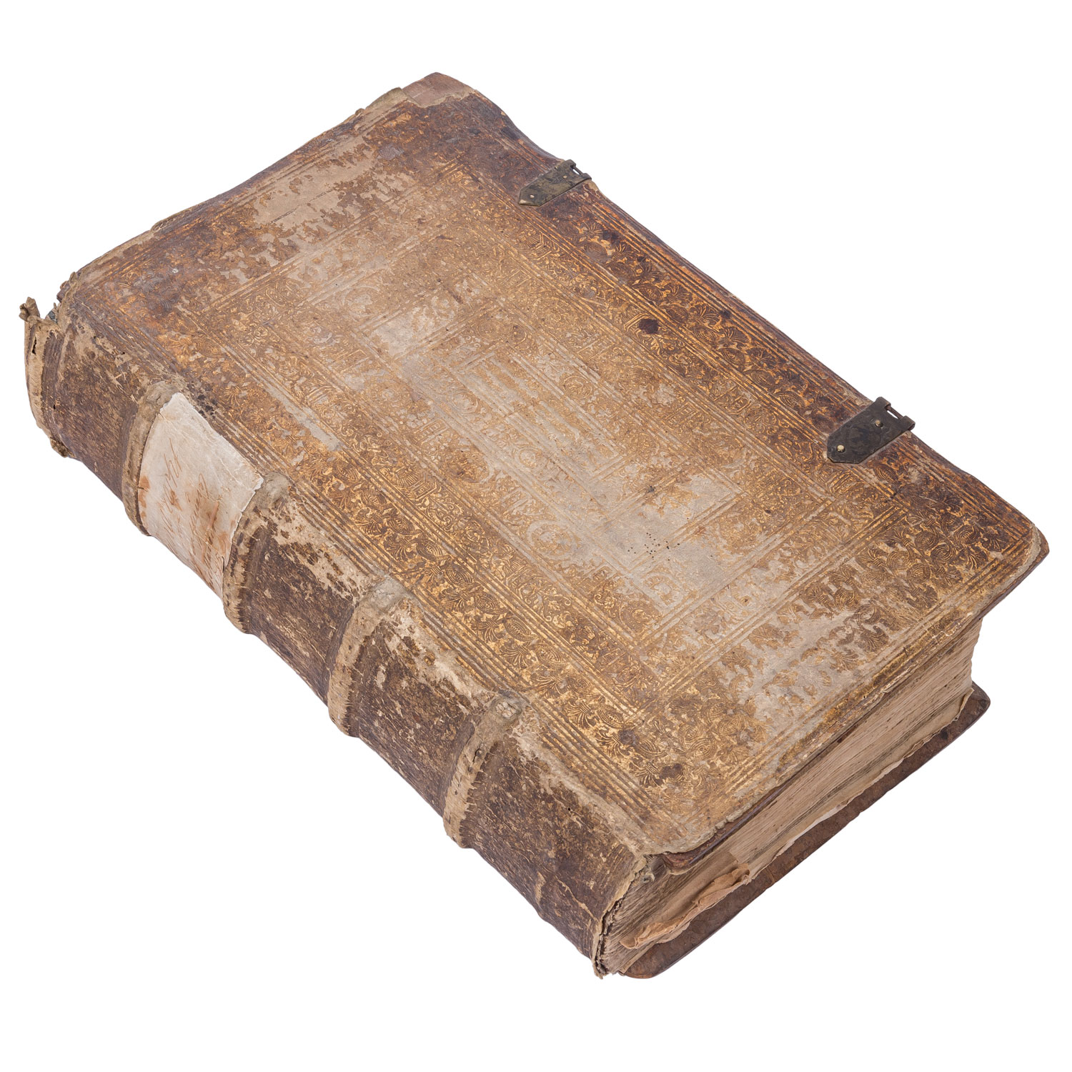 'Des Fürstenthumbs Würtemberg gemein Landtrecht/ in vier Theil verfaßt.' Nicht kollationiert. Mit deutlichen Alters-und Gebrauchsspuren, Verfärbungen, Einrisse, Knicke, starker Abrieb, handschriftliche Notizen, Wurmlöcher, Einband beschädigt mit Fehlstellen, verstärkende Holzplatte des Einbands gebrochen, Flecken, Seiten partiell restauriert, Seiten z.T. lose, Stockflecken.