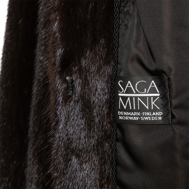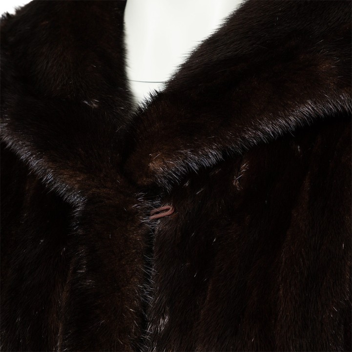 Saga Mink Qualität. Felle in Dunkelbraun mit Schalkragen und Hakenverschluss. Guter Erhalt.
