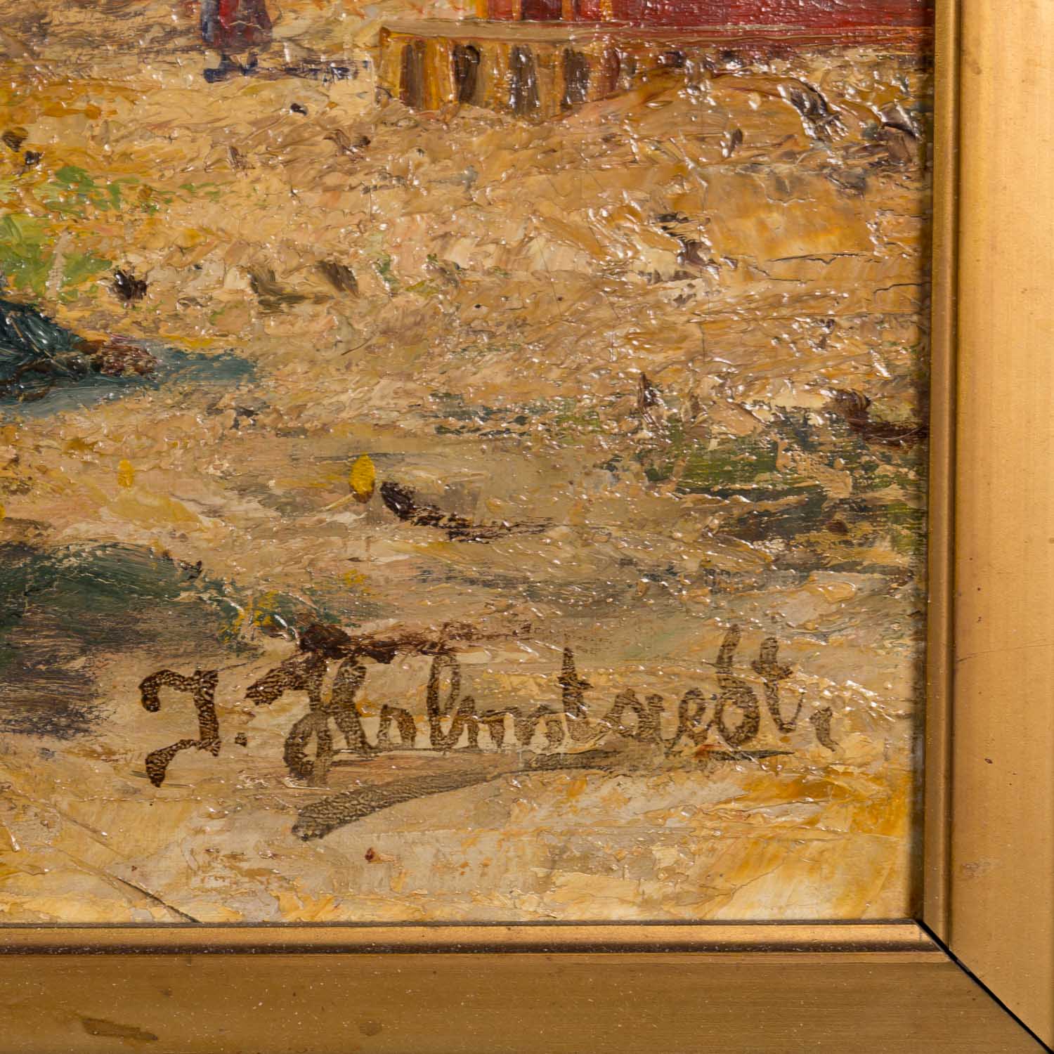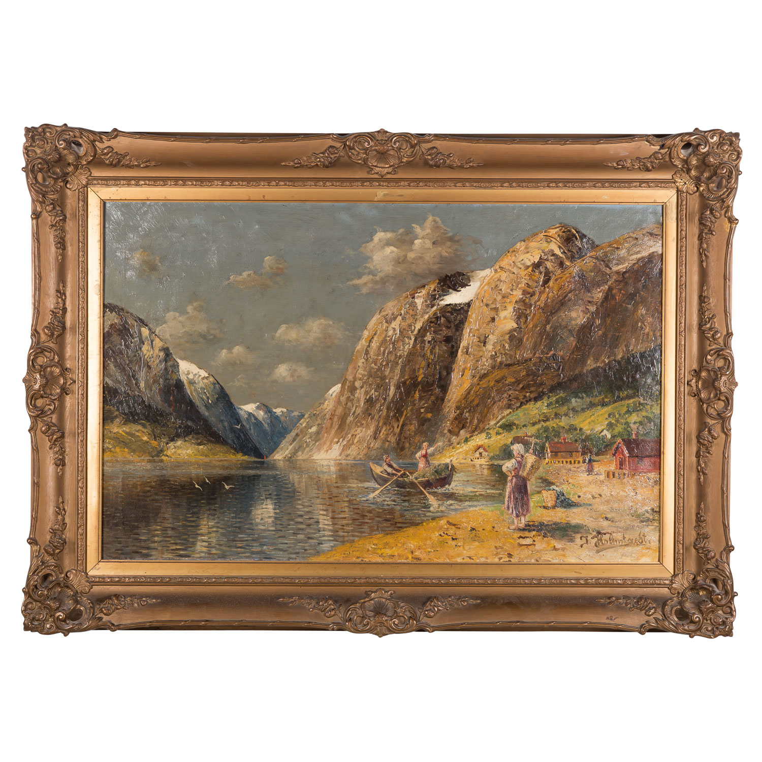 mit Personenstaffage, unten rechts signiert: 'J. Holmstedt', Öl auf Leinwand, HxB: ca. 69 x 131 cm (HxB Rahmen: ca. 95 x 131 cm). Alters- und Beriebsspuren, Leinwand wellig, Verschmutzungen, minimaler Farbabrieb. Mit Rahmen (Leichte Beschädigungen).