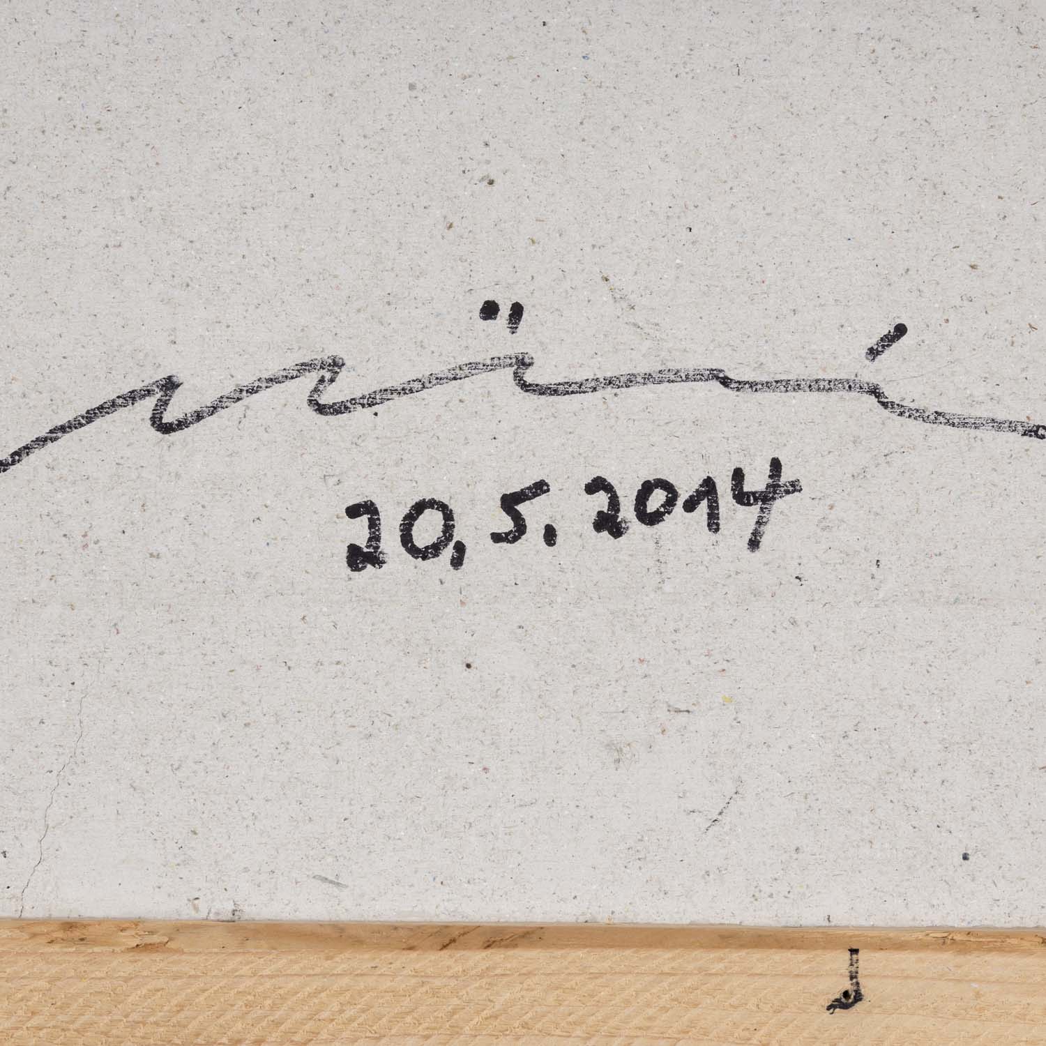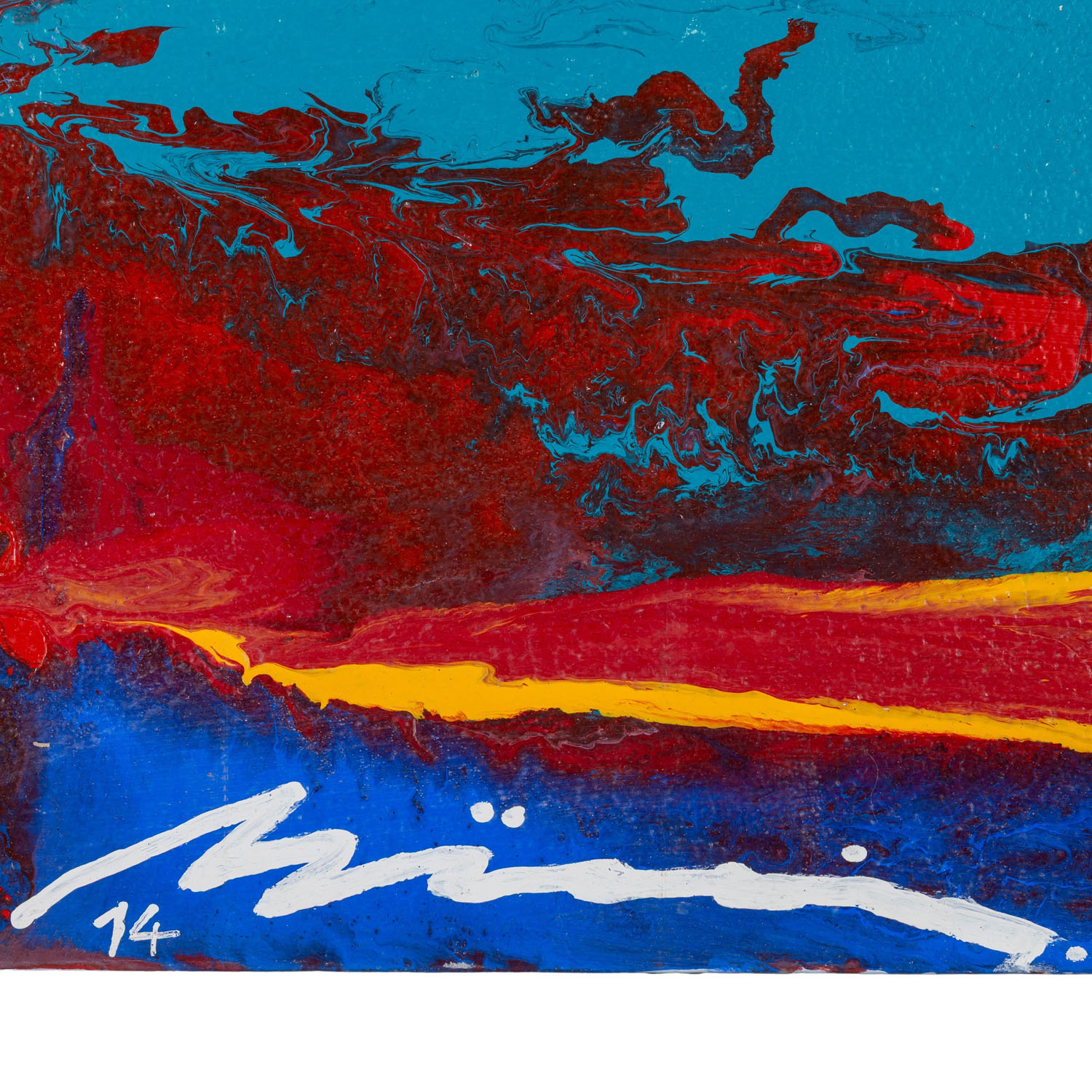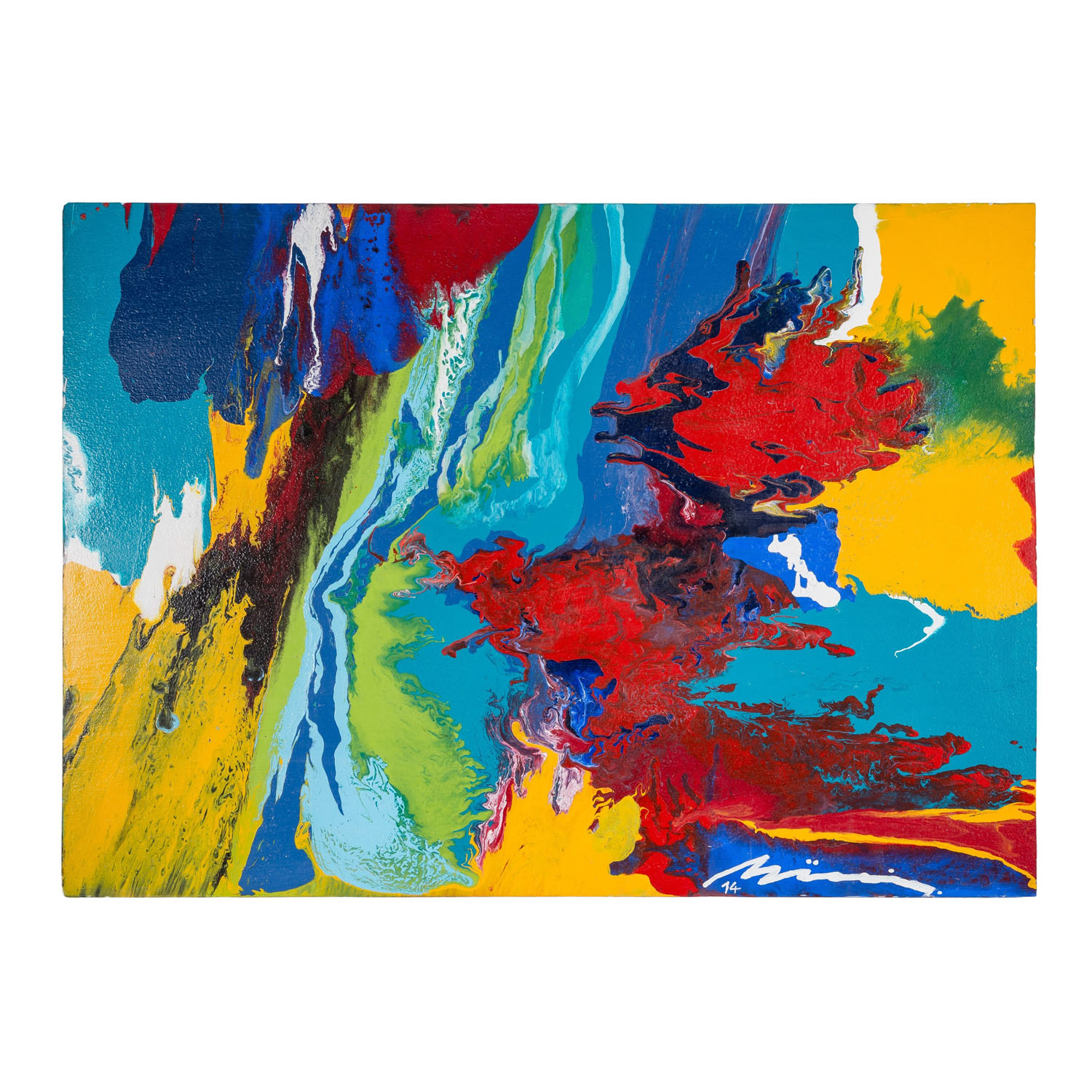 u.re. signiert und datiert, Acryl/Platte, HxB: ca. 100x141 cm. Alters- und Beriebsspuren, Farbabplatzer. VERSO handschriftlich datiert '20.5.2014'. ANBEI Magazin 'Zauberwelt Farbe' Burghard Hüdig art-painting, Würzburg 2017.