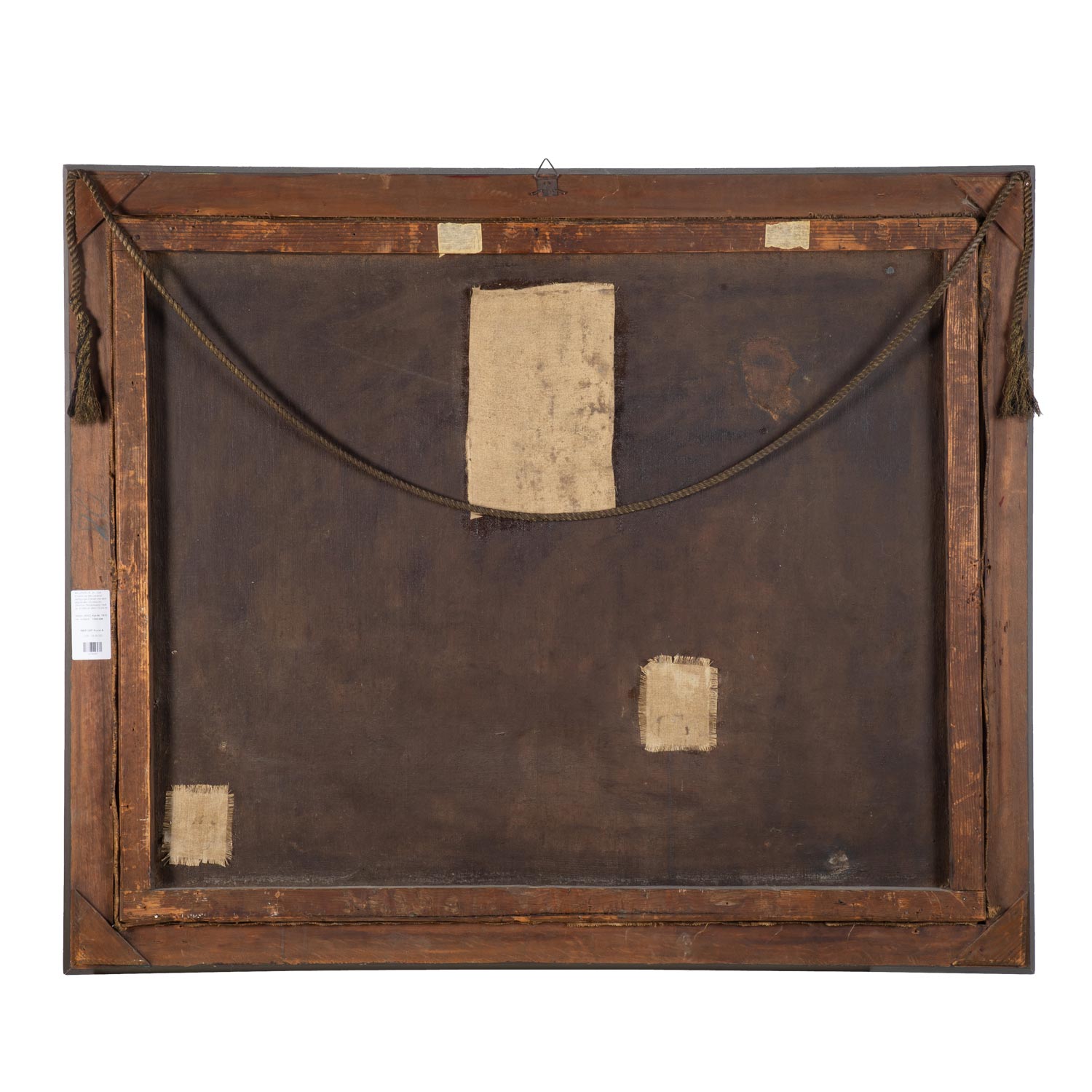vielfigurige Szenen mit dem segnenden Christus im Zentrum, Öl/Leinwand, HxB: ca. 81x99 cm (94x112 cm mit Rahmen). Alters- und Beriebspuren, Craquelé und Keilrahmenabdruck, alt restuariert mit Leinwanddoublierflicken und Retuschen. Mit Rahmen (Altersspuren).