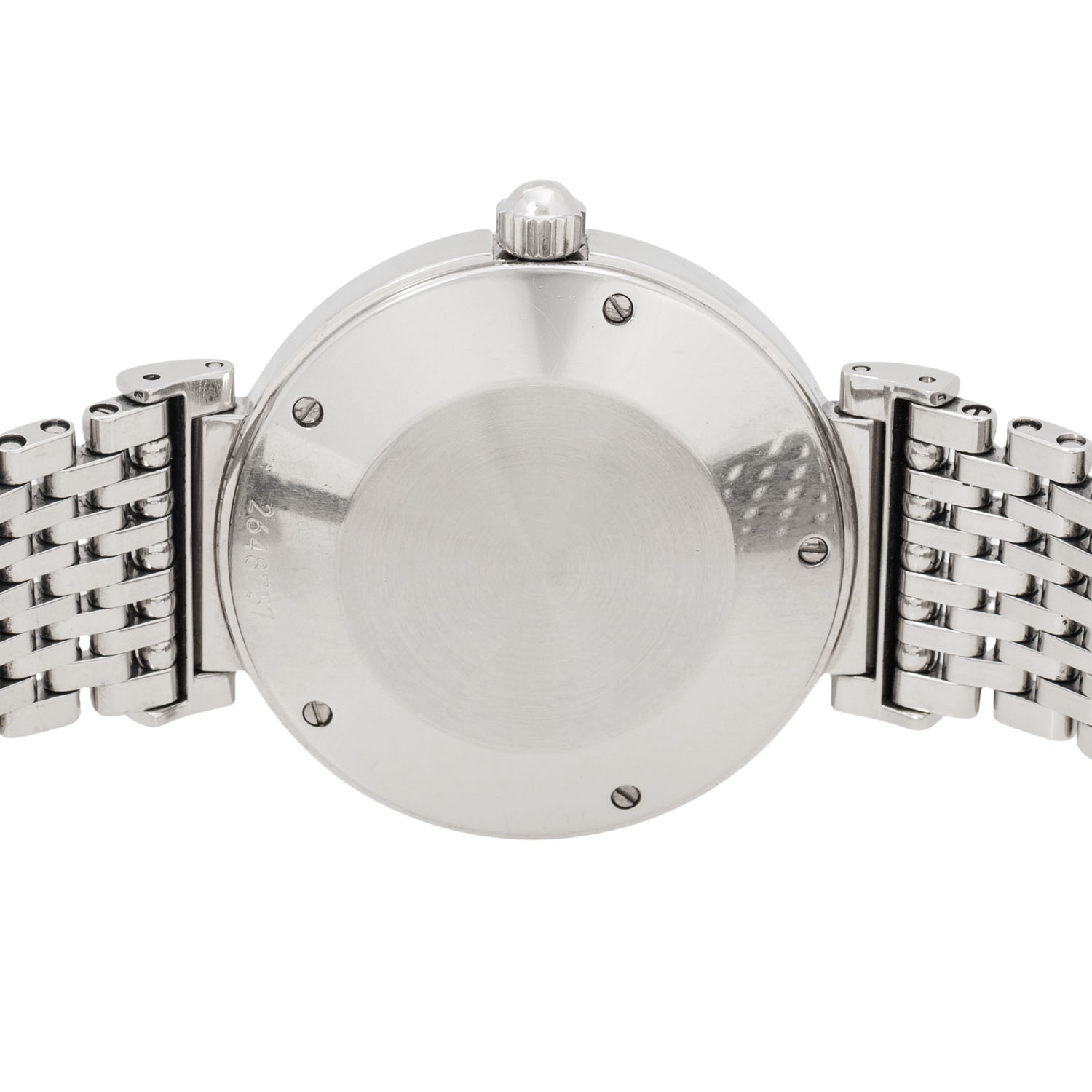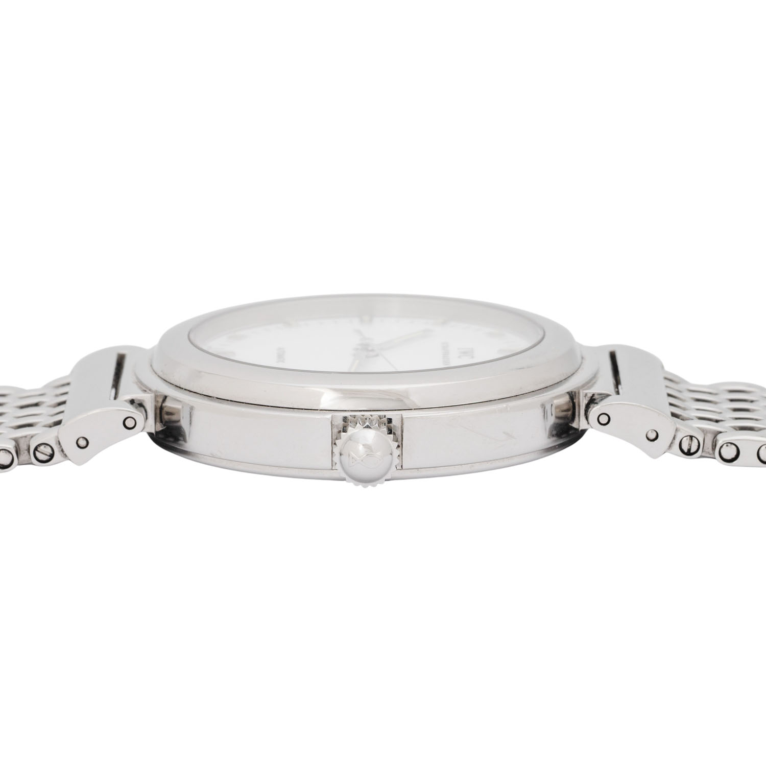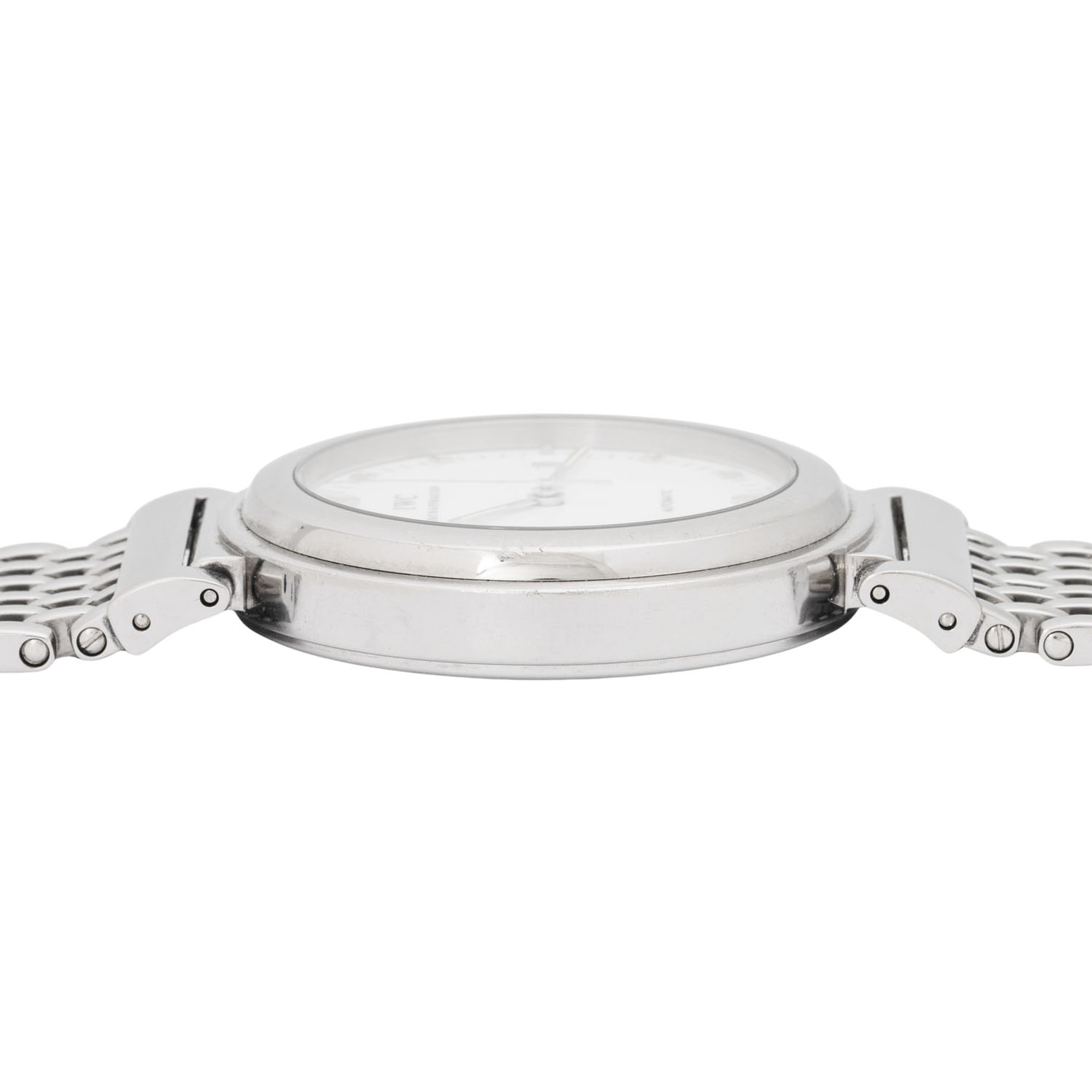 Edelstahl. Band mit Faltschließe. Automatikwerk Kal. 87524 in funktionstüchtigem Zustand. Weißes Zifferblatt mit Tritium Leuchtindizes und Datumsfenster. Seriennr. 2648757. In gebrauchtem Zustand mit sichtbaren Tragespuren am Gehäuse und Band. Durchmesser ca. 37 mm ohne Krone. Passend bis zu ca. 18 cm Handgelenkumfang.