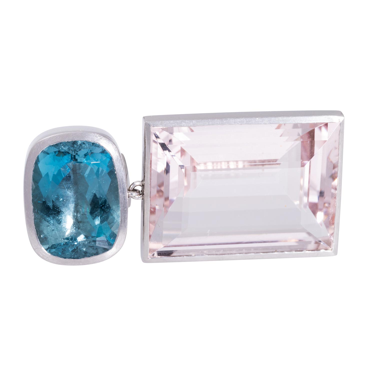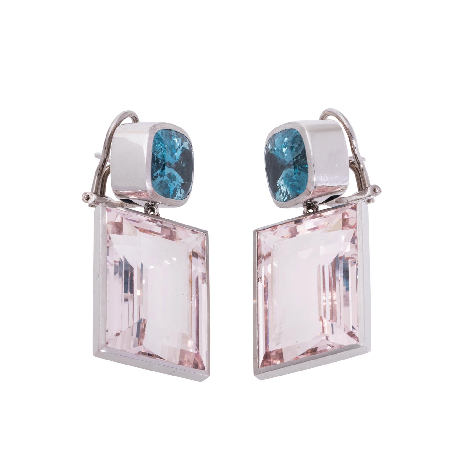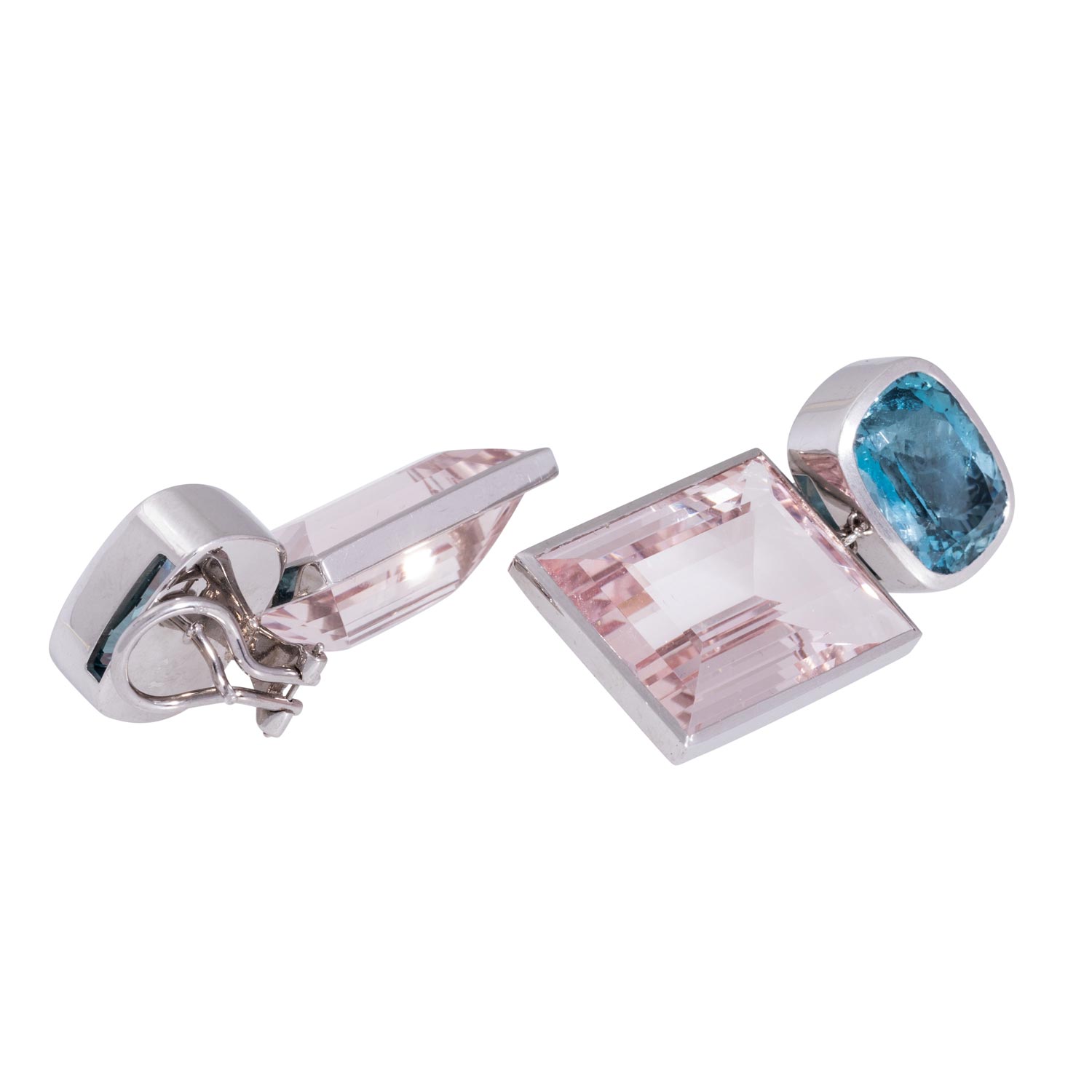 LxB 13,3x10mm und 2 rosafarbenen Morganiten LxB 23,4x16,2mm, in feinster Qualität, WG 18K, 33,1g, NP: 20.900,-€, L: 39,4mm, 21. Jh., sehr guter Zustand. Handarbeit.