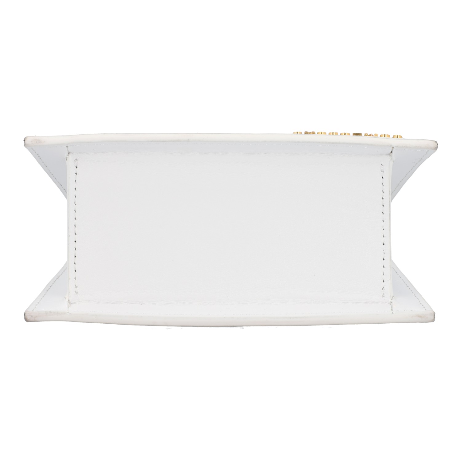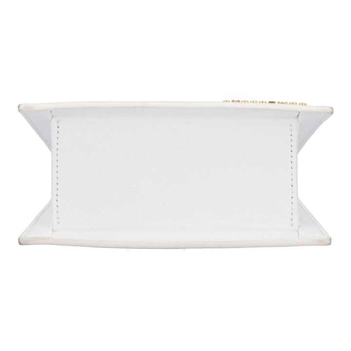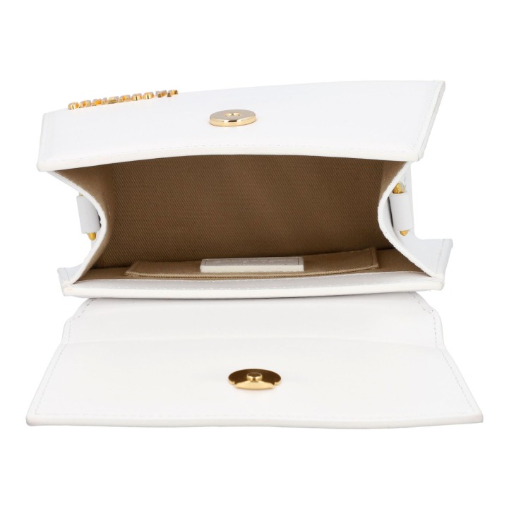 Aus Leder in Weiß. Front mit goldfarbener Logo-Applikation. Schulterriemen anbei. Guter Erhalt. 18x8x13cm.