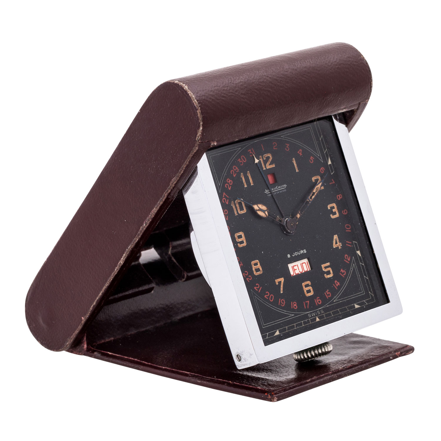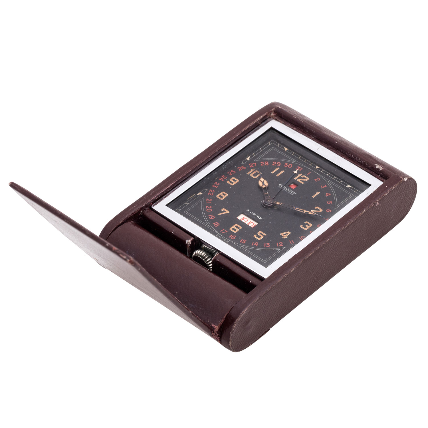 JAEGER LECULTRE Ados 8 Days Vollkalender Reiseuhr ca. 1930´er.