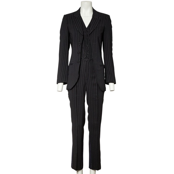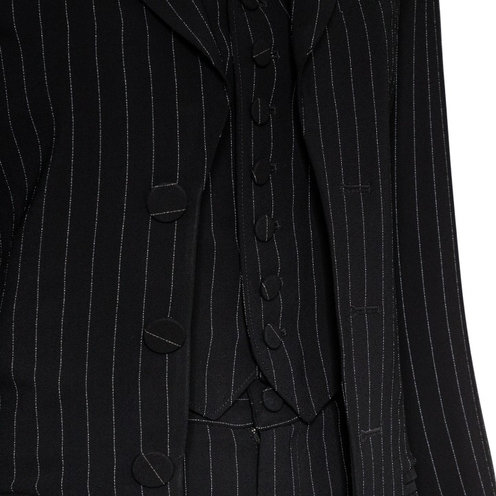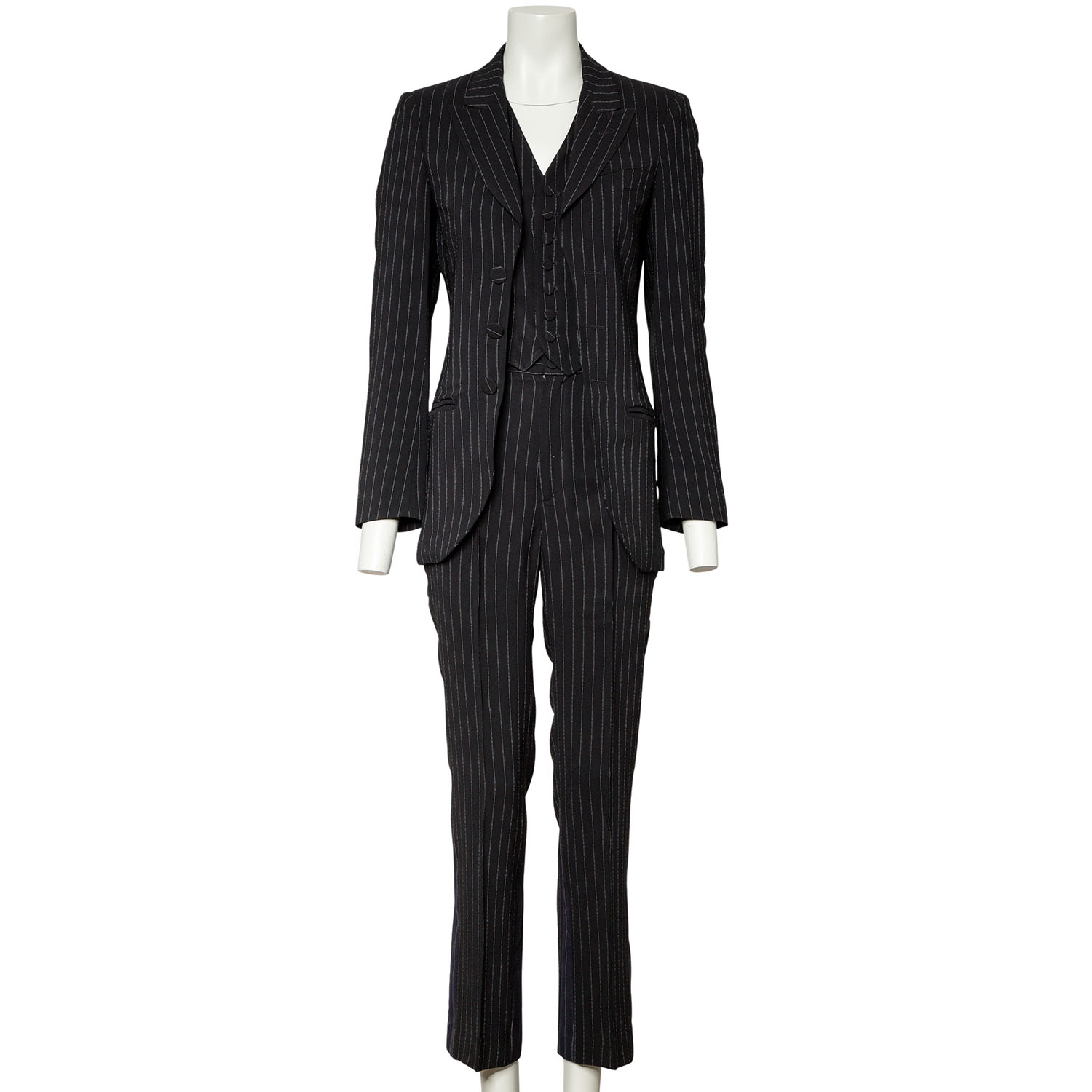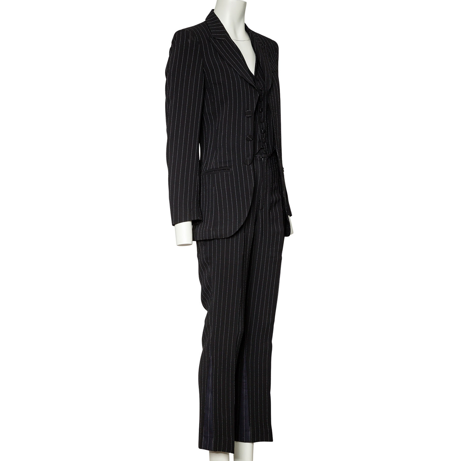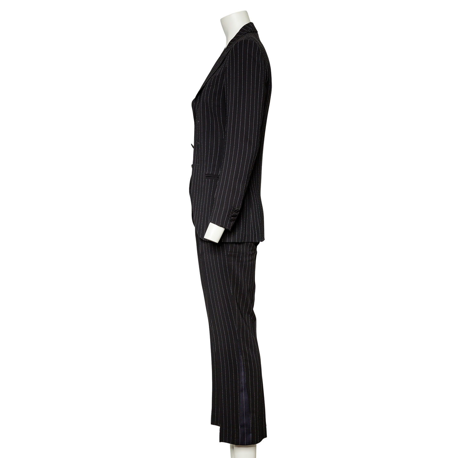 Blazer und Hose in Schwarz mit Nadelstreifen. Wurde leicht geändert. Gereinigt, guter Erhalt.