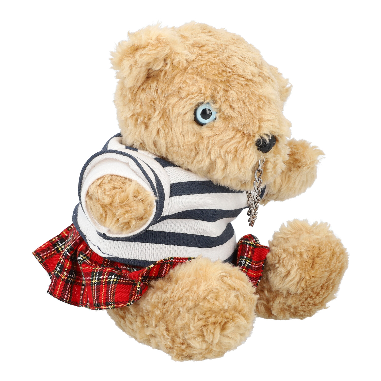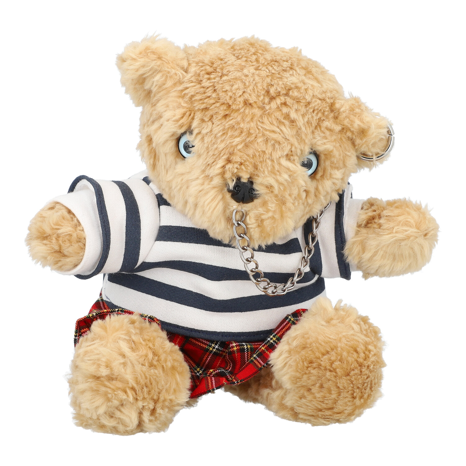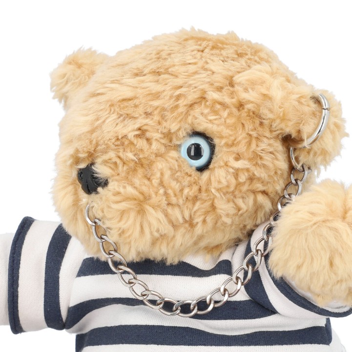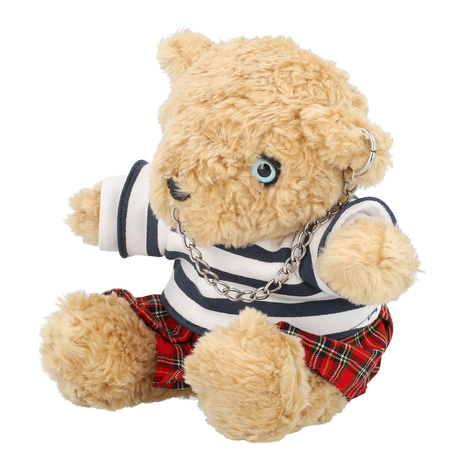 Limitierte Edition. Klassischer Teddybär im Punk Rock Outfit. Ohr und Nase sind mit einer dekorativen Gliederkette verbunden. Gestreiftes Shirt, karrierter Rock und eisblaue Augen. Sehr guter Erhalt.