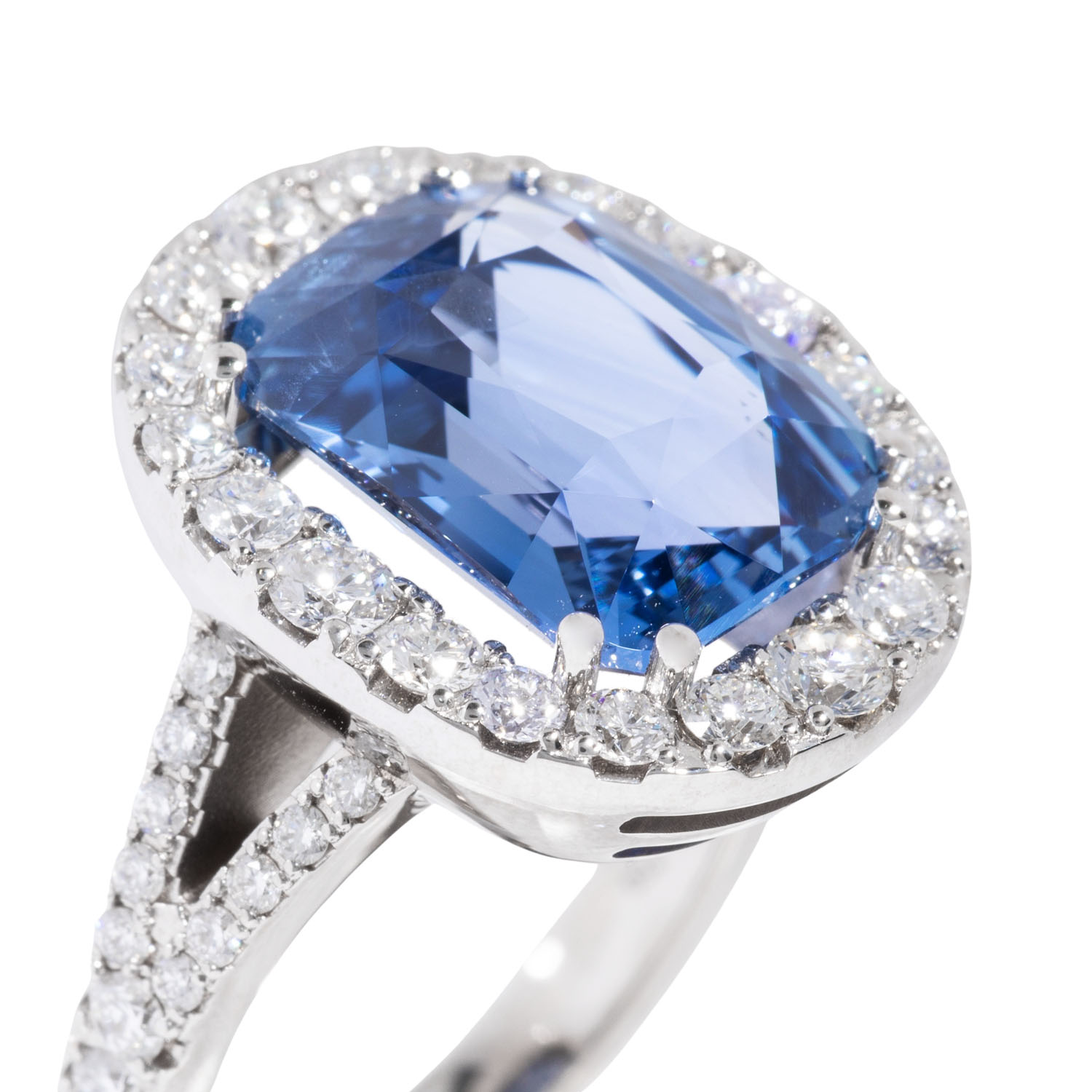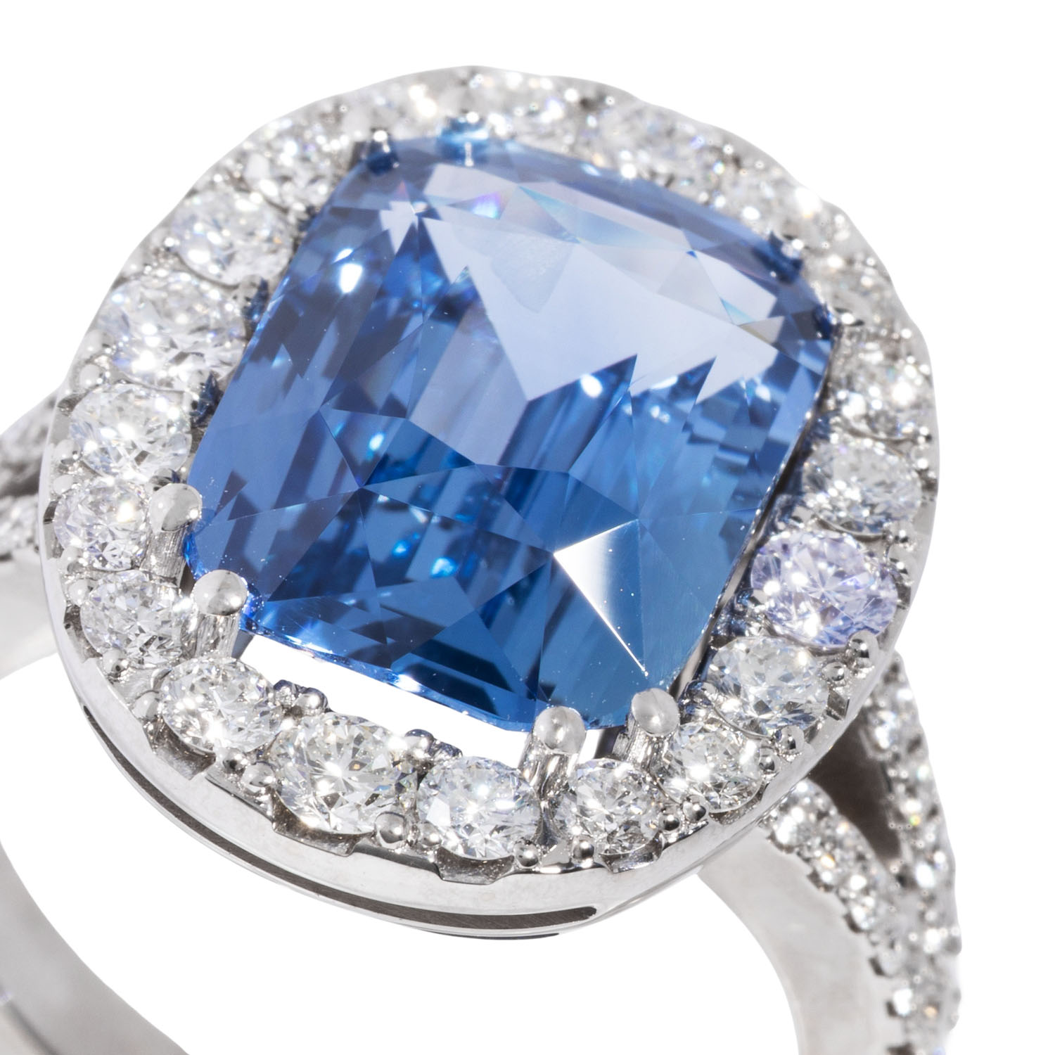 Juwelenring, bes. mit 1 hochfeinen Ceylon Saphir 7,80 ct. no heat