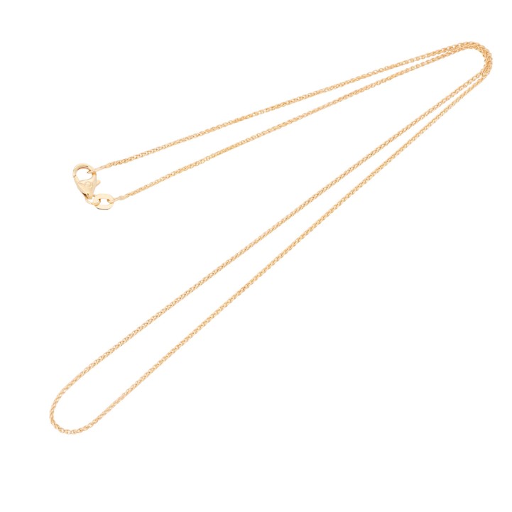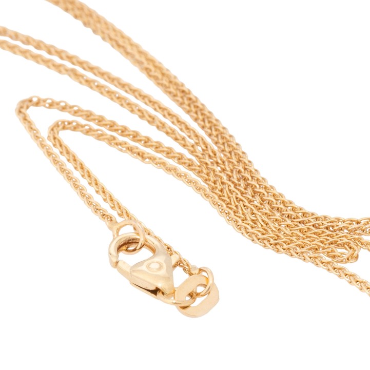 GG 14K, 2,1 g, L: 45 cm, B: 1 mm, Karabinerhaken, 2. Hälfte 20. Jh., Tragespuren.