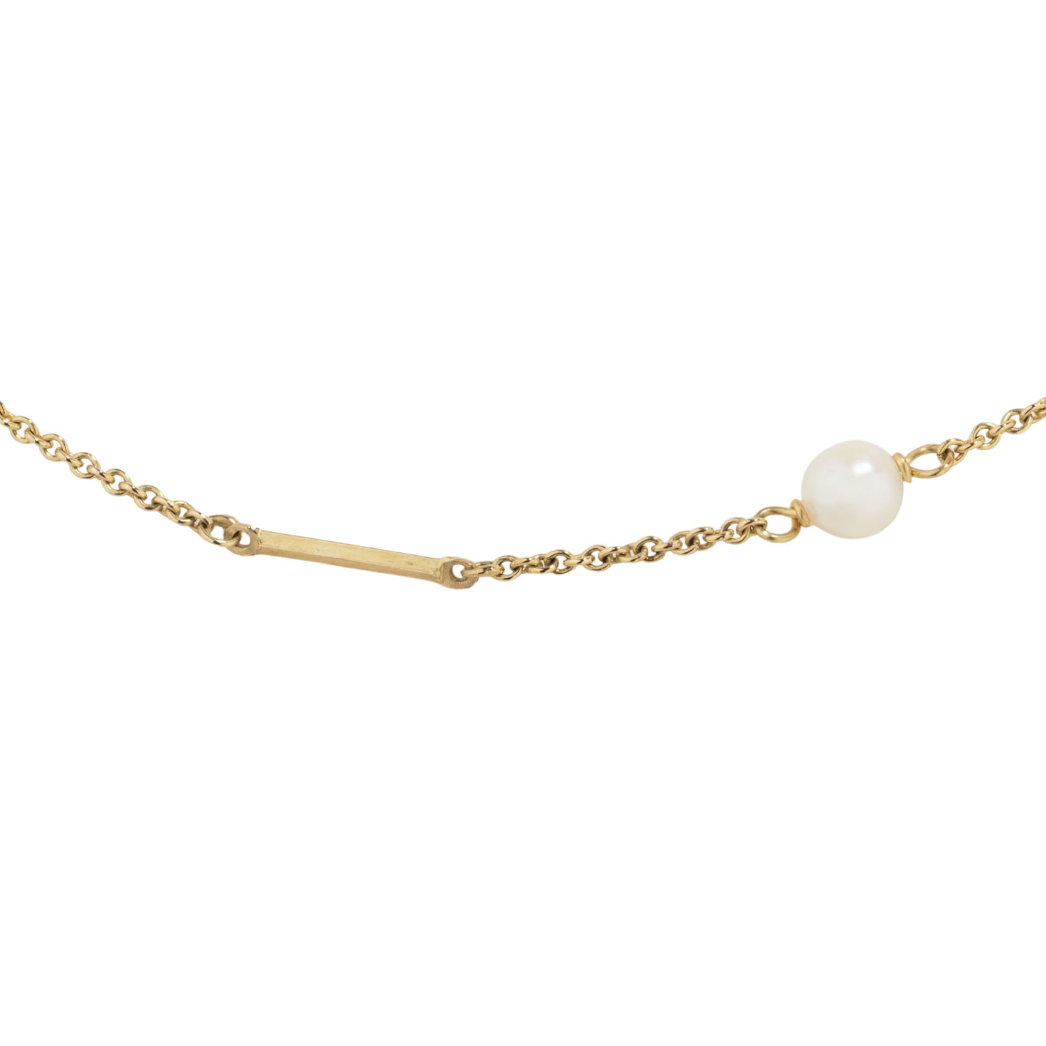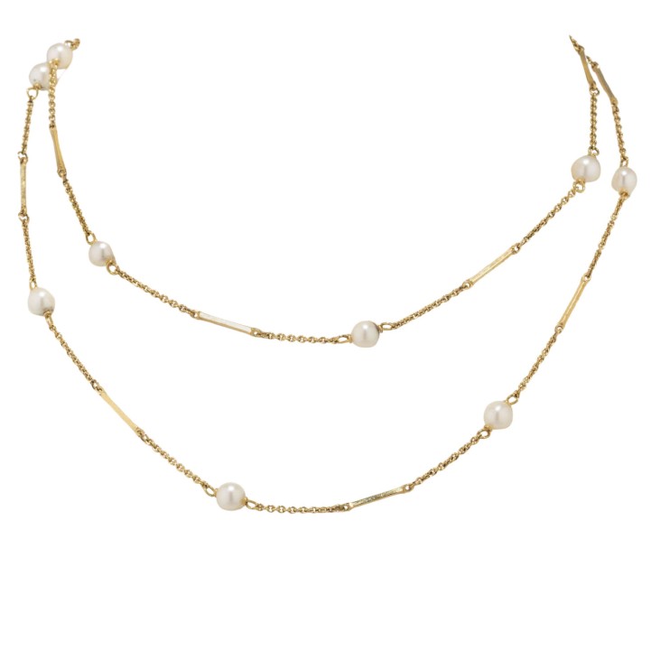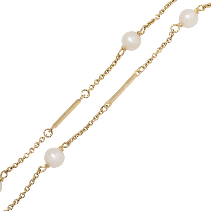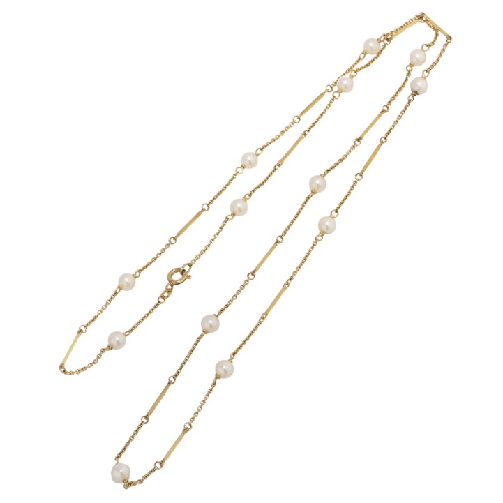 D; 5,4 mm, guter Lüster, mit Stäbchen und Ankerkette im Wechsel, GG 8K, 7,6 g, L: 72 cm, Federring, 1960 - 1970er Jahre, leichte Tragespuren.