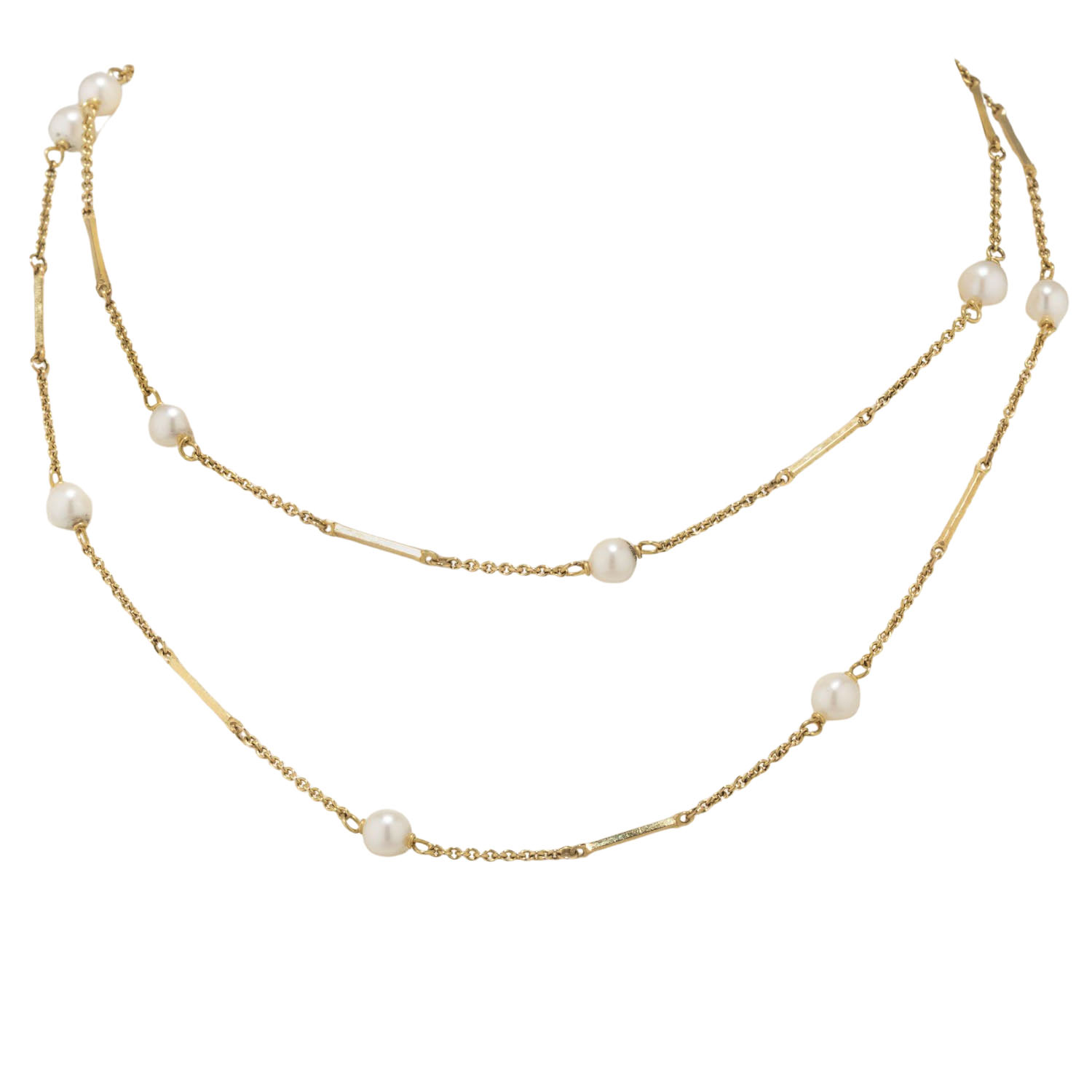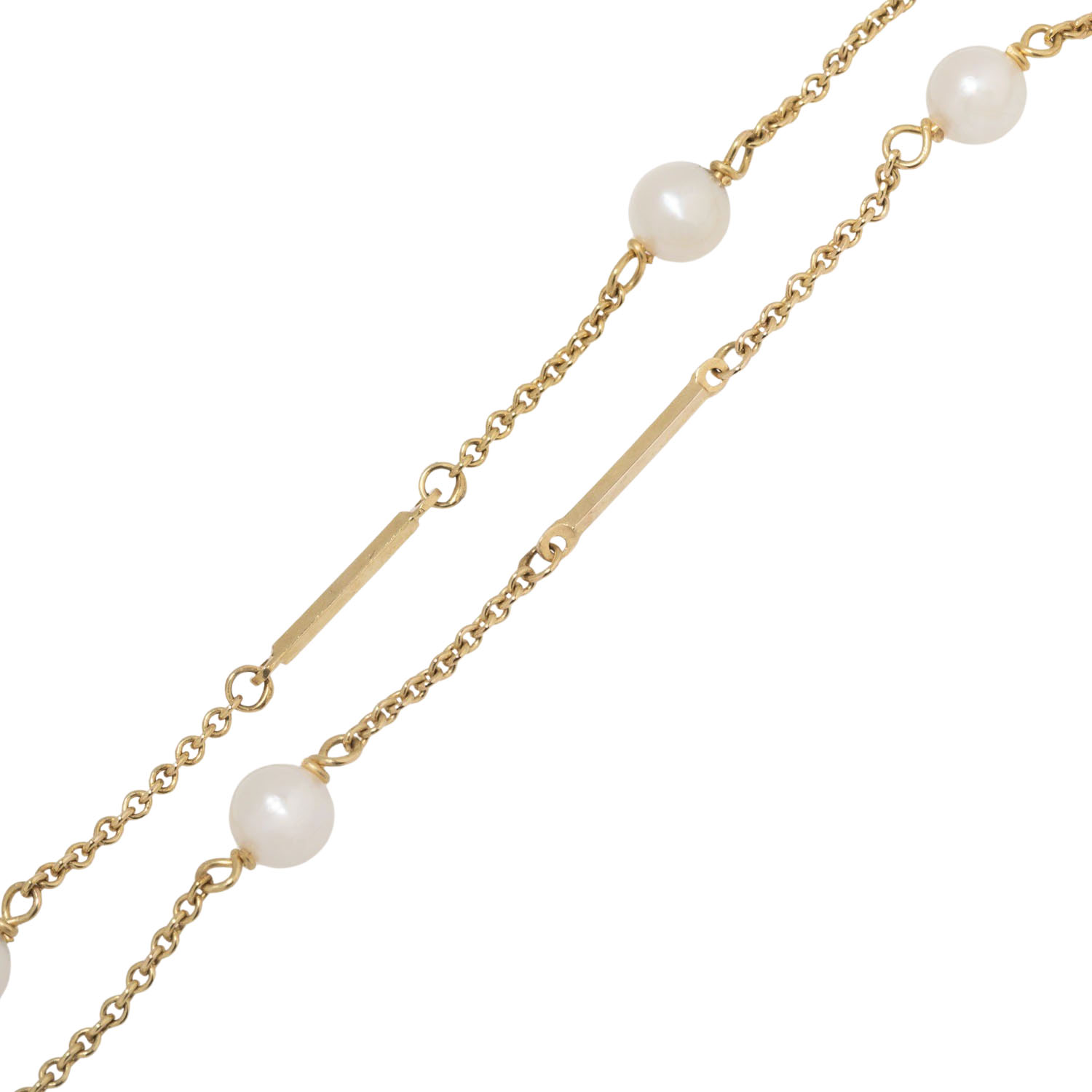 Perlkette mit 57 weißen Akoya-Zuchtperlen,