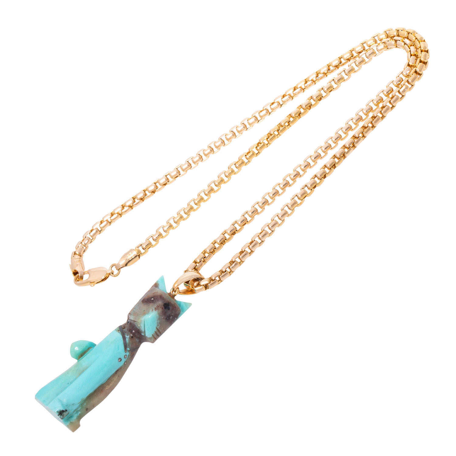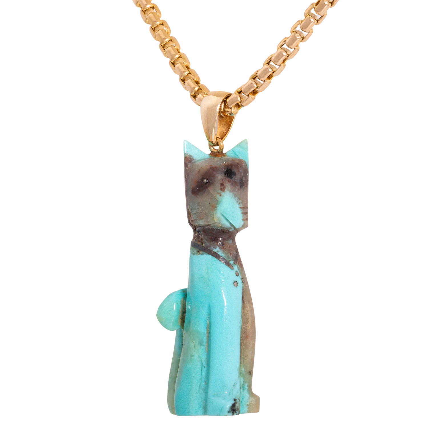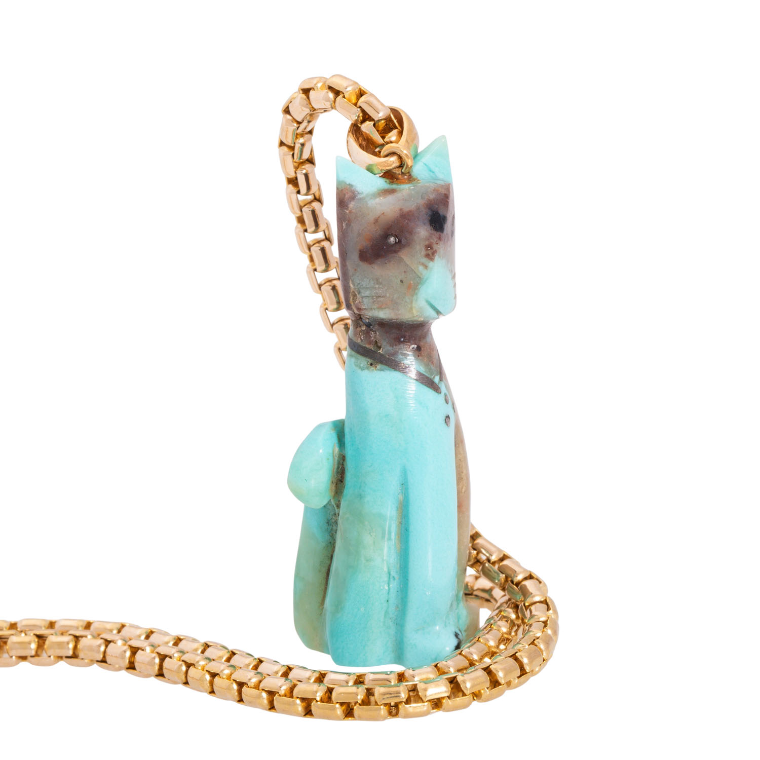 Kette mit Katzenanhänger aus partiell türkisfarbenem Stein