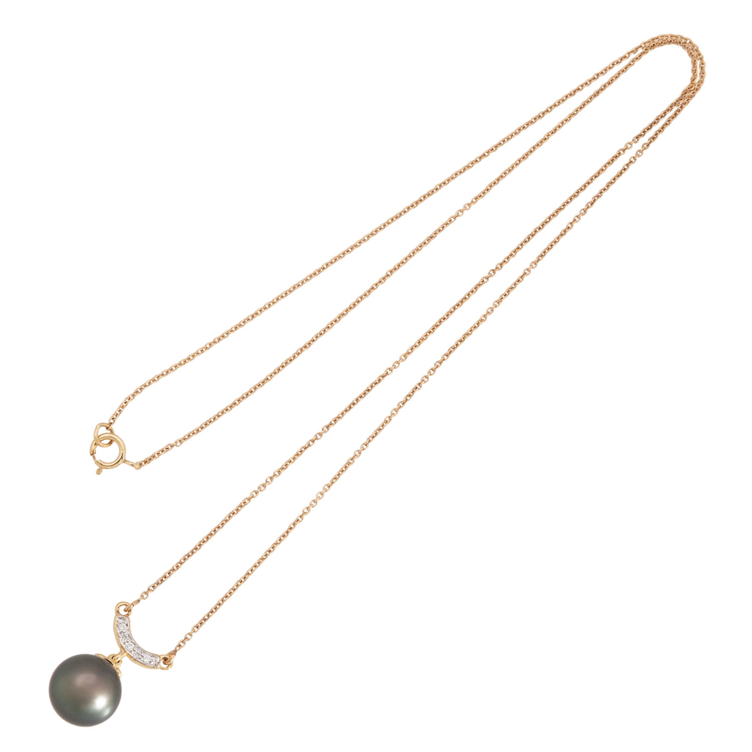 zus. ca. 0,025 ct, LGW (I-J)/SI-P, Tahitizuchtperle, dunkelgrau, D: ca. 9,7 mm, schöner Lüster, GG/WG 9K, 3,1 g, L: ca. 46 cm, B: ca. 1 - 9,7 mm, 21. Jh., leichte Tragespuren.