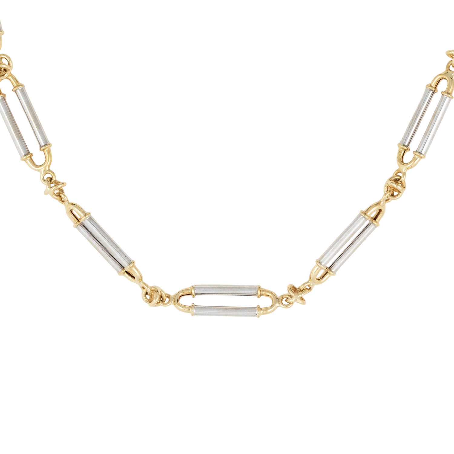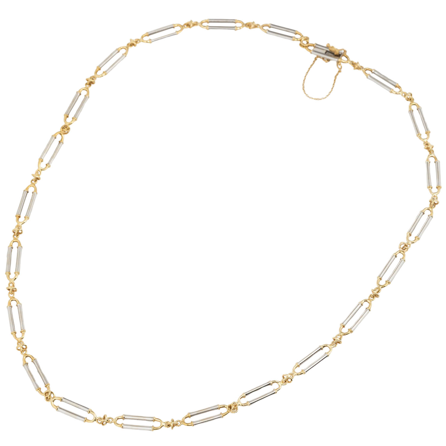 GG/WG 18K, 26,6 g, L: 60 cm, B: 6,6 mm, Kastenschloß, Sicherungsacht und Sicherungskettchen, Ende 20. Jh., minimale Tragespuren.