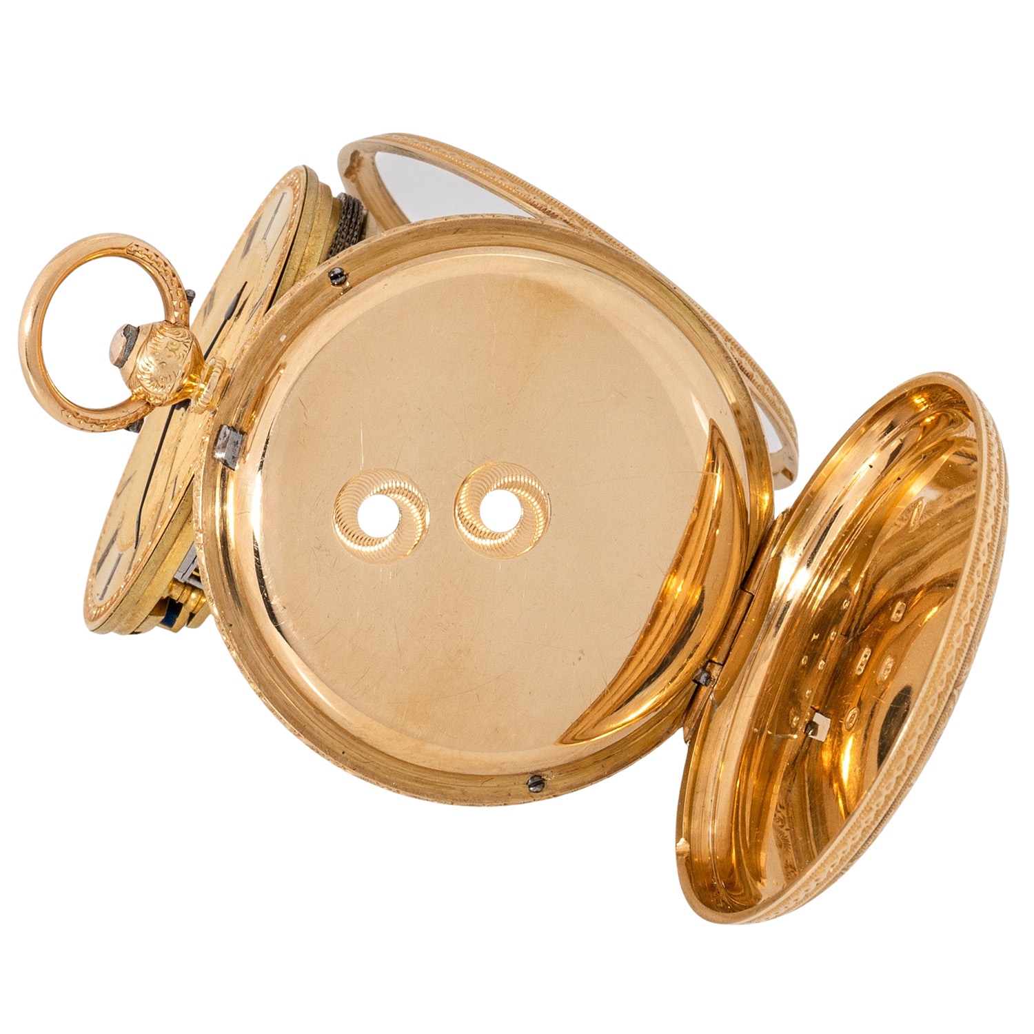 Antike, offene Taschenuhr mit Viertelrepetition & Musikspielautomat.