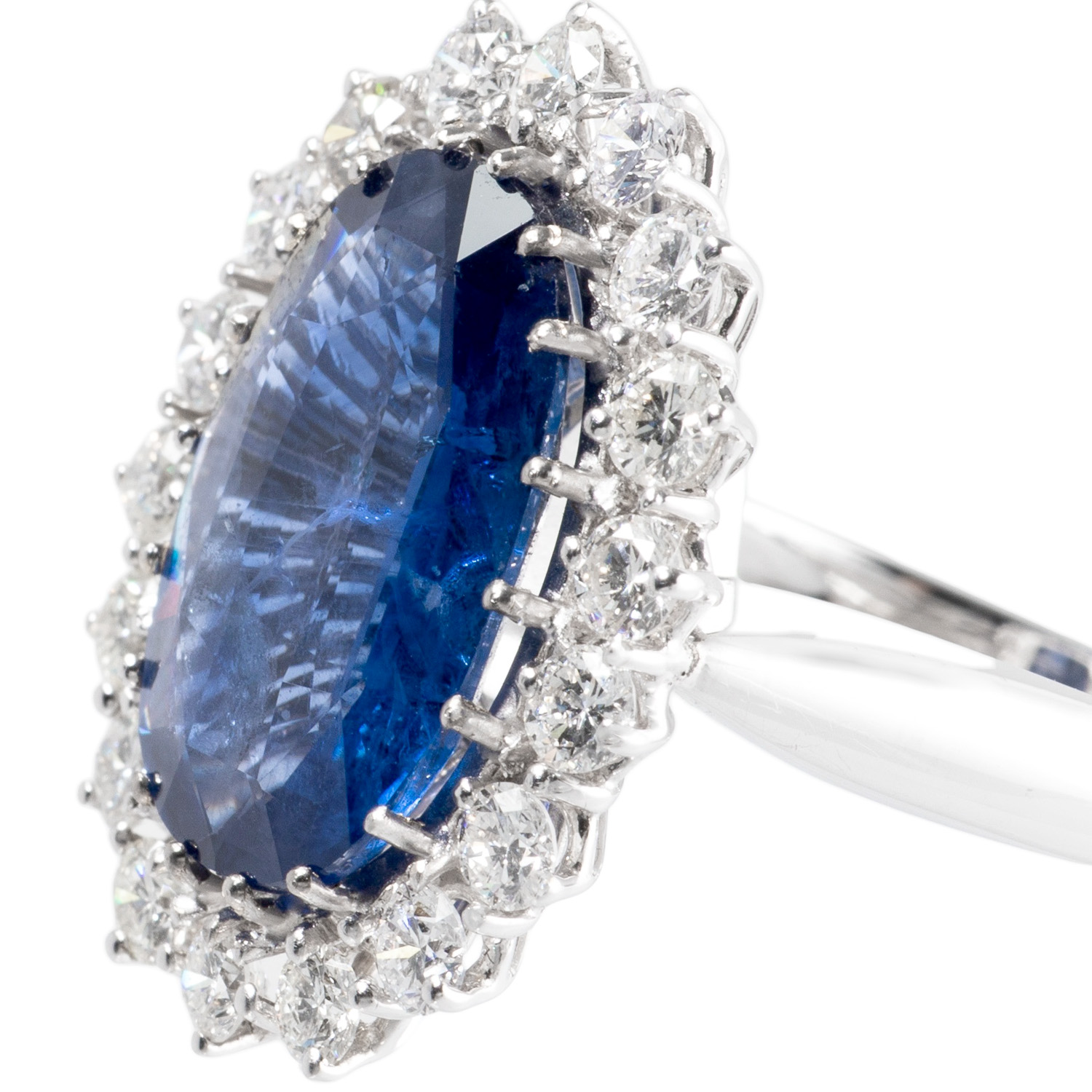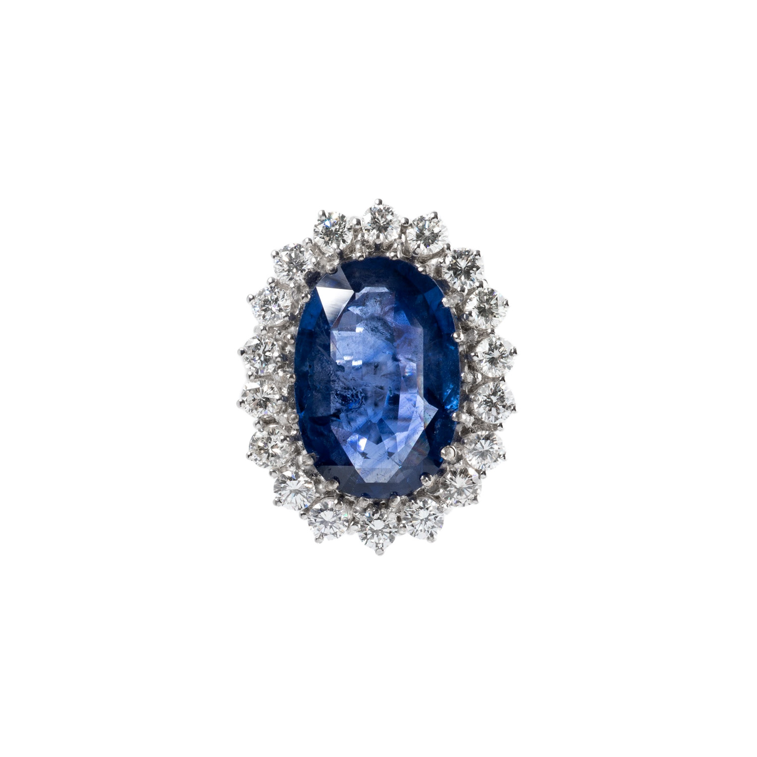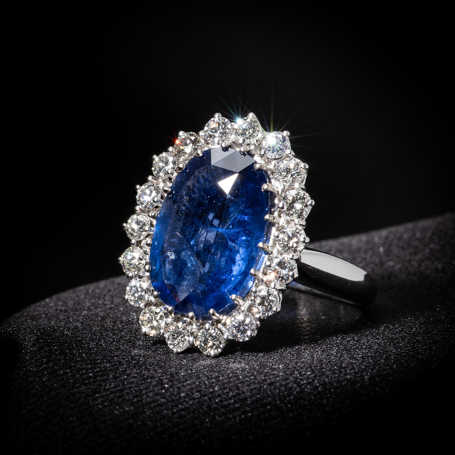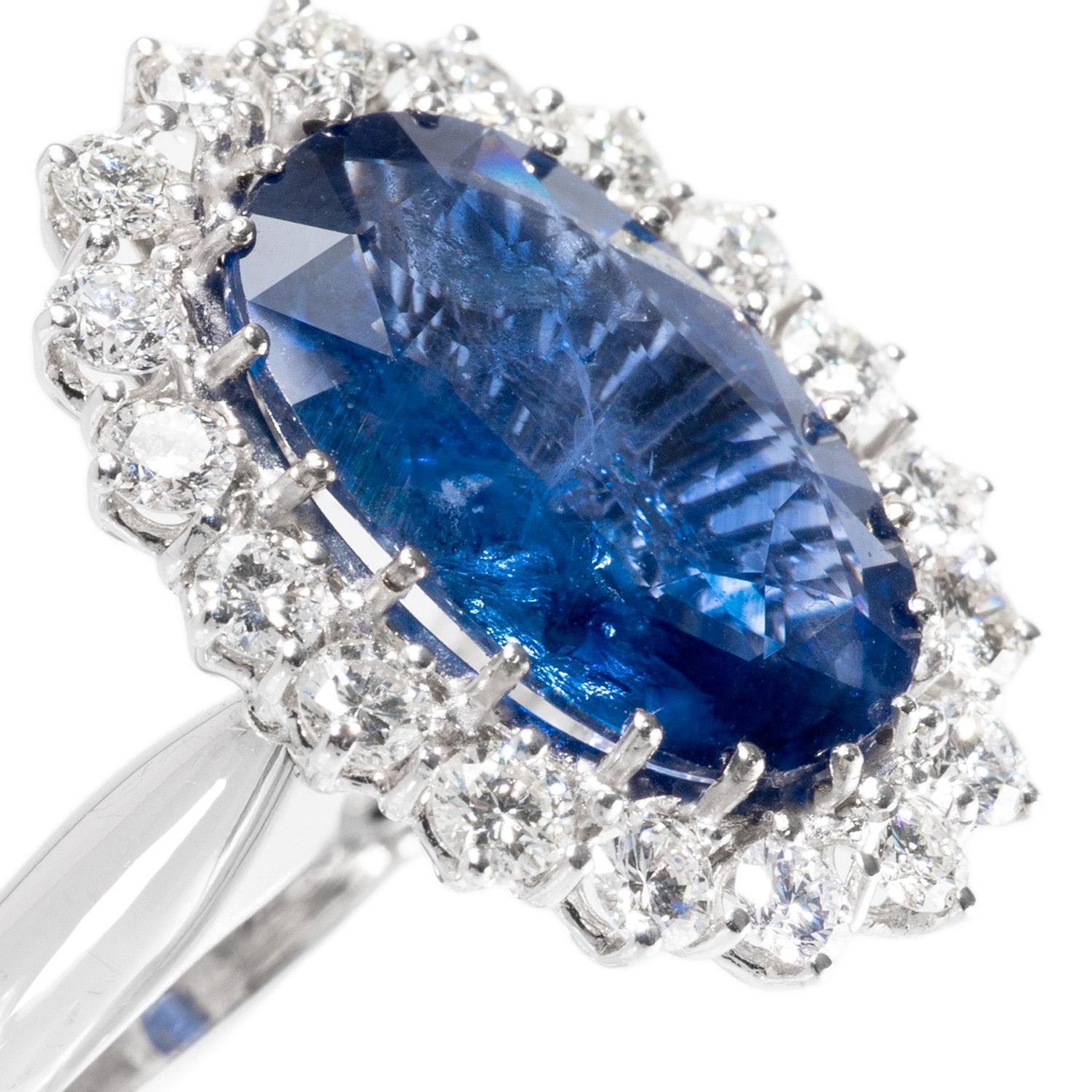 aus Sri Lanka, umgeben von Brillanten von zus. ca. 1,7 ct, FW- LGW (G-J)/VS-SI, WG 18K, 10,8 g, RW: 56, 21. Jh., sehr guter Zustand. Zertifikatkopie Nr.: 498127 liegt bei.