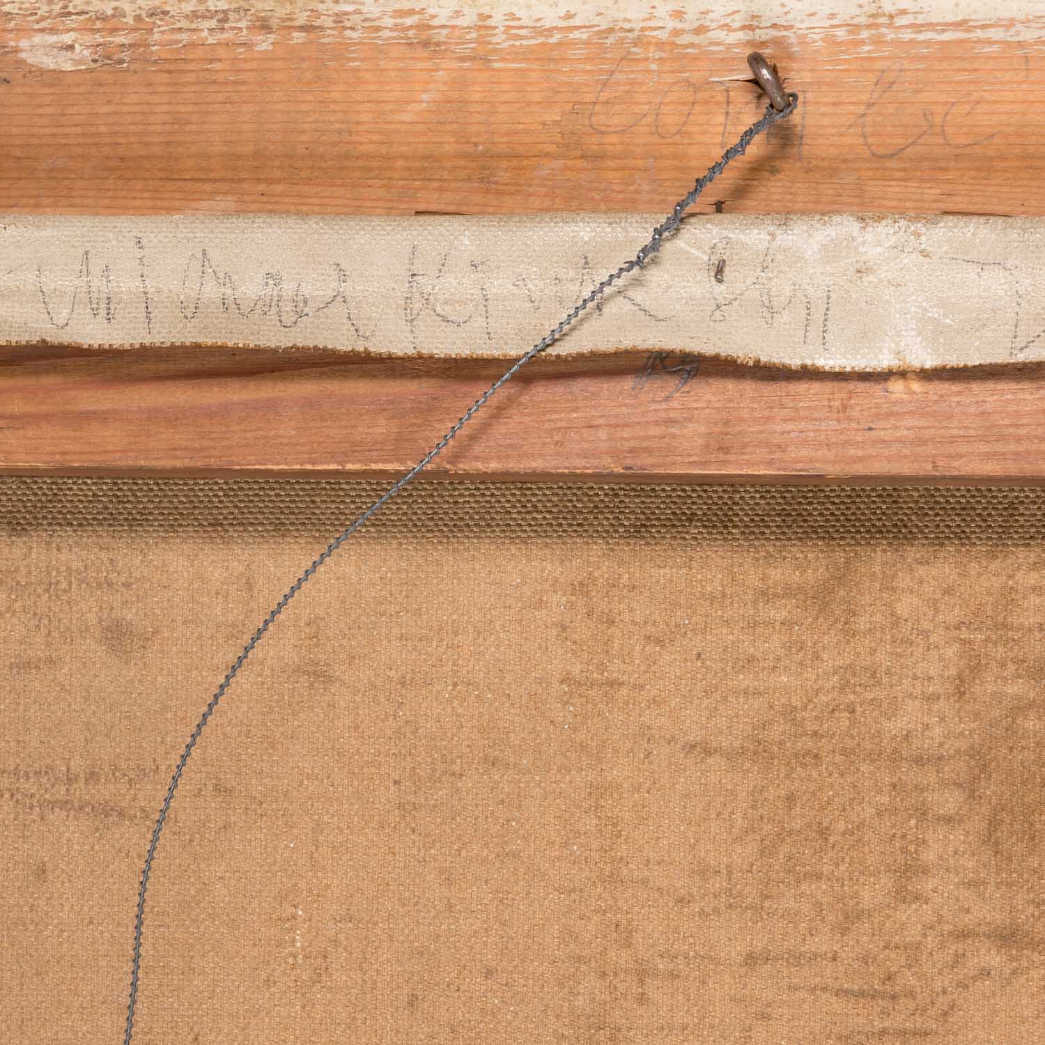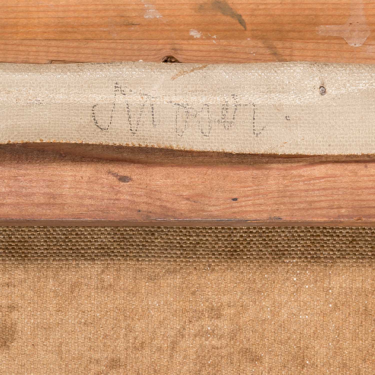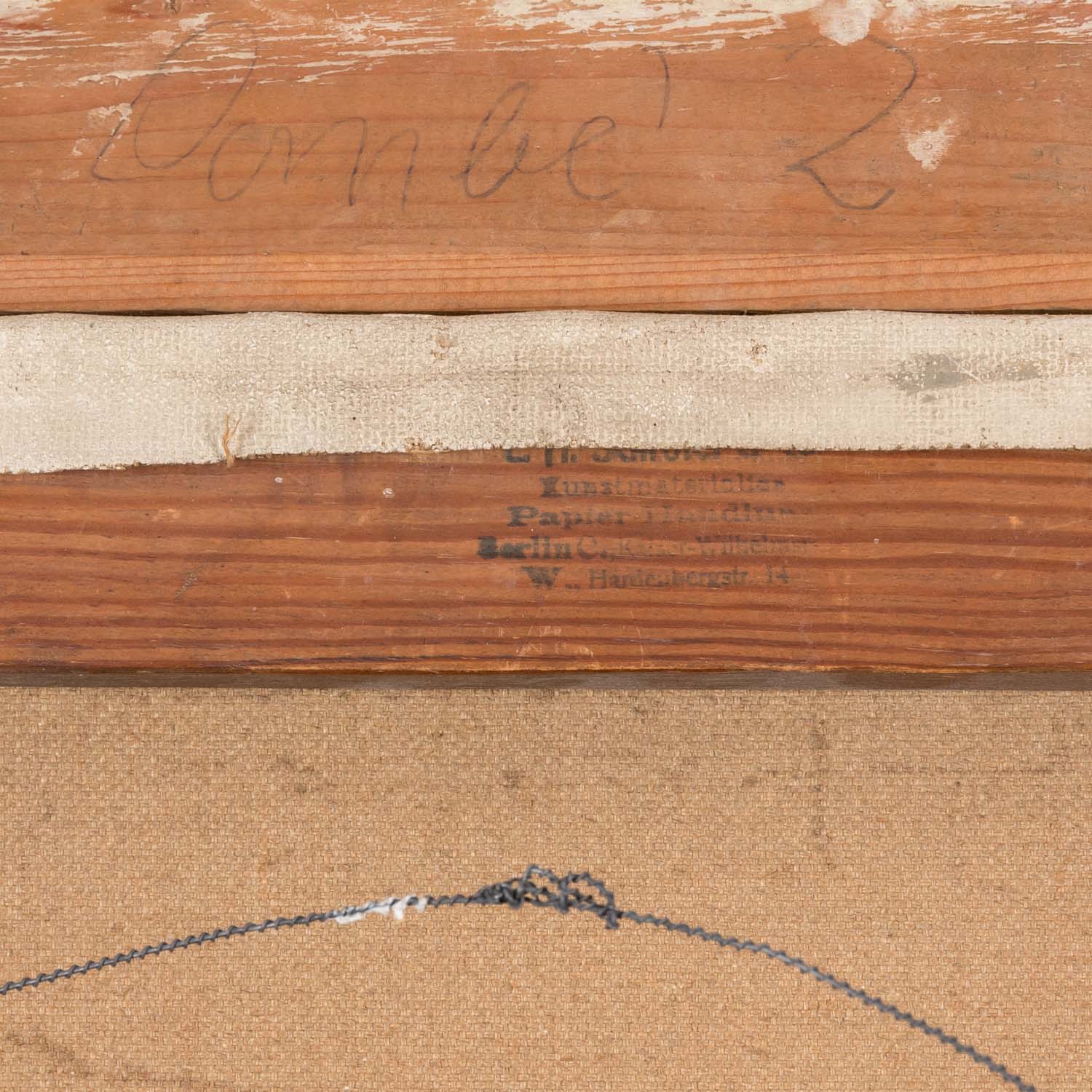 im Vordergrund eine flanierende Dame mit rotem Sonnenschirm, im Hintergrund Strandhäuschen vor Waldrain, u.re. signiert und datiert 'Julius v. Klever 1905', Öl/Leinwand, HxB: ca. 60x100 cm (70x110 cm mit Rahmen). Alters- und Beriebspuren, restauriert. Mit Rahmen. VERSO am Keilrahmen Stempel: L. A. Schröter & Co., Kunstmaterialien... Berlin.