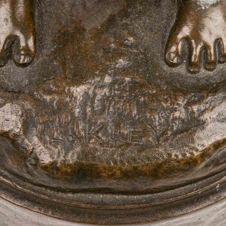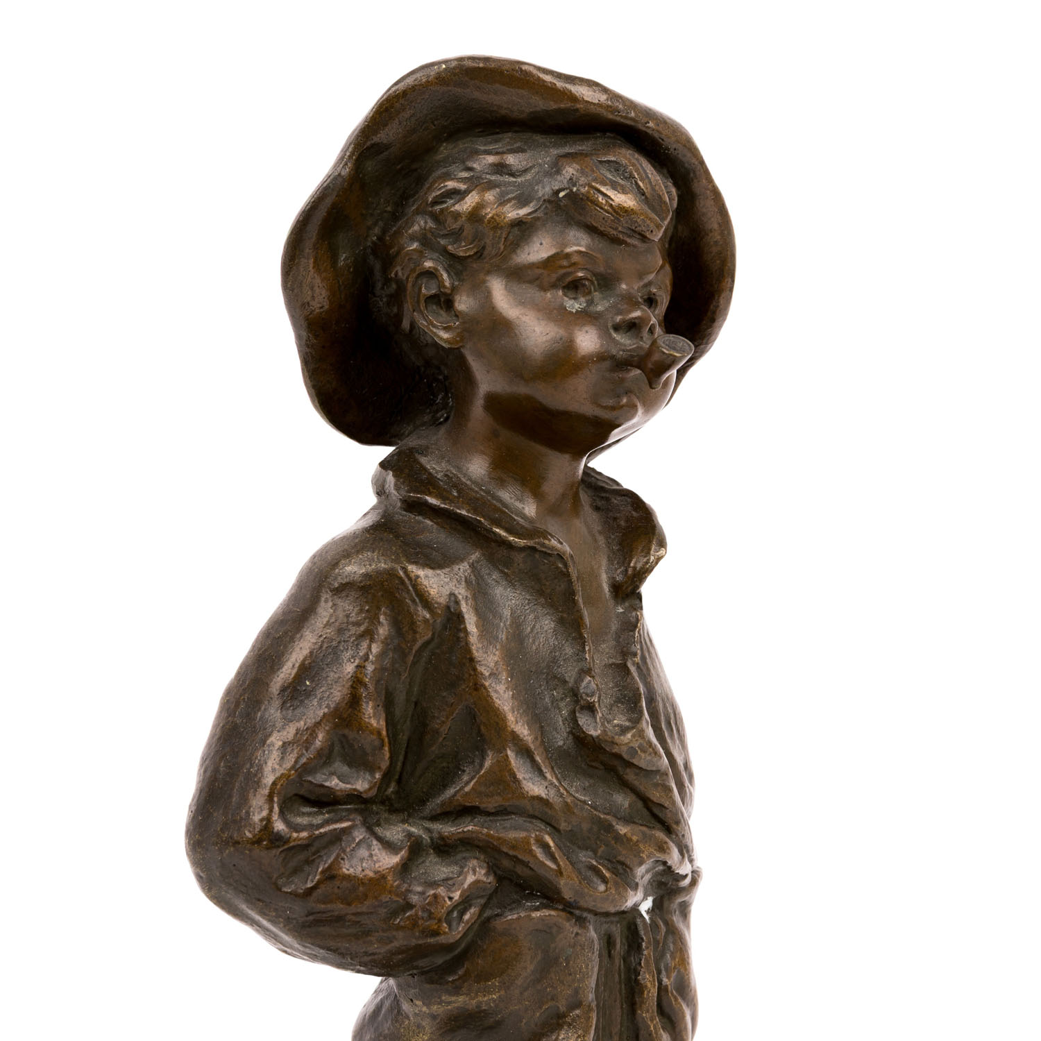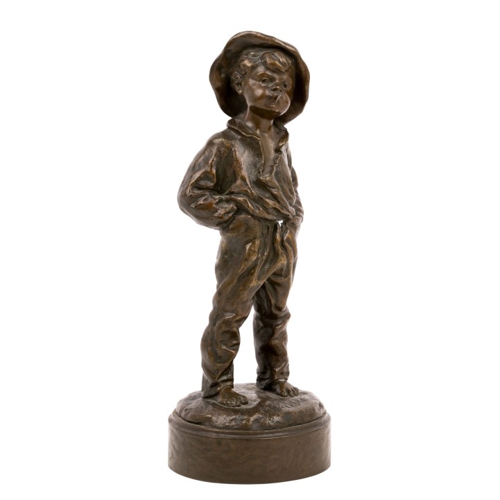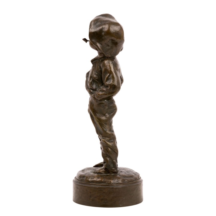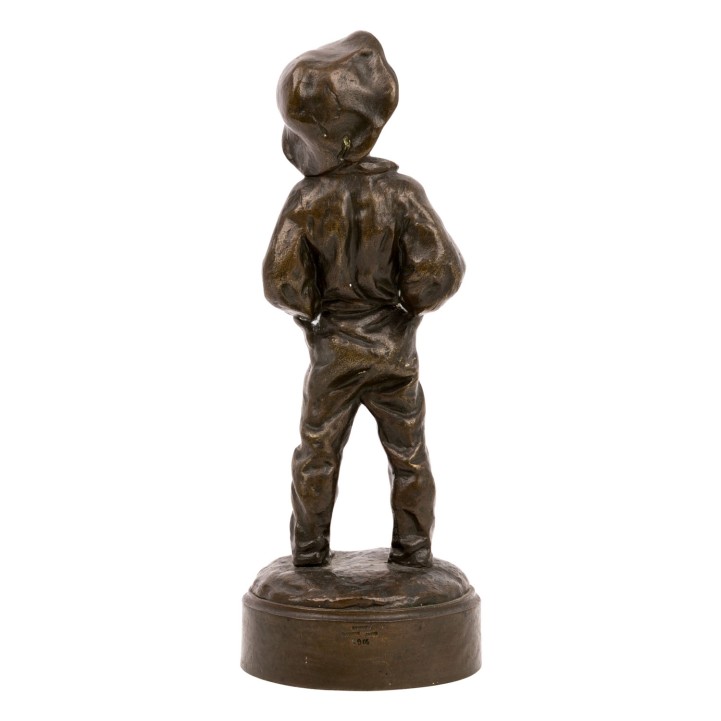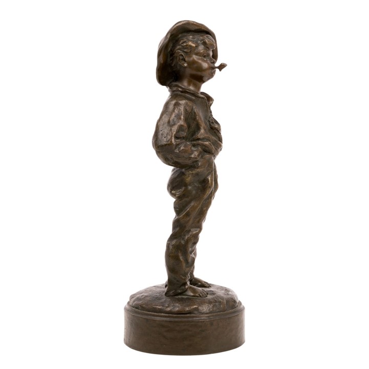 Bronze, Junge mit einer Pfeife im Mund und den Händen in den Hosentaschen, bezeichnet 'L. KLEY', rückseitig Giesserstempel und Nr. 1904, H. ca. 27,5 cm.