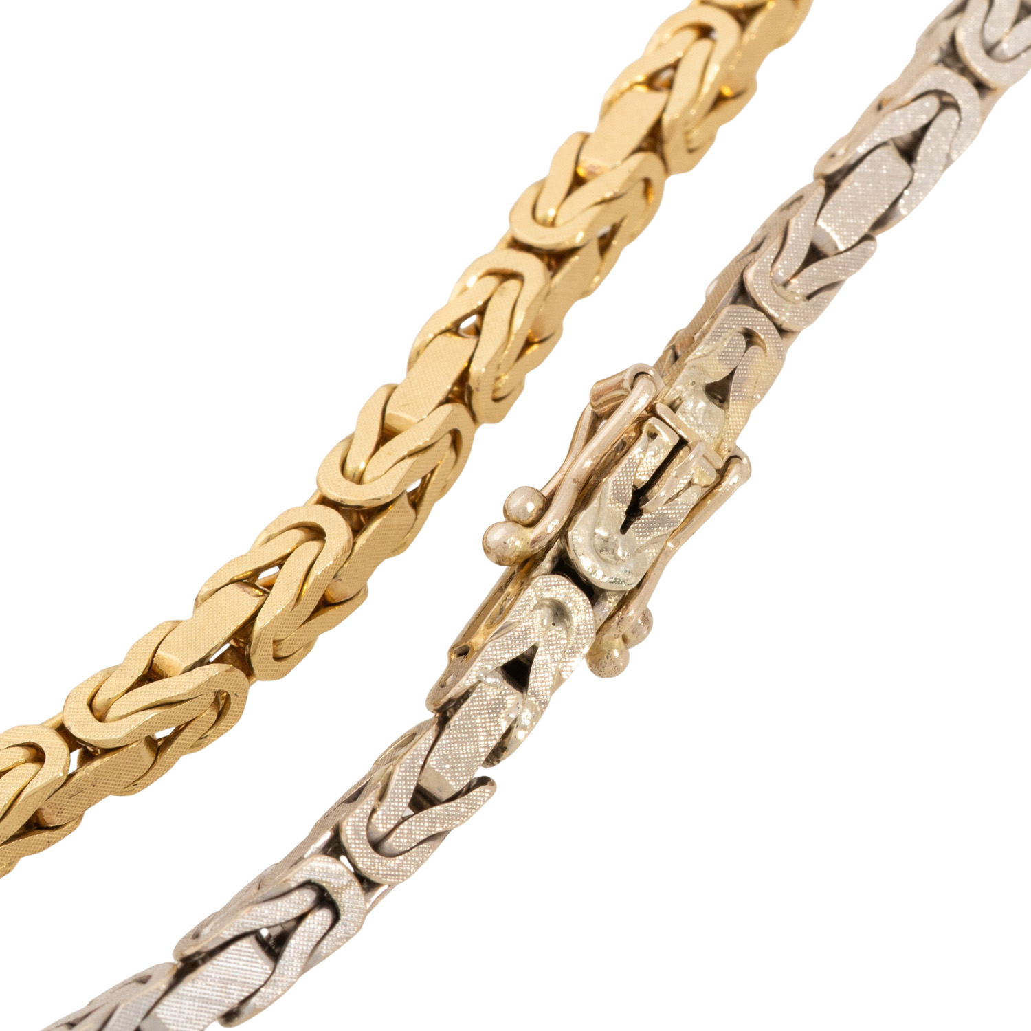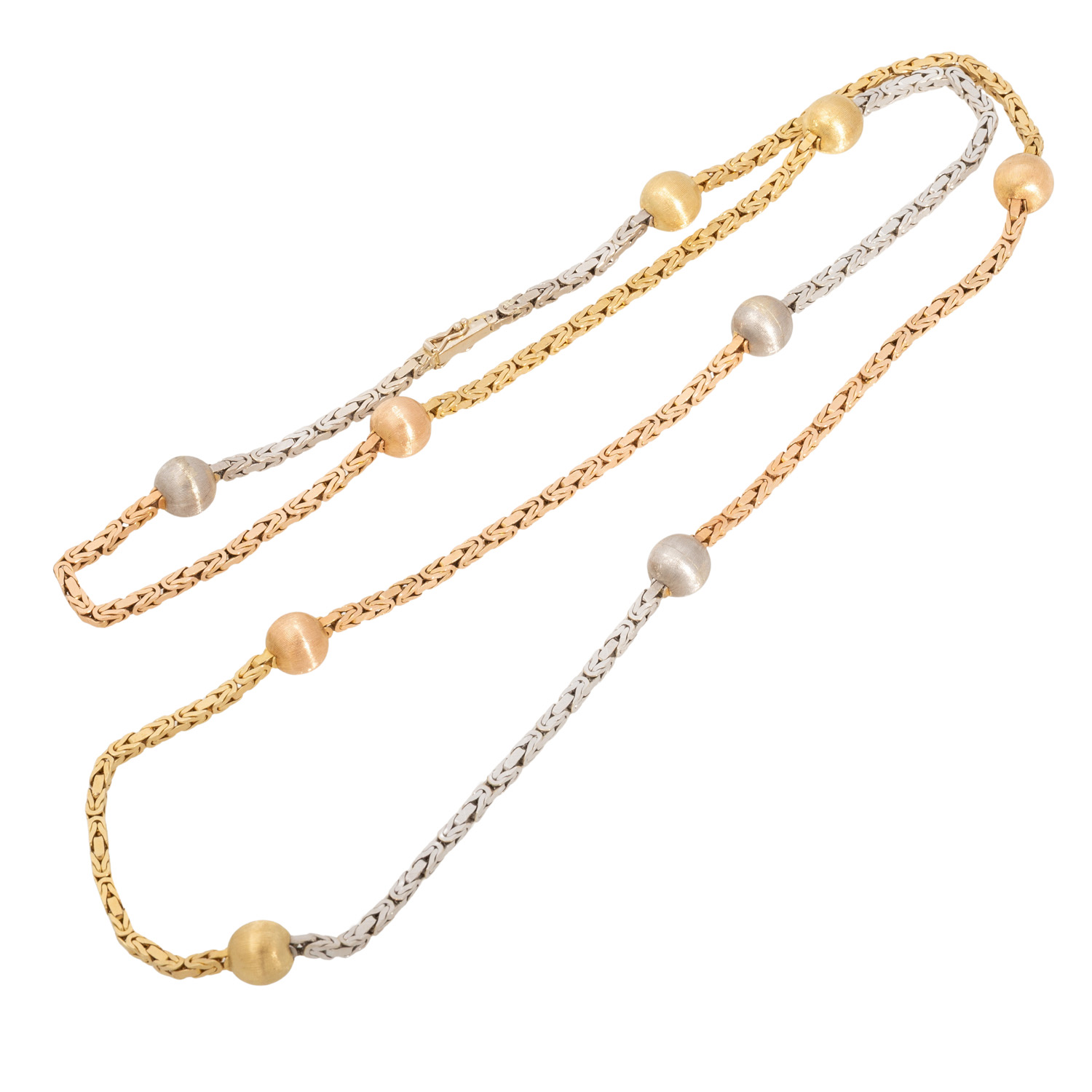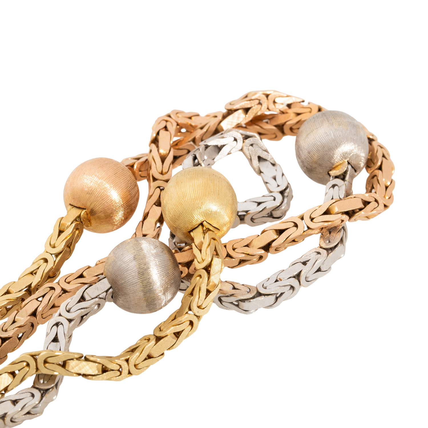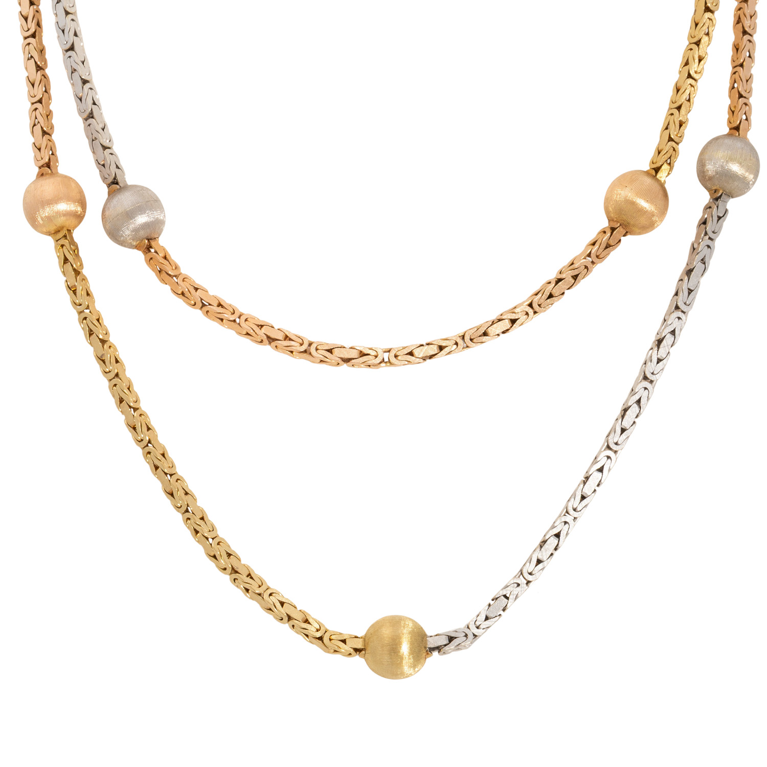 D: 11 mm, 3farbig GG/WG/RG 14K, 94,8 g, L: 95 cm, B (Kette): 3 mm, Kastenschloß, 2 Sicherungsachten, Ende 20. Jh., minimale Tragespuren.