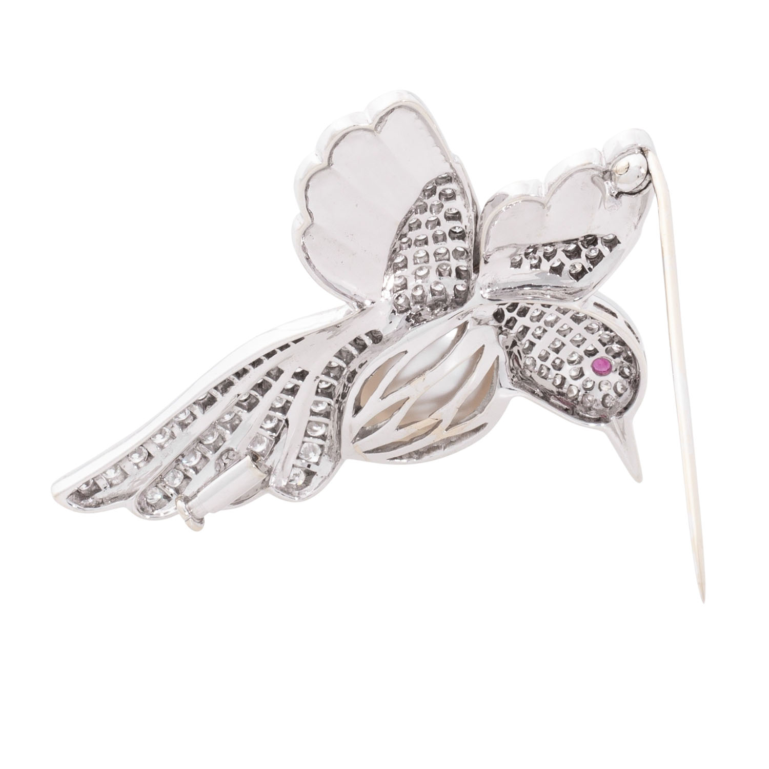 Brosche 'Kolibri' mit polychrom-transparentem Email