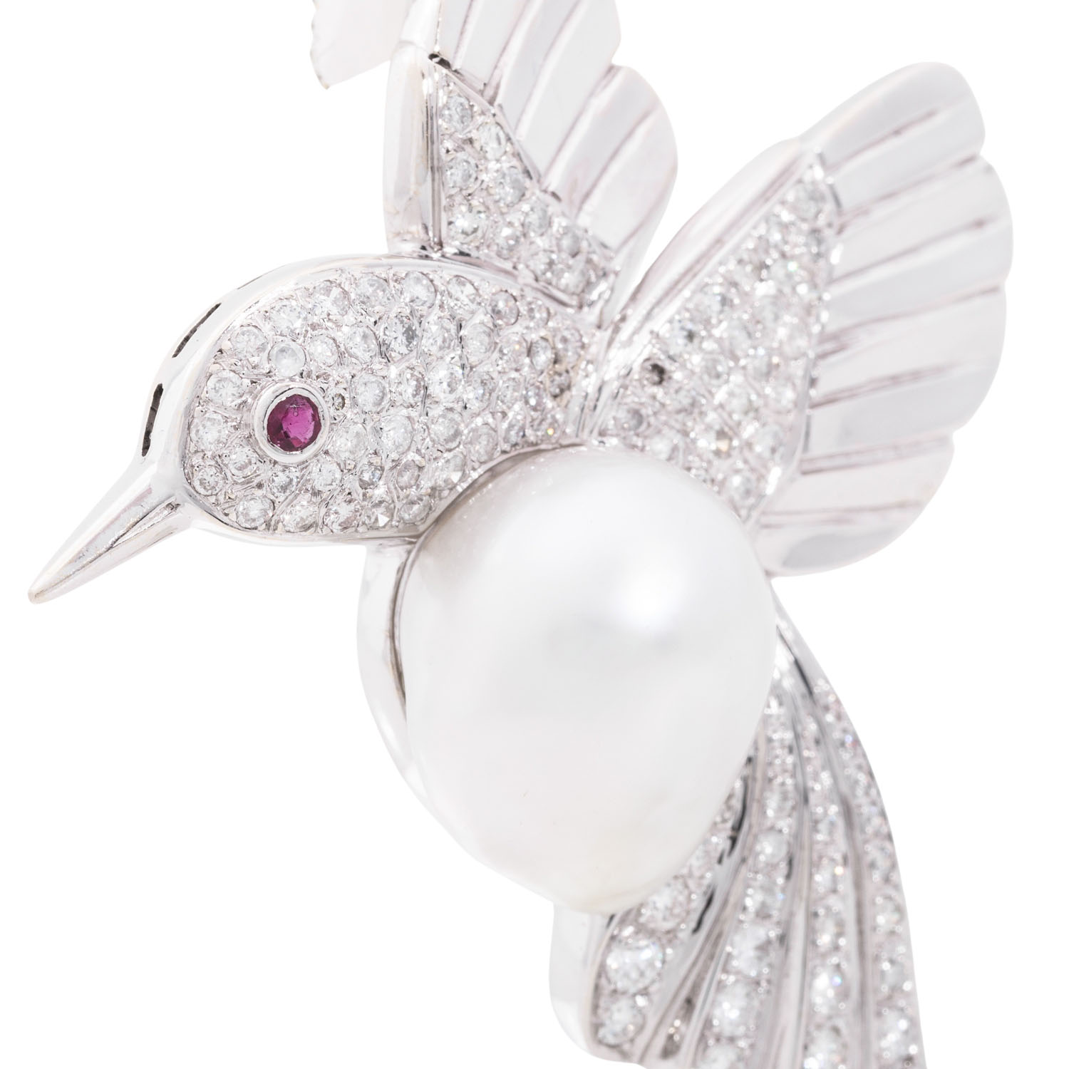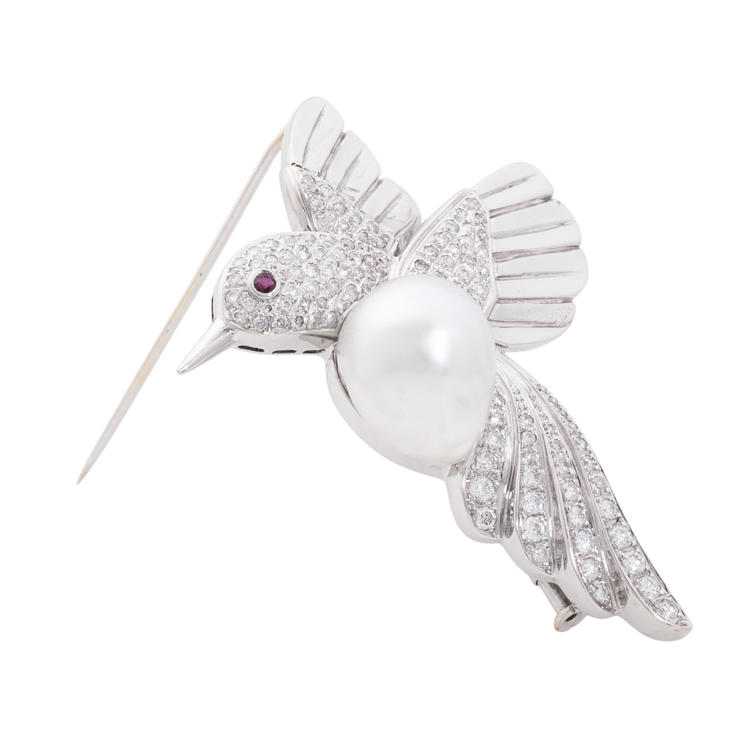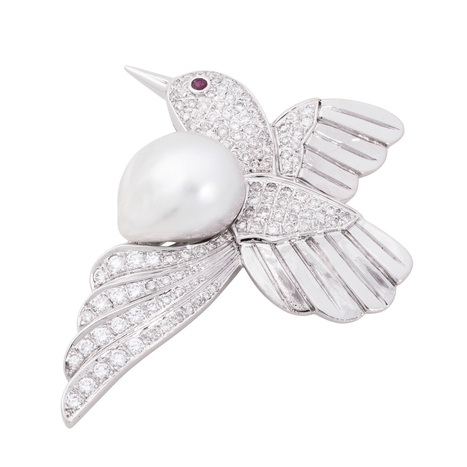 1 Perle, Brillanten zus.ca. 2,70 ct, G - H/vs - si, 1 Rubin ca. 0,0 4ct. WG 18 K.