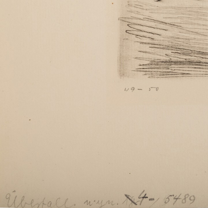 Mixed lot of 3 drawings and graphics: DÄHMCKE, STEINBECK, WENCK, 1920s / 30s, 1x JOHN DÄHMCKE (1887-1969), ""robbery"", etching / laid paper (watermark on the edge: Johann Wilhelm), signed by hand in pencil, in pencil num. 49-50, inscribed at the lower edge, HxW: plate approx. 12.5x19 cm, sheet approx. 23x31 cm; 1x ALBERT STEINBECK (1897-?),