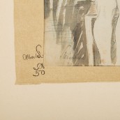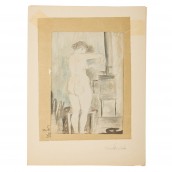 ""Female nude"", watercolor over pencil / gray-toned paper (left margin perforated), signed and dated 1936, HxW: approx. 34.5x24.5 cm; 1x ERNST WENCK (1865-1929), movement study ""Female Nude"", ink / parchment paper (right edge perforated, mounted on the left side), signed, HxW: approx. 45x36.5 cm. The slightly browned, kinks, part. stains, tears on the edge.