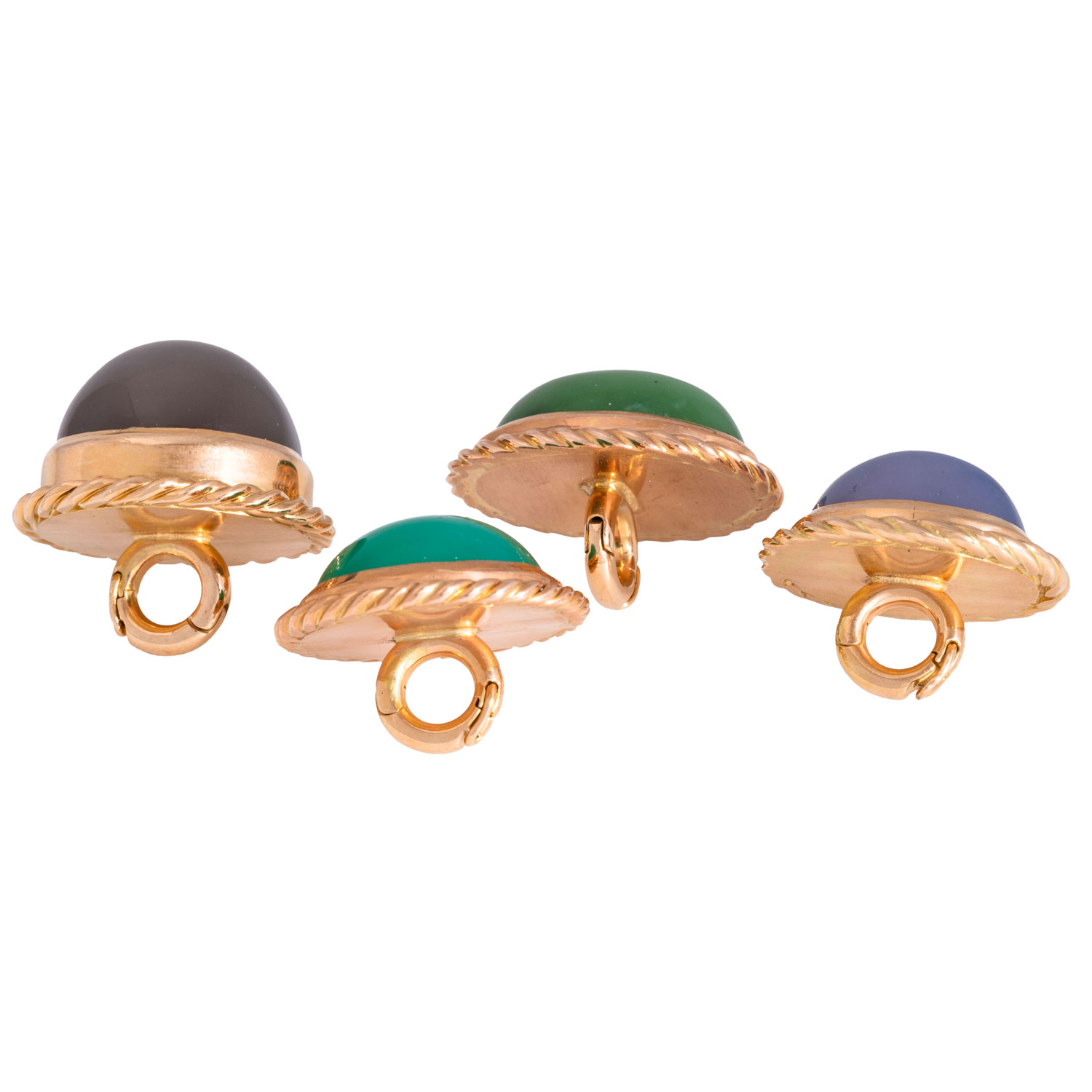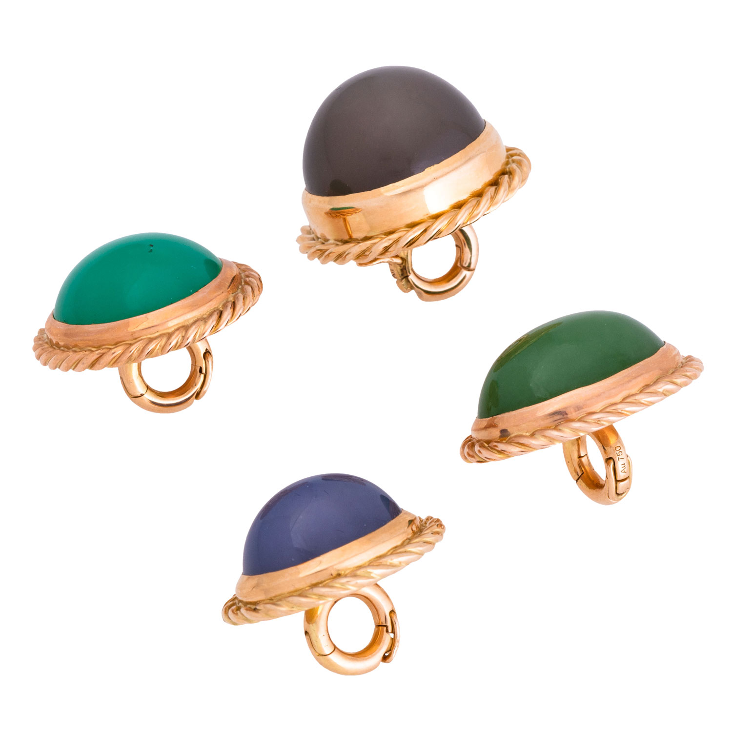 Jade, Mondstein, Chrysopras, Blauquarz, GG 18K mit Clipösen, 50,6 gr, je ca. 2 cm, 20./21. Jh., neuwertig. (19a)