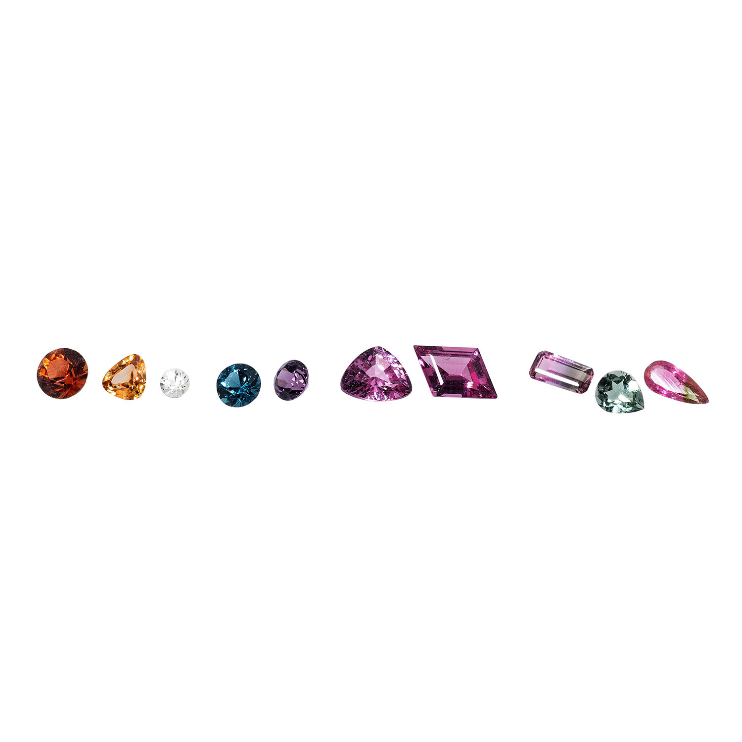 darunter 4 Turmaline von 6,59+5,62+4,65+2,55 ct, 2 Spinelle und weitere Edelsteine, alle in gutem bis sehr gutem Zustand. Alle Steine ohne detaillierte gemmologische Prüfung!