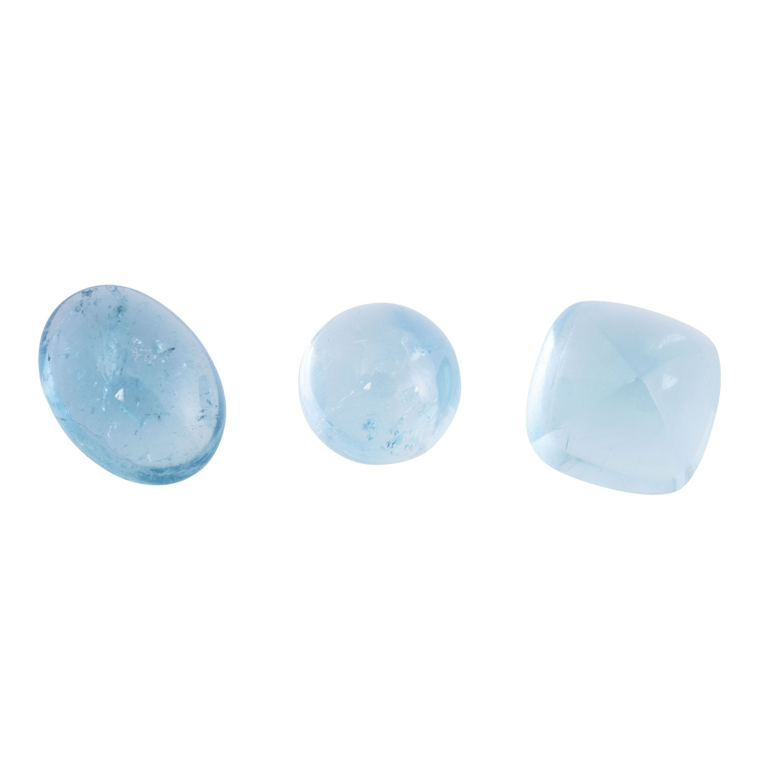 Konvolut von 3 Aquamarin-Cabochons von zus. ca. 28,4 ct,
